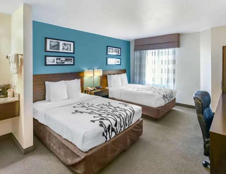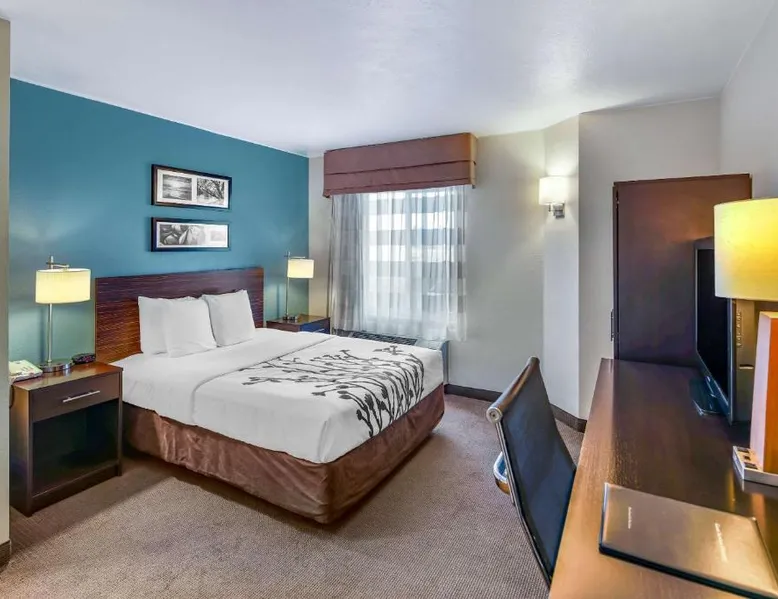 Located in Idaho's River City , the Sleep Inn near Washington State Line is located near the factory outlet malls, Spokane Valley Mall, Stateline Stadium / Speedway and the famous Spokane River Centennial Trail, a scenic path that begins at the Idaho state line and runs directly in front of the hotel in route to Coeur d' Alene Lake. This Post Falls, ID hotel affords guests convenient access to many exciting recreational points and attractions including The Highlands Golf Course, Silverwood Theme Park, Boulder Beach water park and Wild Waters water park. The Spokane River runs through the heart of Post Falls and is home to many rafters and swimmers taking advantage of the tree-lined parks, paths and picnic areas that caress its shores. Located just minutes from the destination resort Coeur d' Alene, this aquatic playground with its sandy beaches has long held the reputation as a leading recreational hot spot, and is home of the world's longest floating boardwalk, waterfront dining, lake cruises, five-star golf courses and casinos. Come enjoy breathtaking views while boating, kayaking, water skiing, para-sailing and eagle watching. Guests are invited to enjoy amenities like free wireless high-speed Internet access through the hotel, free deluxe continental breakfast with Belgian waffles, free local calls and a 24-hour indoor pool and hot tub. This Post Falls, ID hotel provides business travelers with conveniences like access to fax and copy services and a meeting room. All rooms include coffee makers, hair dryers, irons, ironing boards and cable television. Some rooms include microwaves and refrigerators. Handicap accessible rooms are available. Guest laundry facilities are located on the property. This is a dog-friendly hotel; a stay fee is required. A cable TV and coffee maker are included in this room.