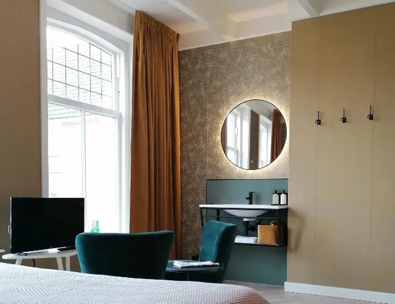 Historic Setting: B&B De Stadssingel in Steenwijk is housed in a historic building, offering a unique atmosphere. The property features a sun terrace and a beautiful garden, complemented by free WiFi throughout. Comfortable Accommodations: Rooms include air-conditioning, private bathrooms, and modern amenities such as streaming services and flat-screen TVs. Additional facilities include an outdoor fireplace, picnic area, and bicycle parking. Delicious Breakfast: Guests enjoy a continental or American breakfast with local specialties, fresh pastries, cheese, fruits, and juice. Breakfast is highly praised by visitors for its quality and variety. Convenient Location: Located 40 mi from Groningen Eelde Airport, the property is near attractions like Theater De Spiegel (24 mi) and Museum de Fundatie (25 mi). Free off-site parking is available. The pool with a view is the standout feature of this double room. The spacious double room features air conditioning, a mini-bar, a terrace with garden views as well as a private bathroom boasting a walk-in shower. The unit has 1 bed.