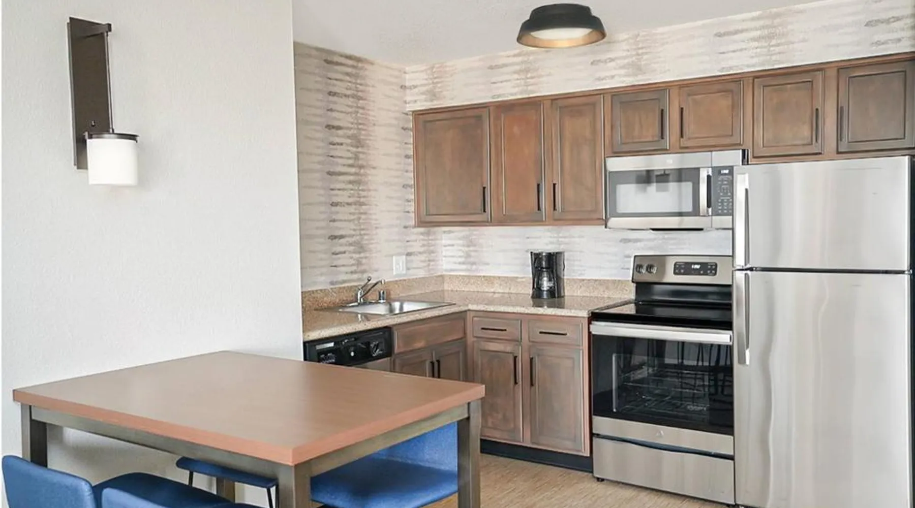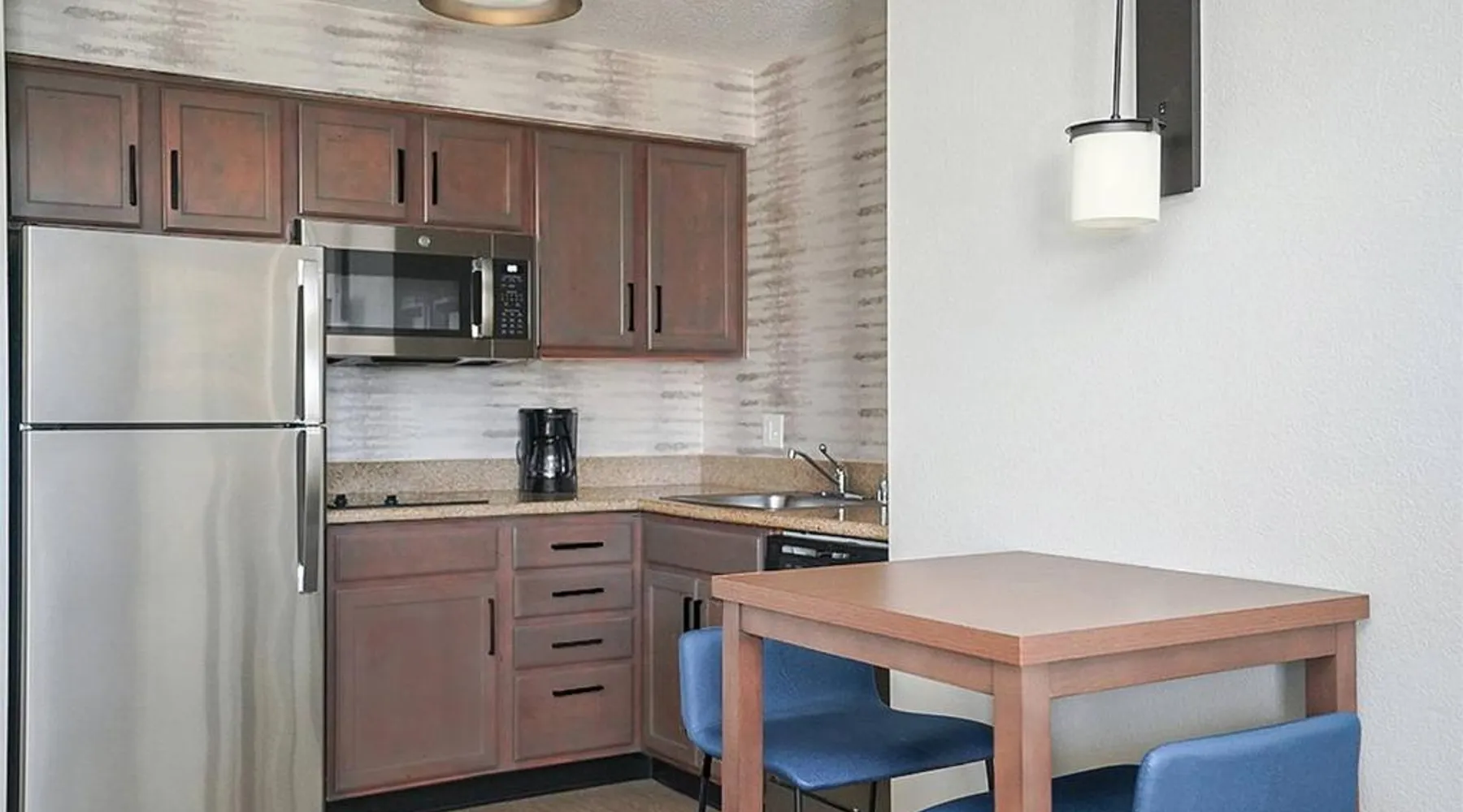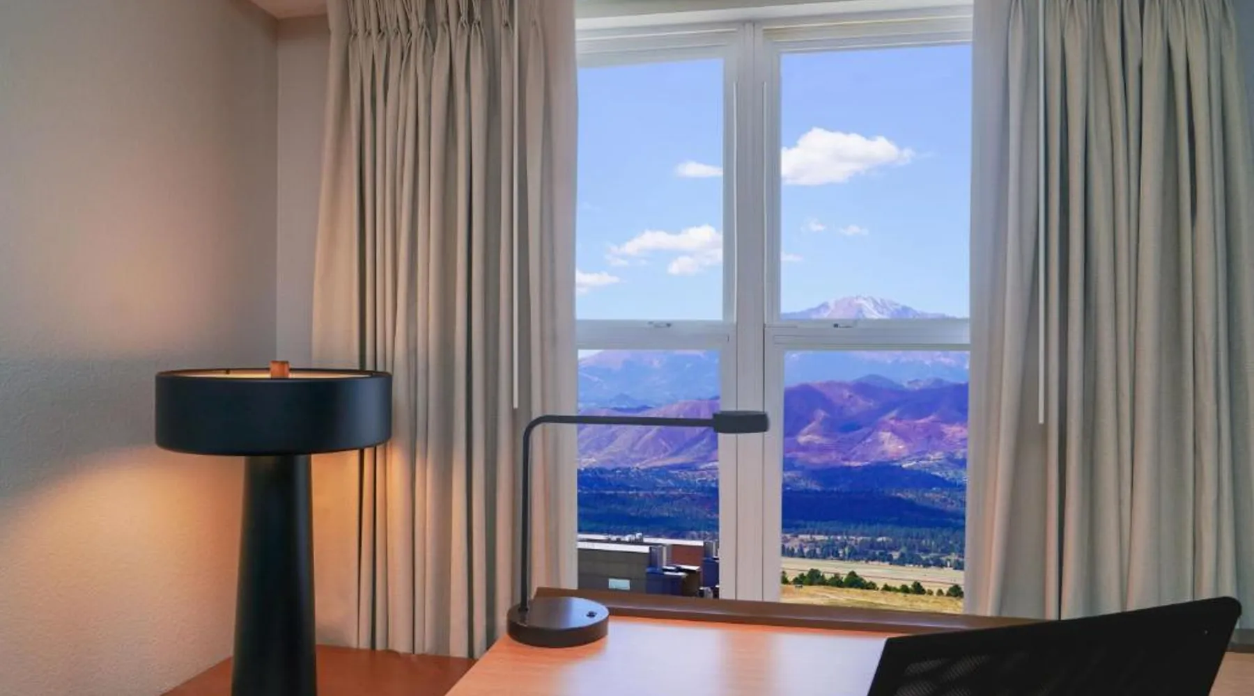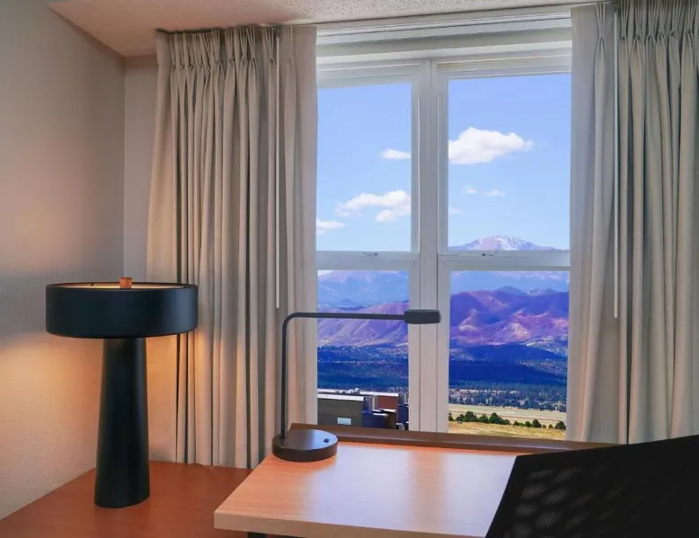Comfortable Accommodations: Residence Inn Colorado Springs North/Air Force Academy in Colorado Springs offers family rooms with private bathrooms, kitchen facilities, and mountain views. Each room includes air-conditioning, a work desk, and free WiFi. Exceptional Facilities: Guests can enjoy a fitness center, sun terrace, indoor swimming pool, and tennis court. Additional amenities include free bicycles, water sports facilities, and an outdoor fireplace. Convenient Location: Located 16 mi from Colorado Springs Airport, the hotel is near attractions such as United States Air Force Academy (8.1 mi) and Garden of the Gods (12 mi). Free on-site parking is available. Guest Services: The hotel provides private check-in and check-out, a lounge, and a 24-hour front desk. Additional services include a minimarket, outdoor play area, and business area. Offering free Wi-Fi and a sofa bed, this air-conditioned studio offers a fully equipped kitchen, a dining area, a living and seating area, a flat-screen cable satellite TV and a desk. A daily continental breakfast is provided.