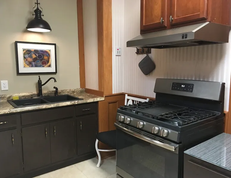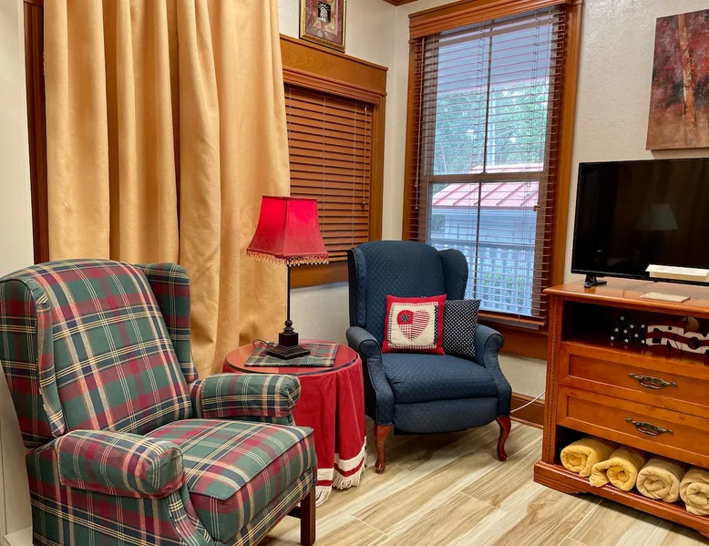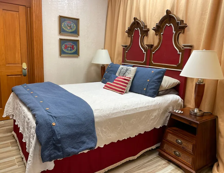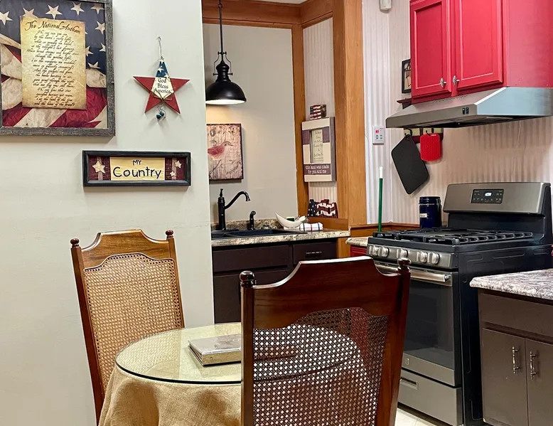 STUDIO LIBERTY APT. is on the 1st floor of the Majestic Jewel. It was originally part of the bank lobby! It has a private kitchen, bedroom with QUEEN SIZE, small area for TV viewing and a full bath. Perfect for long term or short term rentals. Opens up to the Hospitality Lobby. Additional 6 suites available for rental! TO SEE OTHER SUITES IN OUR HOME, PLEASE GO TO OUR OWNER PROFILE. Please note that the Studio is our ONLY pet friendly rental. The space This studio was built in the old bank lobby which is attached to the backside of our historical home! The bedroom is actually the former Presidents office! We spilt the lobby in half and left the vault, teller counter & drive thru as a quirky reminder of this homes history. Guest access Grand Salon, Dining Room, Hospitality Lobby and Wrap Around Veranda Other things to note Studio Apt guests receive the same amenities as the guests in the 5 suites in the original part of our home. Complimentary self-serve coffee & tea station, cold drinks & bottle water, snacks & light breakfast foods are available in the Hospitality Lobby. The Studio is pet friendly! We welcome one well behaved pet under 60 Lbs. with a $50 non-refundable pet fee. Pets are NOT allowed in other areas of the Majestic Jewel.