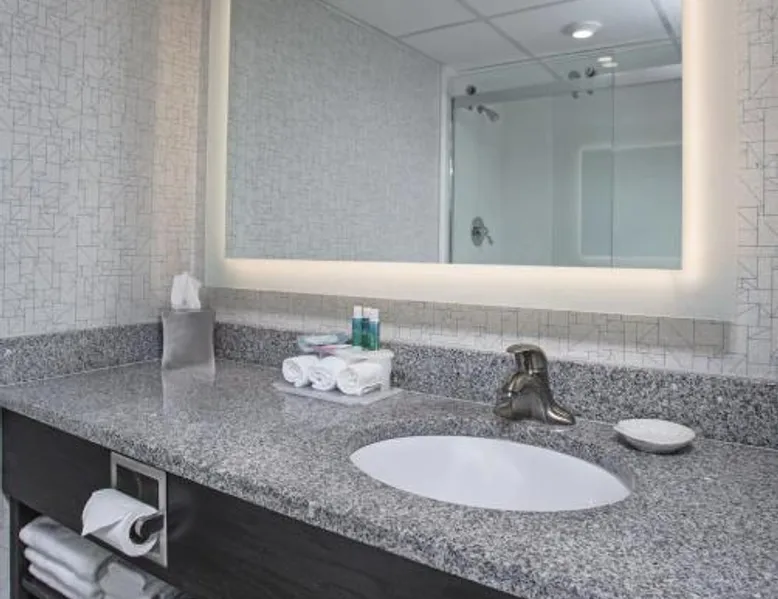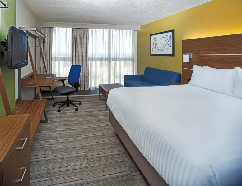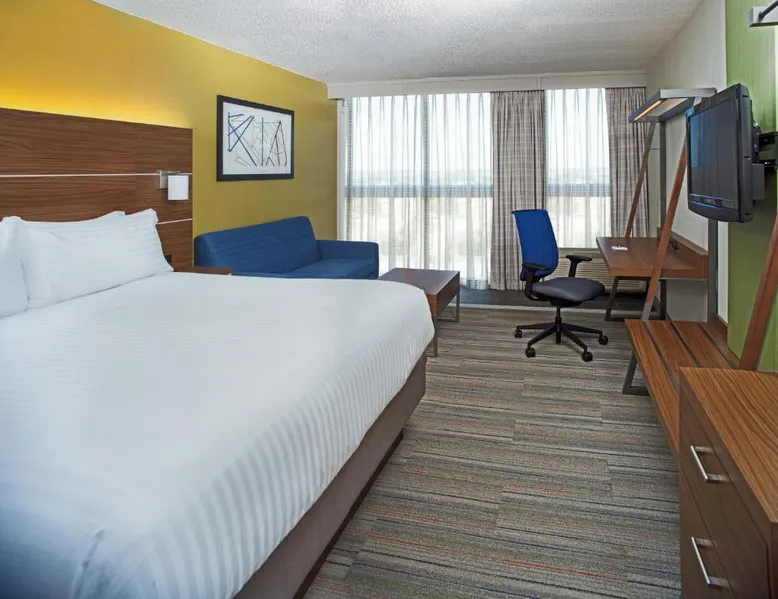 Holiday Inn Express Nags Head Oceanfront is located on the white sand shores of Nags Head. Guests can start their day with a complimentary hot buffet breakfast, and then take a plunge in the indoor heated pool. Complimentary WiFi is available to all guests. A 32-inch flat-screen TV, desk, and Keurig coffee machine are standard in every room. Holiday Inn Express Nags Head Oceanfront extras include a microwave, small refrigerator, and en suite. Some rooms have a sofa bed. The reception and business center are open 24 hours. The fitness room features free weights, treadmills, and step machines. Free covered parking and a self-service launderette are provided as well. The Express Start breakfast is served buffet-style and offers fresh coffee, eggs, and bacon. Continental breakfast items are also available. Jockey's Ridge State Park is 4 minutes’ drive from the hotel, while Roanoke Island is 5.3 mi away. Fort Raleigh National Historic Site, which preserves local Native American heritage, is a 19 minutes’ drive by car. This room features a microwave, refrigerator, flat-screen TV, and free WiFi.