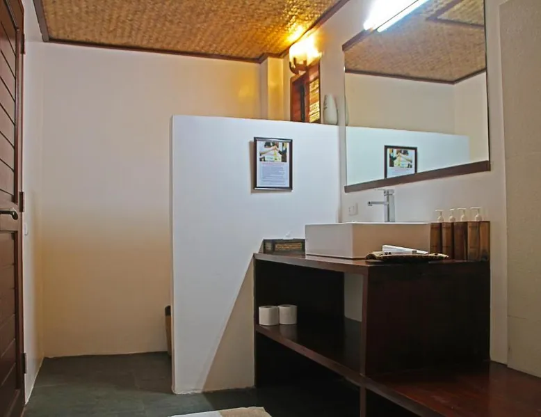 Last Frontier Beach Resort - Adults Only is a beachfront property set in El Nido, located within 5 mi from Big Lagoon and 5.6 mi from Small Lagoon. The resort features of an outdoor swimming pool and a restaurant with views of the sea. All the rooms at the resort are fitted with air conditioning, a patio with seating area, and a flat-screen cable TV. The rooms also include a safety deposit box, a mini-bar, and a private bathroom with free toiletries. Continental and à la carte breakfast options are available every morning at the property. Guests can dine with relaxing views of the sea at the on-site restaurant, which serves a variety of Spanish, Japanese and Italian dishes. Mediterranean and Asian cuisines are also offered at the restaurant. Last Frontier Beach Resort - Adults Only offers an outdoor swimming pool with views of the sea and sun beds while a variety of popular activities are available in the area and around the property, including snorkeling, cycling, and island tours. A gift shop is available at the property goes guests who wish to busy island souvenirs. The property can arrange for massage services at an additional cost, while car rental and airport shuttle services are also available at extra charge. Last Frontier Beach Resort - Adults Only 45-minute drive from Nacpan Beach and the nearest airport is El Nido Airport, 20-minute drive away from the property. Located on the ground floor of the main building, this airy room comes with a seating and dining area, bathroom and deck. Free Wifi is offered.