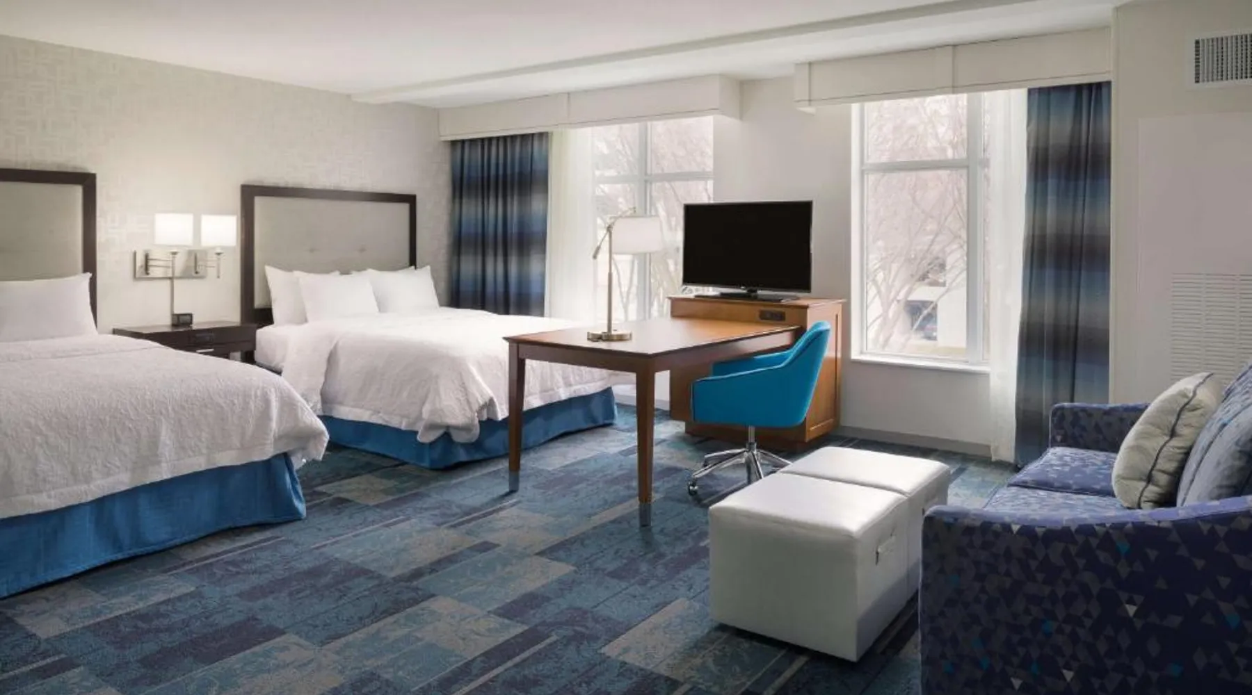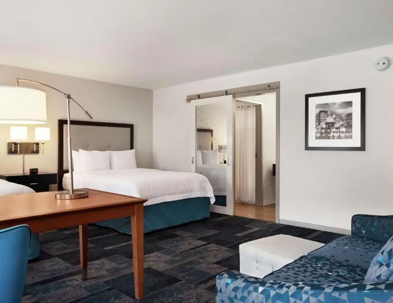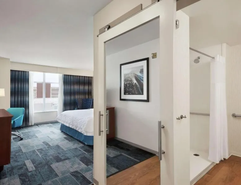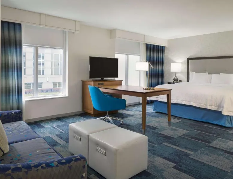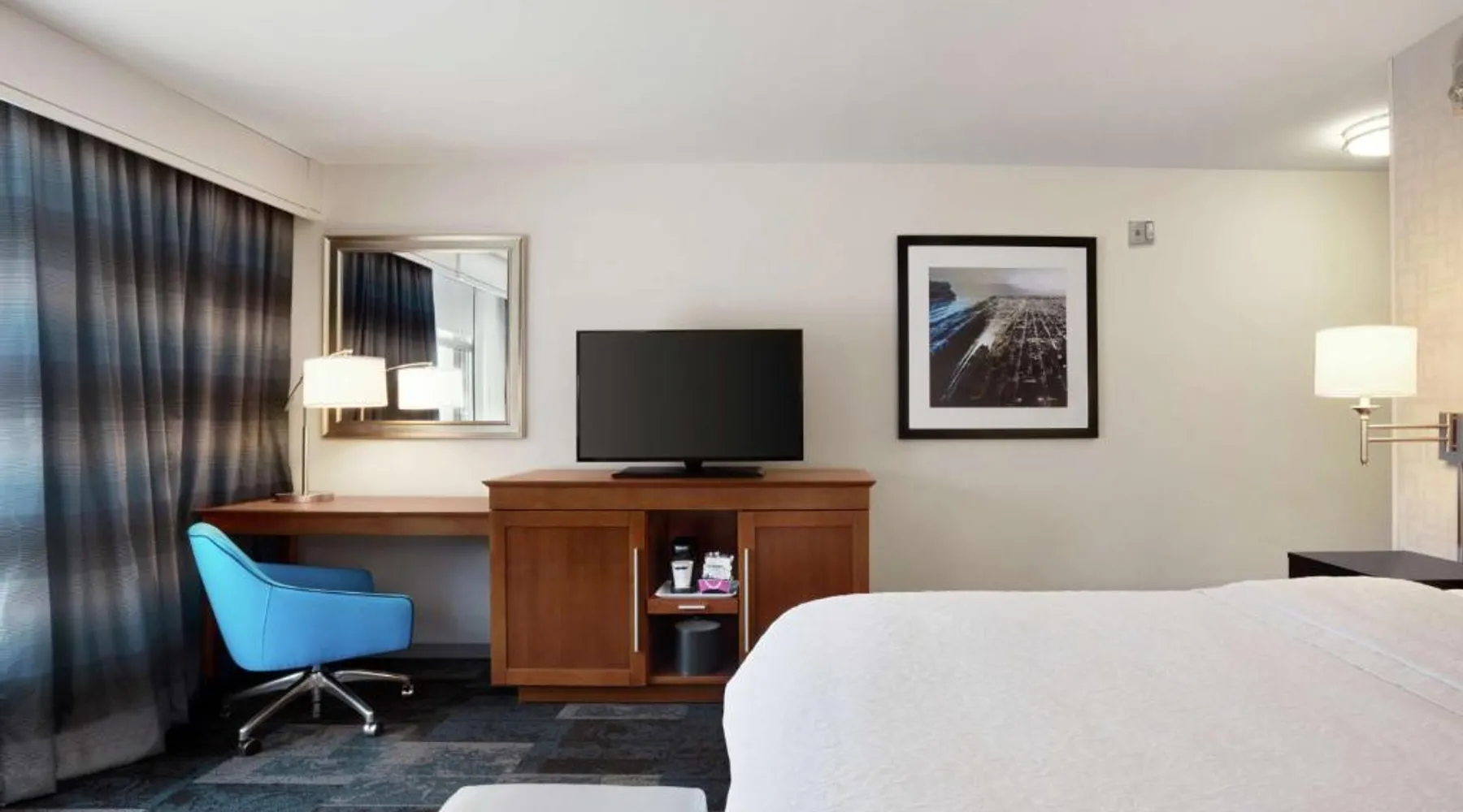 Comfortable Accommodations: Hampton Inn & Suites Rosemont Chicago O'Hare in Rosemont offers family rooms with free WiFi, air-conditioning, and modern amenities. Each room includes a tea and coffee maker, hairdryer, refrigerator, shower, and TV. Exceptional Facilities: Guests enjoy an indoor swimming pool, fitness room, hot tub, and lounge. Additional amenities include a minimarket, 24-hour front desk, and paid on-site private parking. Convenient Location: Located 1.9 mi from Chicago O'Hare International Airport, the hotel is near Rivers Casino (12-minute walk), Donald E Stephens Convention Center (1 mi), and Museum Of Hummels (5-minute walk). Highly rated for its breakfast, attentive staff, and convenient location. This double room offers a tea and coffee maker and a flat-screen TV. The unit has 1 bed.
