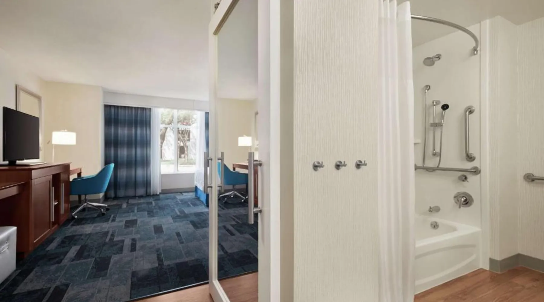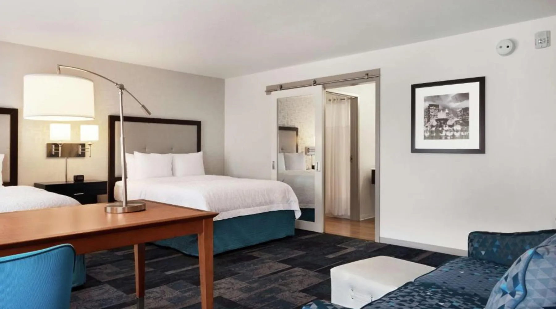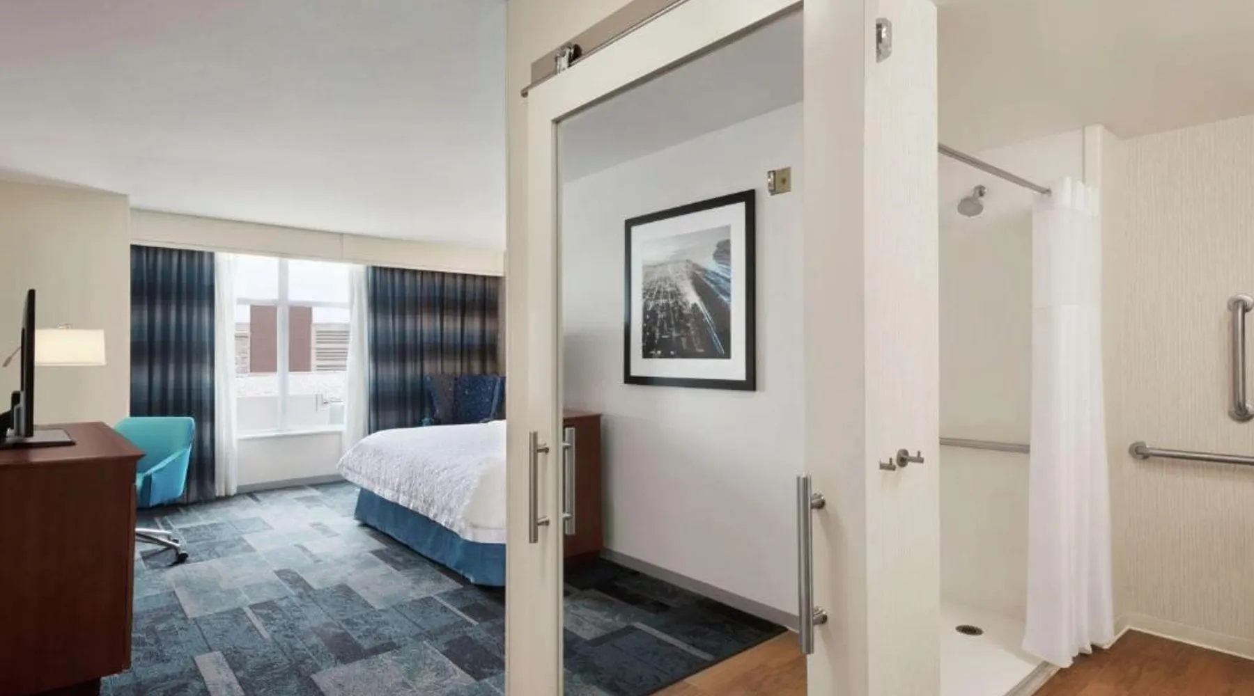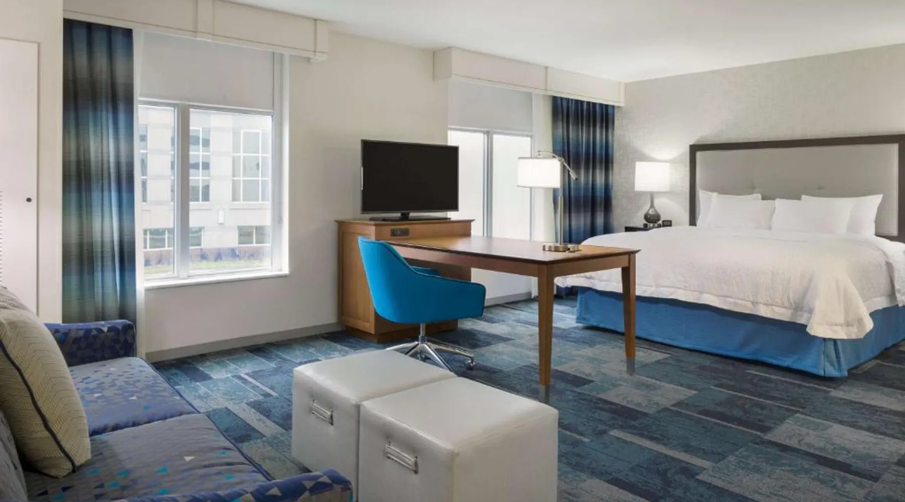 Comfortable Accommodations: Hampton Inn & Suites Rosemont Chicago O'Hare in Rosemont offers family rooms with free WiFi, air-conditioning, and modern amenities. Each room includes a tea and coffee maker, hairdryer, refrigerator, shower, and TV. Exceptional Facilities: Guests enjoy an indoor swimming pool, fitness room, hot tub, and lounge. Additional amenities include a minimarket, 24-hour front desk, and paid on-site private parking. Convenient Location: Located 1.9 mi from Chicago O'Hare International Airport, the hotel is near Rivers Casino (12-minute walk), Donald E Stephens Convention Center (1 mi), and Museum Of Hummels (5-minute walk). Highly rated for its breakfast, attentive staff, and convenient location. This double room offers a tea and coffee maker and a flat-screen TV. The unit has 1 bed.