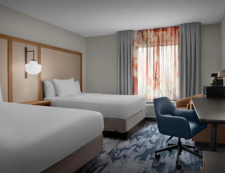 Comfortable Accommodations: Rooms feature air-conditioning, private bathrooms, hairdryers, coffee machines, refrigerators, work desks, free toiletries, microwaves, bath or showers, carpeted floors, wardrobes, and TVs. Facilities and Services: Guests enjoy a fitness center, indoor swimming pool, free WiFi, elevator, 24-hour front desk, minimarket, business area, outdoor seating area, and luggage storage. Dining and Breakfast: An American breakfast is provided by the property. Location and Attractions: Located in Rogers, the hotel is 11 mi from Northwest Arkansas Regional Airport. Nearby attractions include Midtown Shopping Center (3.7 mi), Peel Mansion And Historic Gardens (4.3 mi), and Crystal Bridges Museum of American Art (4.3 mi). This double room features a spa bath. The spacious double room features air conditioning, a coffee machine, as well as a private bathroom boasting a bath or a shower and a hairdryer. The double room provides a wardrobe, a carpeted floor, heating, as well as a TV with cable channels. The unit has 2 beds.