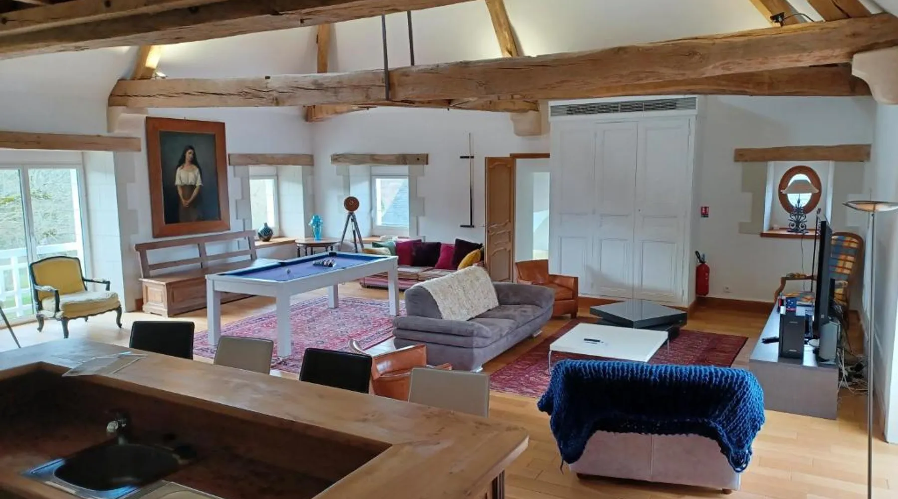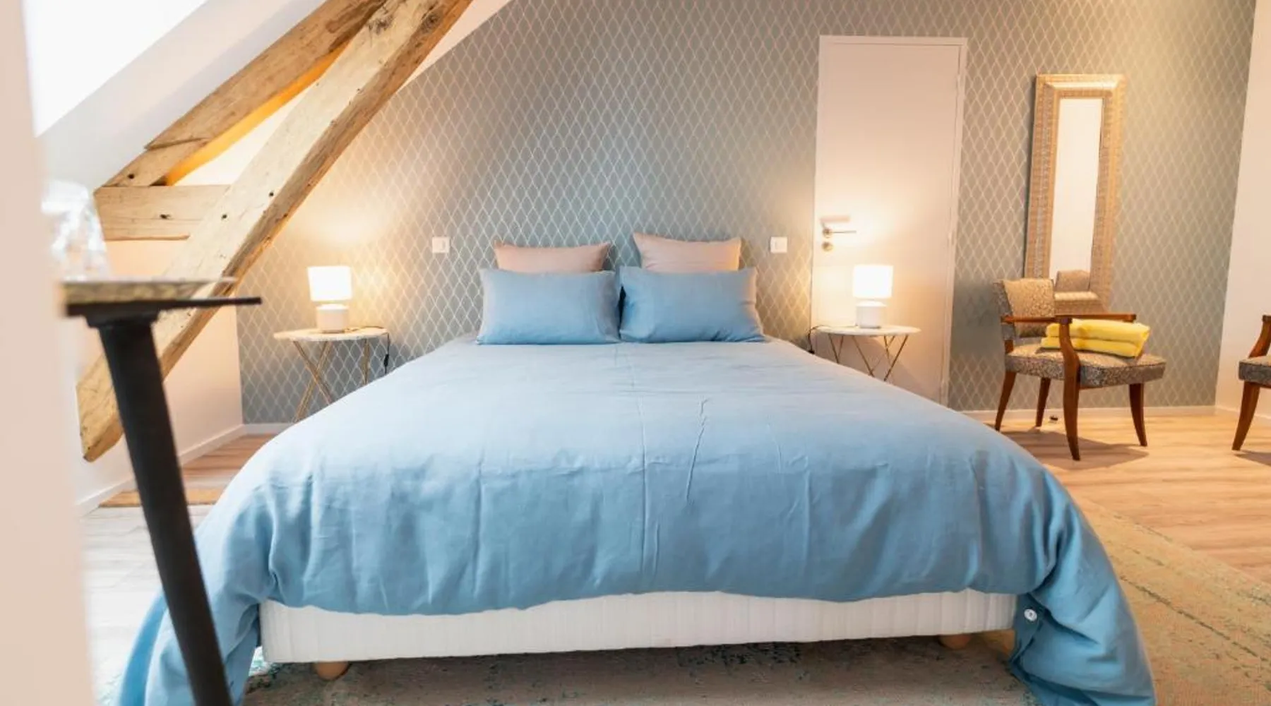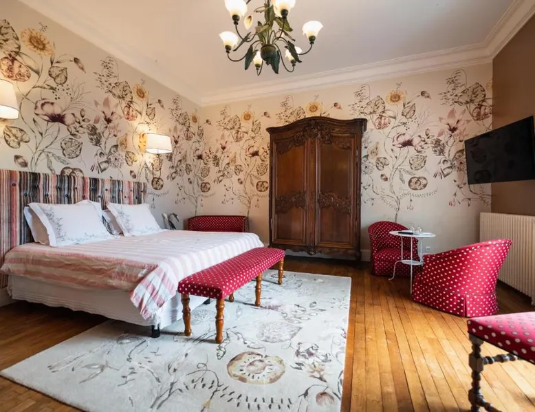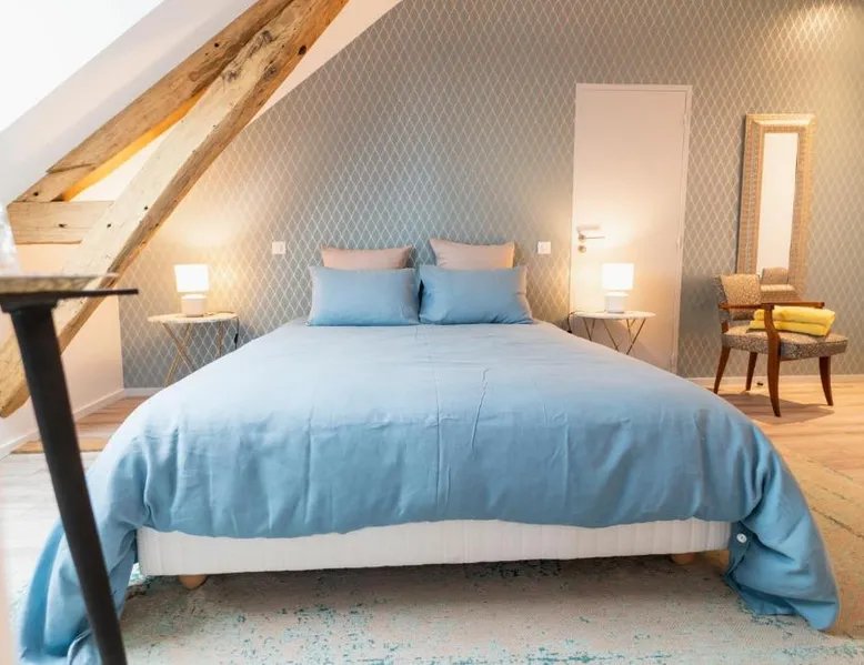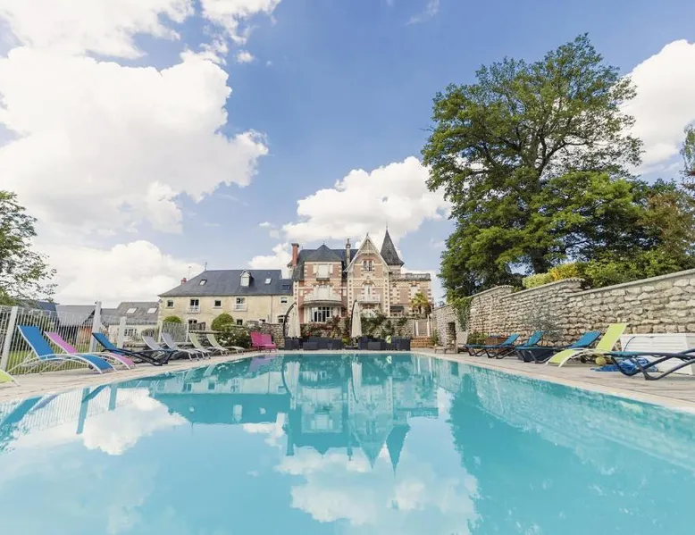 Elegant Accommodations: La Poignardière in Châtillon-sur-Indre offers family rooms with private bathrooms, equipped with modern amenities. Each room features a work desk, TV, and free WiFi, ensuring a comfortable stay. Leisure Facilities: Guests can enjoy a swimming pool with a view, indoor pool, tennis court, and games room. Additional facilities include a steam room, hammam, and outdoor seating area, providing ample opportunities for relaxation and entertainment. Dining Experience: A continental or buffet breakfast is served daily, including fresh pastries, cheese, fruits, and juice. Special diet menus are available, and room service caters to all preferences. Local Attractions: Located 45 mi from Tours Val de Loire Airport, the property is near Château de Loches (17 mi) and Beauval Zoo (22 mi). Other attractions include Château de Valencay and Château d'Azay-le-Ferron, each within 26 mi. This family room's standout feature is the pool with a view. Offering free toiletries and bathrobes, this family room includes a private bathroom with a shower and a hairdryer. The family room offers a flat-screen TV, a seating area, a wardrobe, a high chair for children as well as lake views. The unit has 2 beds.