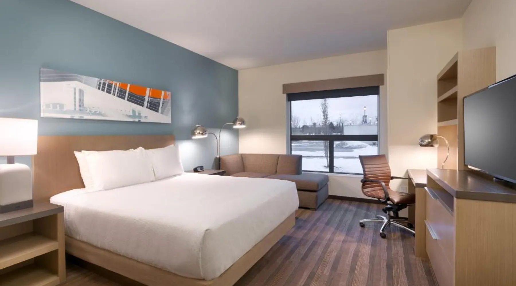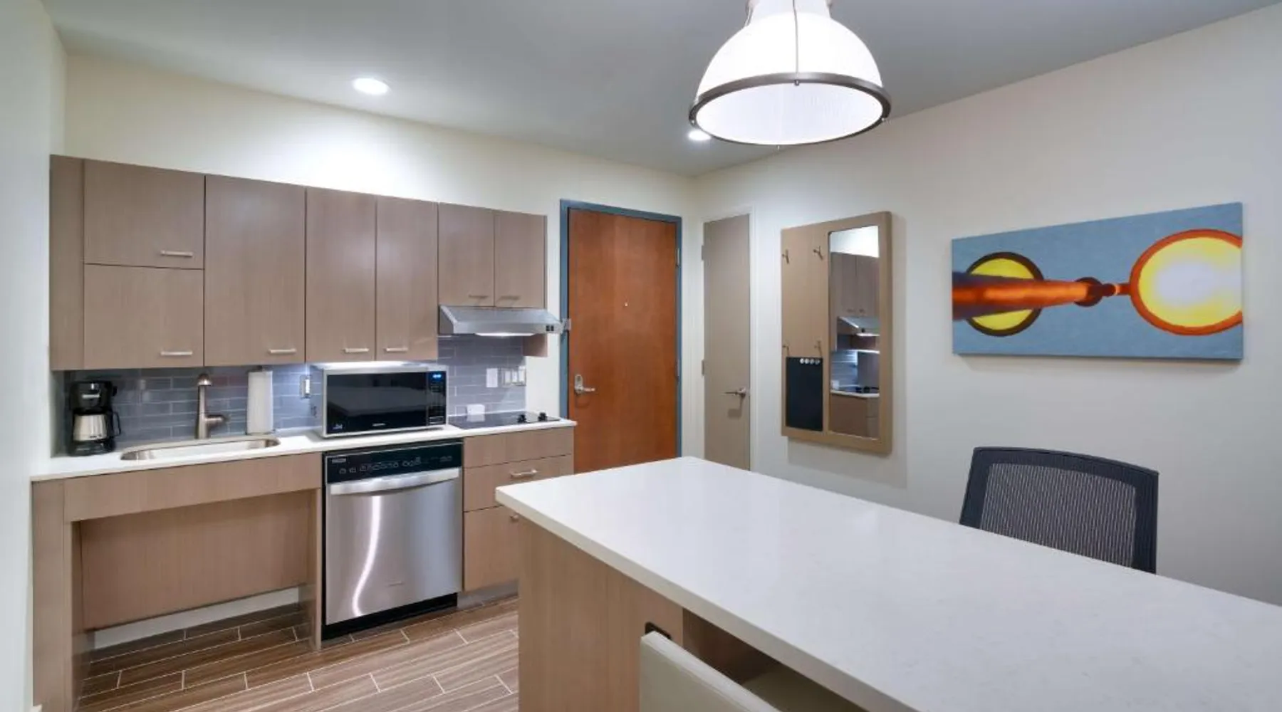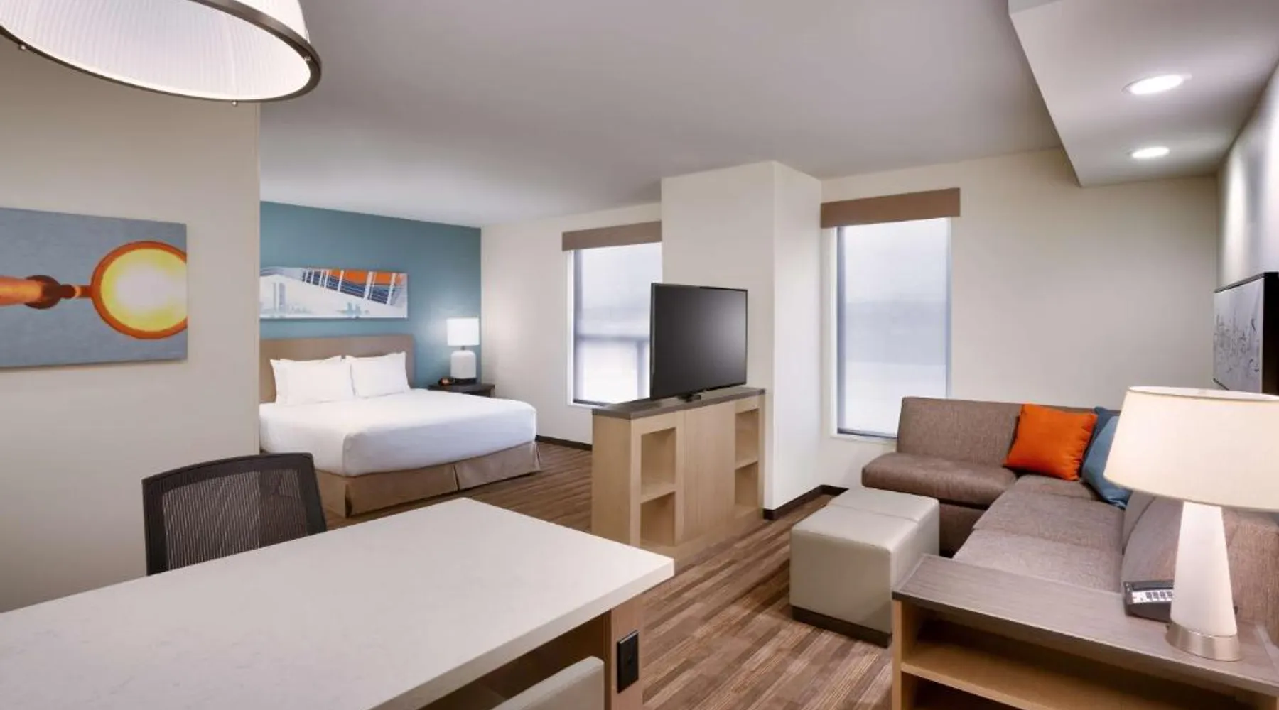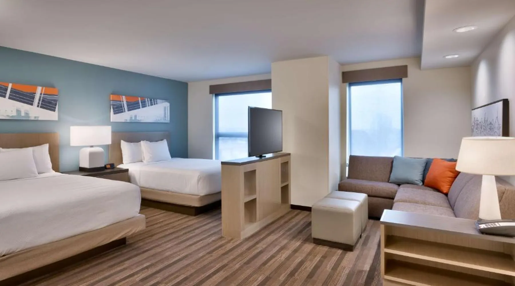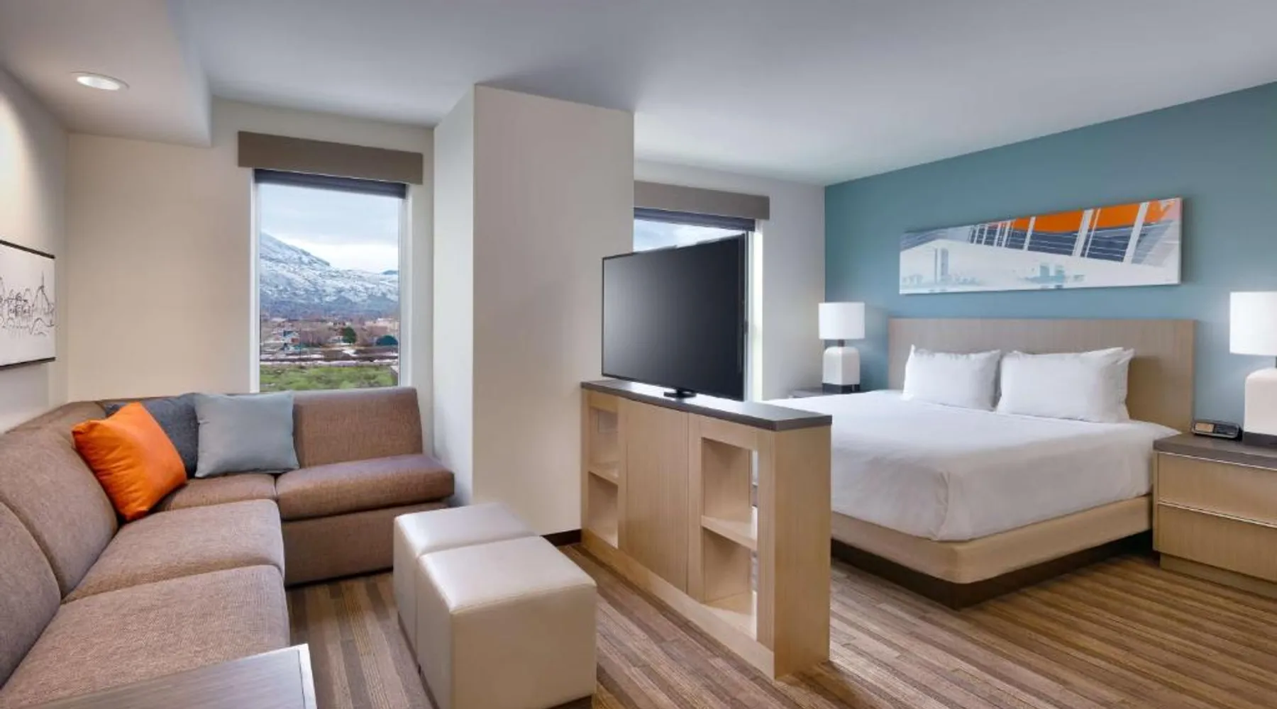 Comfortable Accommodations: Hyatt House Provo/Pleasant Grove in Pleasant Grove offers rooms with air-conditioning, free WiFi, and modern amenities. Each room includes a work desk, sofa bed, and free toiletries. Exceptional Facilities: Guests can enjoy a fitness center, sun terrace, year-round outdoor swimming pool, and a family-friendly restaurant serving American cuisine. Additional facilities include a hot tub, outdoor fireplace, and barbecue areas. Convenient Location: Located 13 mi from Provo Municipal Airport and 9.9 mi from Thanksgiving Point, the hotel is near hiking trails. Free on-site parking is available. Guest Satisfaction: Highly rated for its breakfast, attentive staff, and room cleanliness, Hyatt House Provo/Pleasant Grove ensures a pleasant stay. The quadruple room is furnished with a desk and a seating area and provides air conditioning and a tea and coffee maker. The unit offers 3 beds.