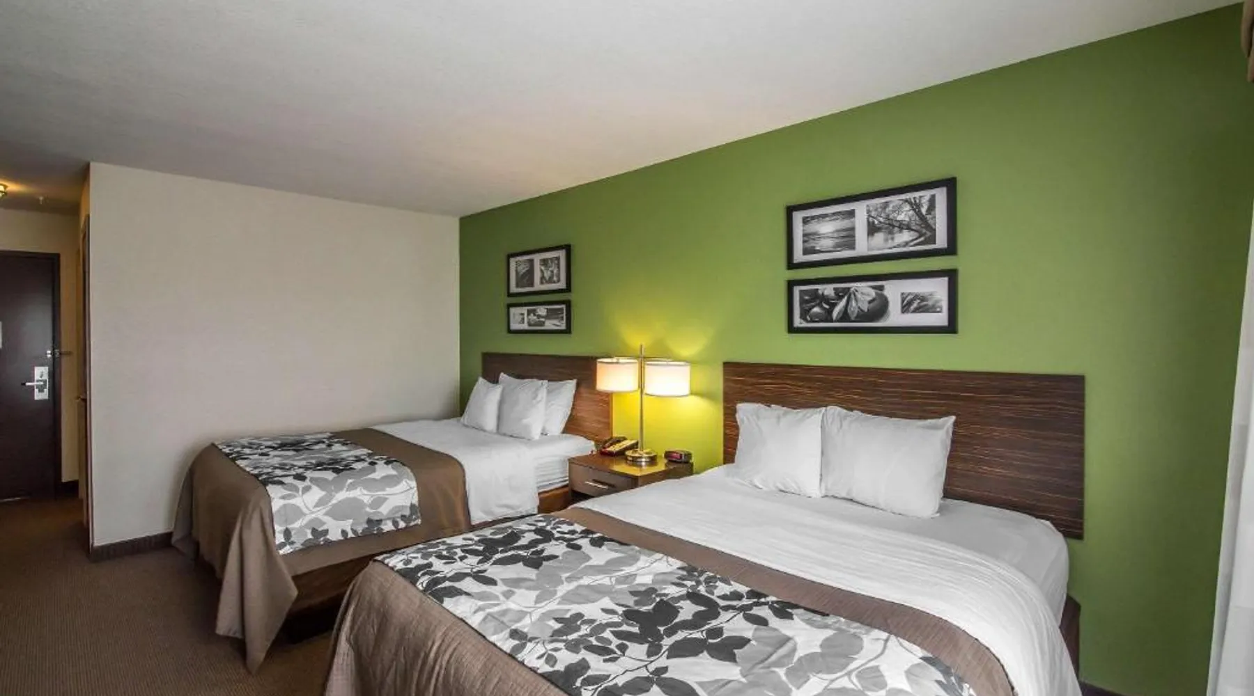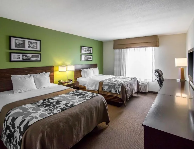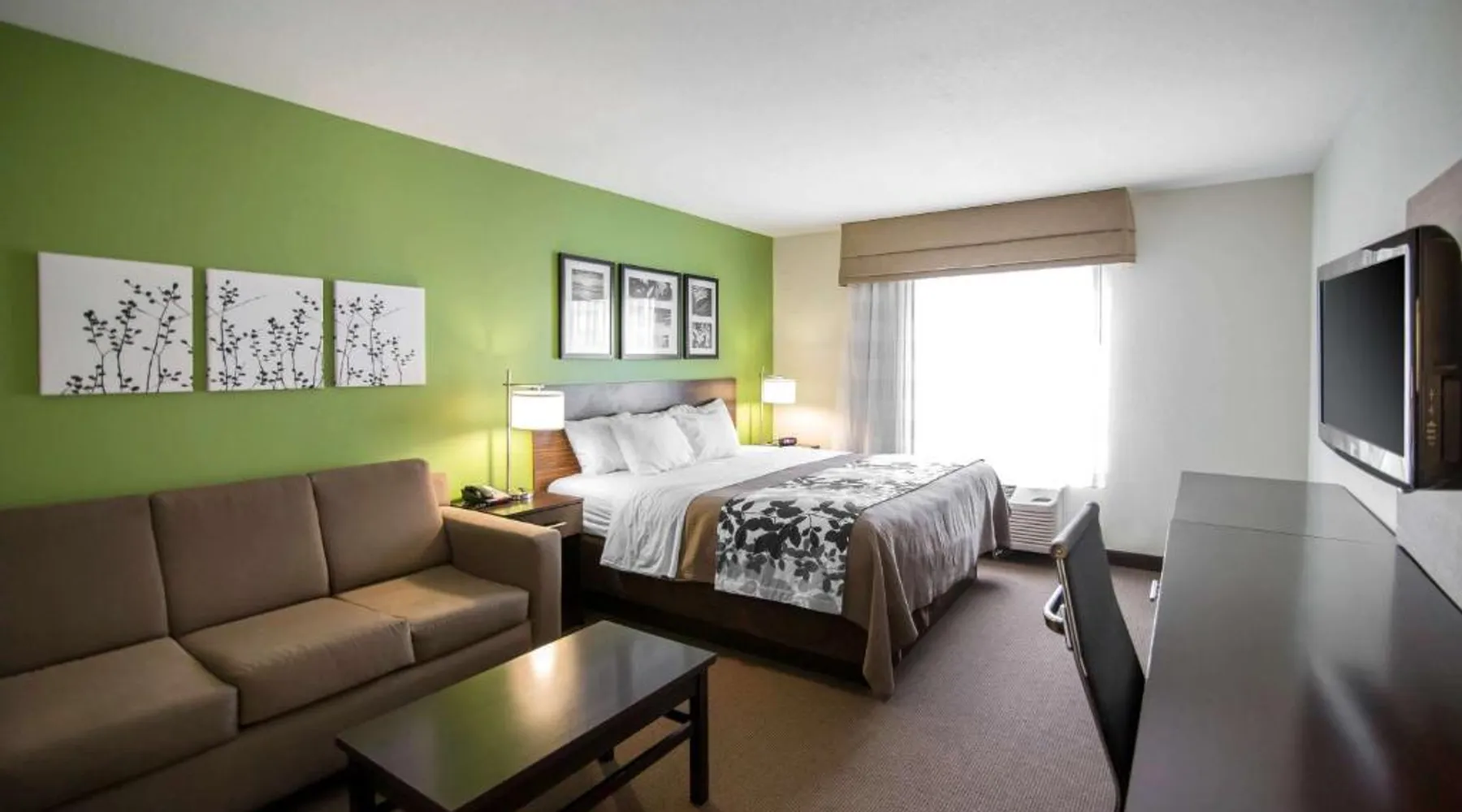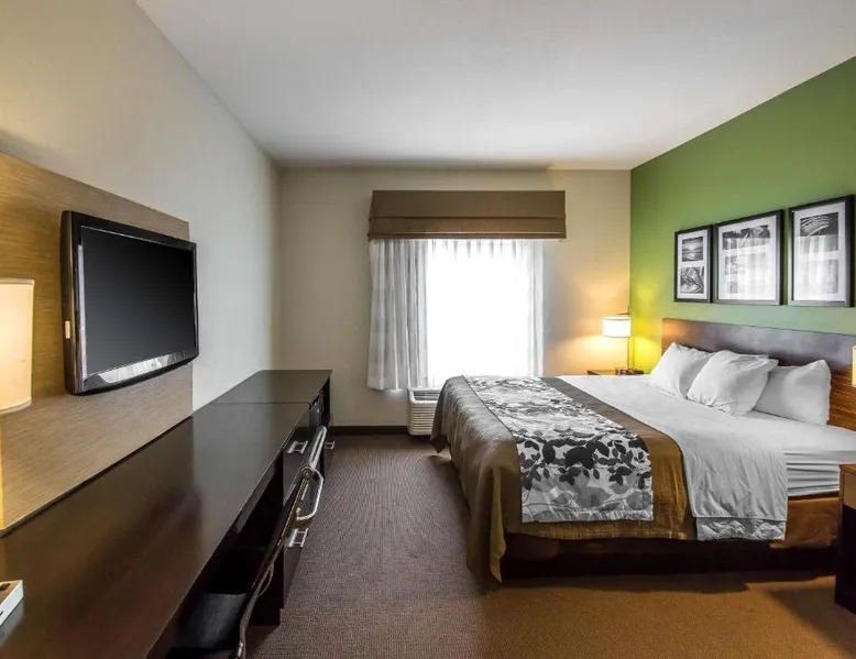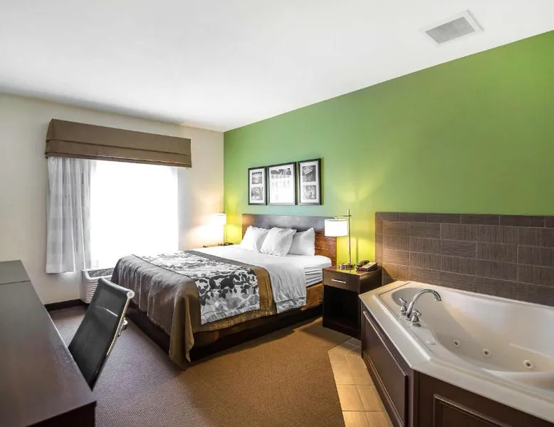 Located off Interstate 35, the Sleep Inn & Suites in Haysville, KS is near Kansas Star Casino and Derby River Rapids. This hotel offers easy access to McConnell Air Force Base and Kansas Aviation Museum. All rooms offer a flat-screen television with cable, coffee maker, microwave, hair dryer, refrigerator, alarm clock, iron and ironing board. Some rooms feature a sofa sleeper and whirlpool. This is a pet-friendly hotel, fees apply. This hotel features indoor heated pool and a relaxing soak in the indoor hot tub. Guests traveling on business will welcome additional conveniences like the on-site Business Center, public computer with Internet access, in-room desks, voice mail and access to copy and fax services. Other amenities include: Free wireless high-speed Internet access, Free Morning Medley Hot Breakfast, Free daily newspaper, Guest laundry service. This nonsmoking hotel is part of the Designed to Dream program, offering guests a fresh and well-designed experience, restful environment with warm colors, fresh graphics and soothing nature-oriented art. The spacious double room features a TV with cable channels, a tea and coffee maker, a seating area and heating. The unit has 1 bed.