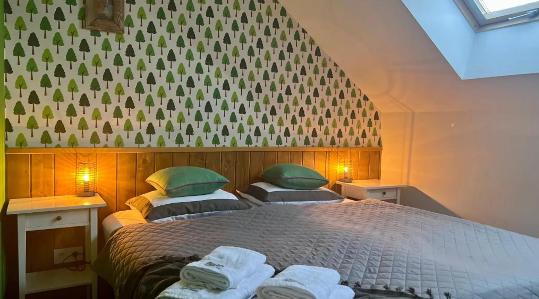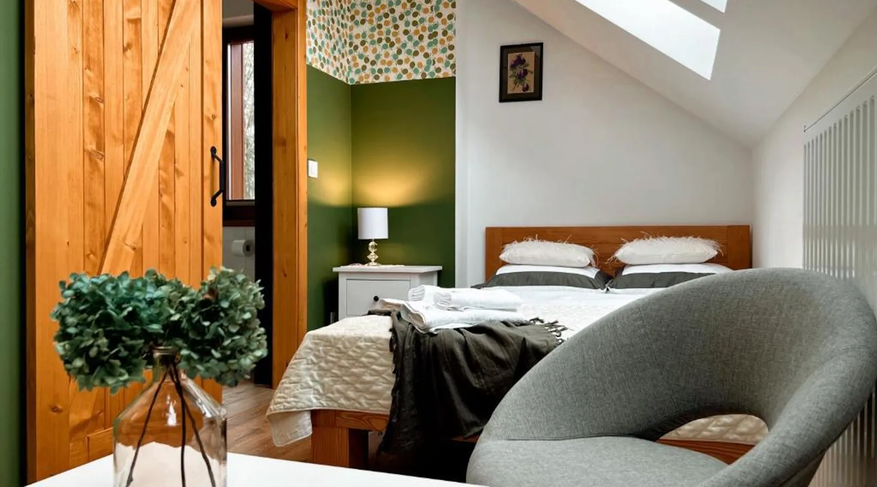 Elegant Accommodations: Zagroda na Pacanach in Iwkowa offers a bed and breakfast with a swimming pool with a view, sun terrace, and lush garden. Guests enjoy free WiFi, a bar, and an outdoor fireplace. Comfortable Amenities: The property features a lounge, indoor and outdoor play areas, games room, and coffee shop. Additional facilities include ski equipment hire, bike hire, and barbecue areas. Local Attractions: Nowy Wiśnicz Castle is 15 mi away, and the Salt Mine in Bochnia is 19 mi from the property. John Paul II International Kraków–Balice Airport is 52 mi distant. Guest Favorites: Guests appreciate the quietness of the room and the quietness of the area, ensuring a peaceful stay. This apartment has a private entrance, a kitchen, a living room and bathrooms.