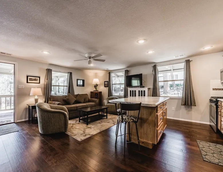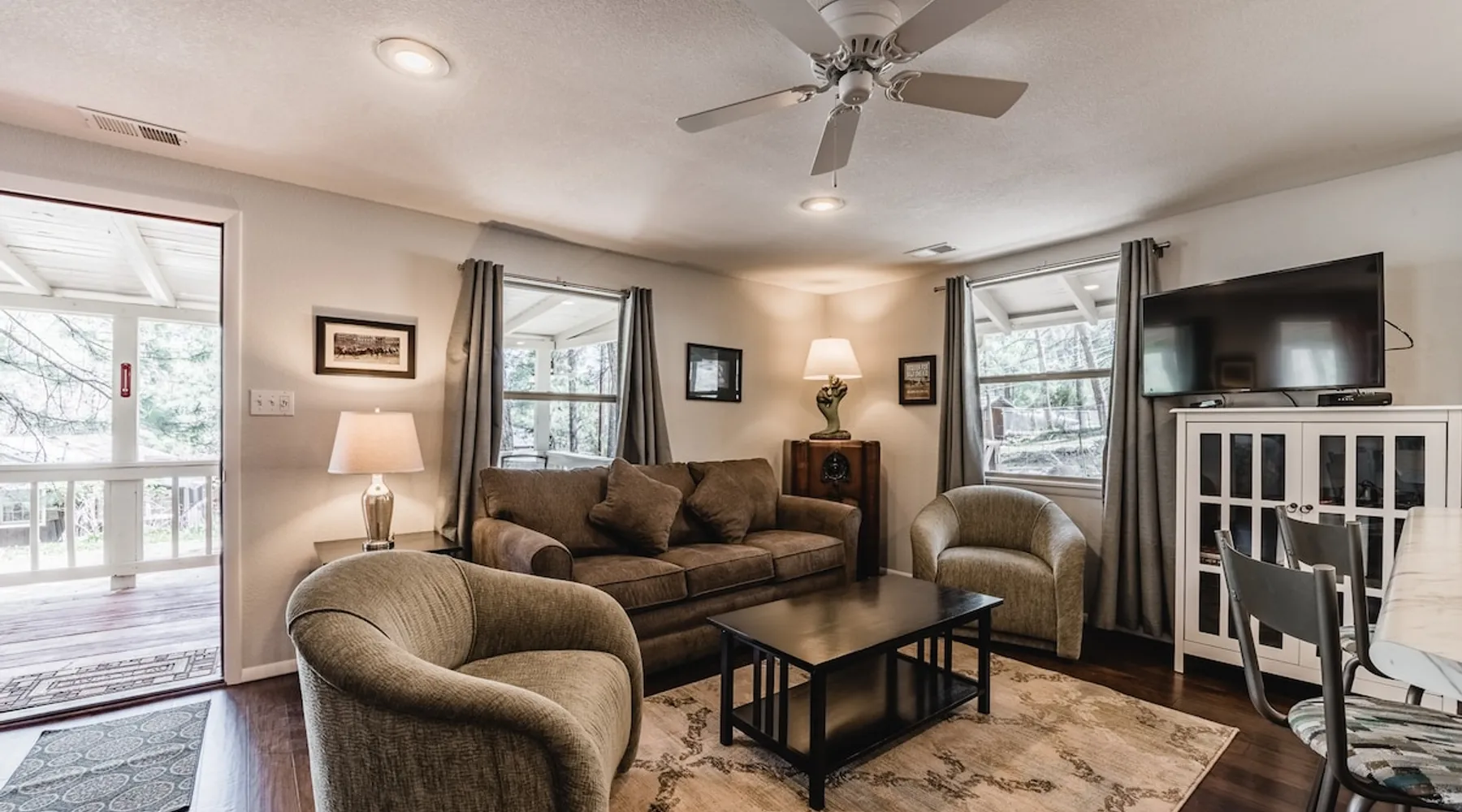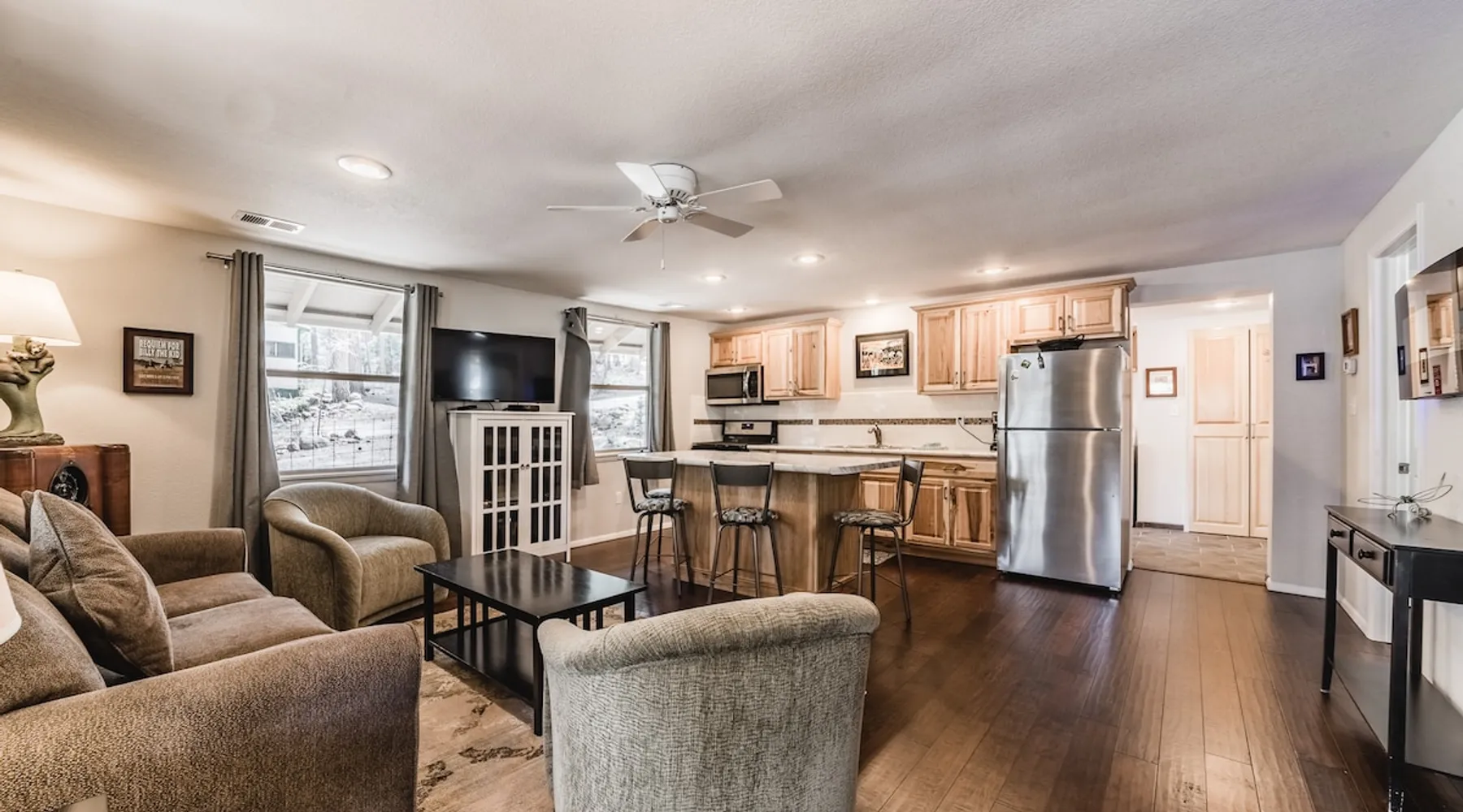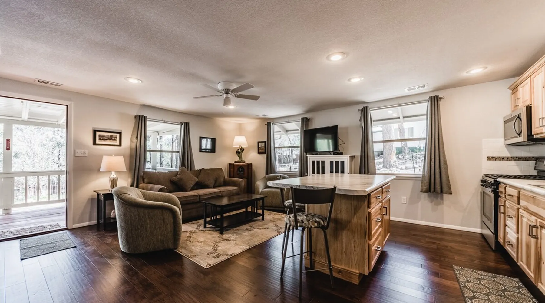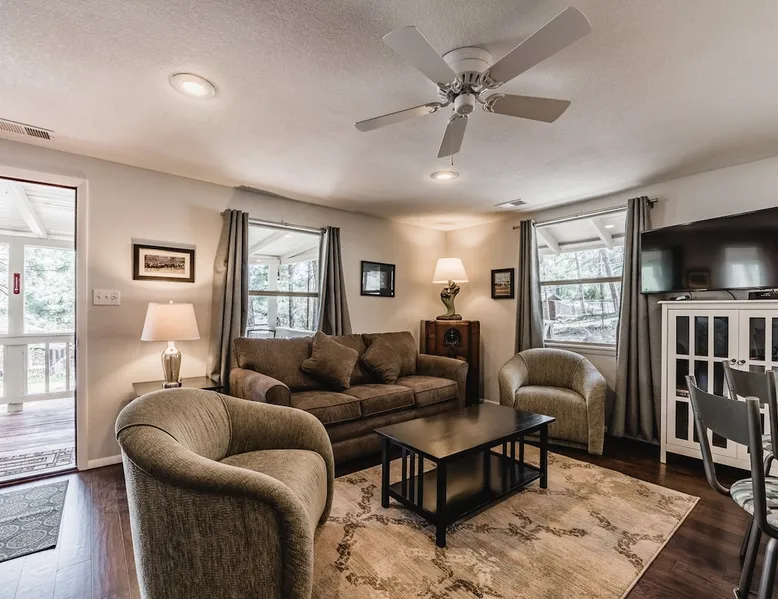 2 Bedroom | 1 Bath | Sleeps 6 Tucked away in the heart of Ruidoso, Miles Hacienda is a beautifully remodeled 2BR/1BA cottage offering a rare combo: stylish comfort, walkable location, and peaceful privacy. Surrounded by trees and a large yard that makes you feel secluded, this charming hideaway is perfect for couples, small families, or friends looking to relax in style while staying close to shops, restaurants, and local attractions. The space 2 Bed/1 Bath (shower) | Maximum Guests: 6| Welcome to Mountain Top, your perfect family or group escape in the Black Forest of Ruidoso, NM. Nestled at the top of a secluded cul-de-sac, this spacious cabin offers 180° views of the mountains with all the comforts of home and more. Whether you’re planning a quiet couples’ retreat or an action-packed family vacation, Mountain Top delivers both relaxation and adventure. 🛏️ Cabin Features: 3 Bedrooms + Sofa Bed | Sleeps up to 8 Master: King bed + luxurious custom stone shower Guest Room 1: Queen bed Guest Room 2: Twin-over-full bunk Bonus: Pull-out full-sized sofa bed 2 Bathrooms | Including shower/tub combo Pet Friendly 🐾 (with approval & additional fee) Multiple Decks with panoramic views Private Hot Tub on the back porch Game Room with convertible pool/ping pong table Washer & Dryer for convenience Propane Grill for summer cookouts Fully Stocked Open Kitchen with everything you need 🌄 Why You’ll Love It Here: Breathtaking views and fresh mountain air at 7,000+ feet elevation Easy access to Midtown, Grindstone Lake, Inn of the Mountain Gods, shopping, restaurants, hiking & more Wildlife sightings: Keep an eye out for elk, deer, wild horses, foxes, turkeys — even black bears in summer! Perfect for all seasons — hot tub under the stars, cozy movie nights, or sunny grilling on the deck 🔑 The Experience After a day of adventure, unwind with a glass of wine in the hot tub, grill up your catch of the day, or gather the crew for a game night. Whether you're here for peace or play, Mountain Top is your home base for making mountain memories. Amenities: Two Bedrooms, One Queen Bed, One Full Bed, Single Bathroom with Stand-Up Shower and Double Sinks, Sleeper Sofa with Memory Foam Mattress, Covered Front Porch, Outdoor Table and Chairs, Fenced-in Back Yard, Propane Gas Grill, Washer/Dryer, Central Heat and Air Conditioning, Cable TV in Bedrooms and Living Room, Full Kitchen, Island with Bar Stools, Wi-Fi. Please, No Pets! Guest access Go straight to the cabin and call the office any time after 4pm to receive the lock box code.
