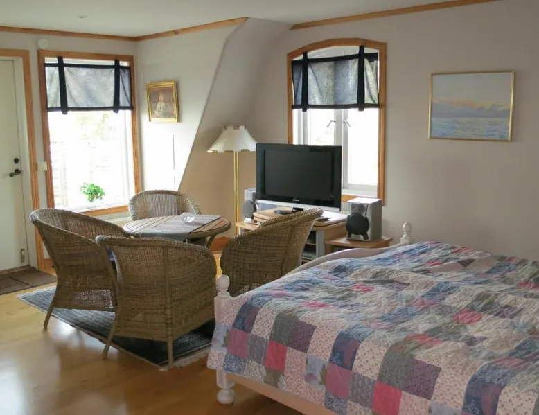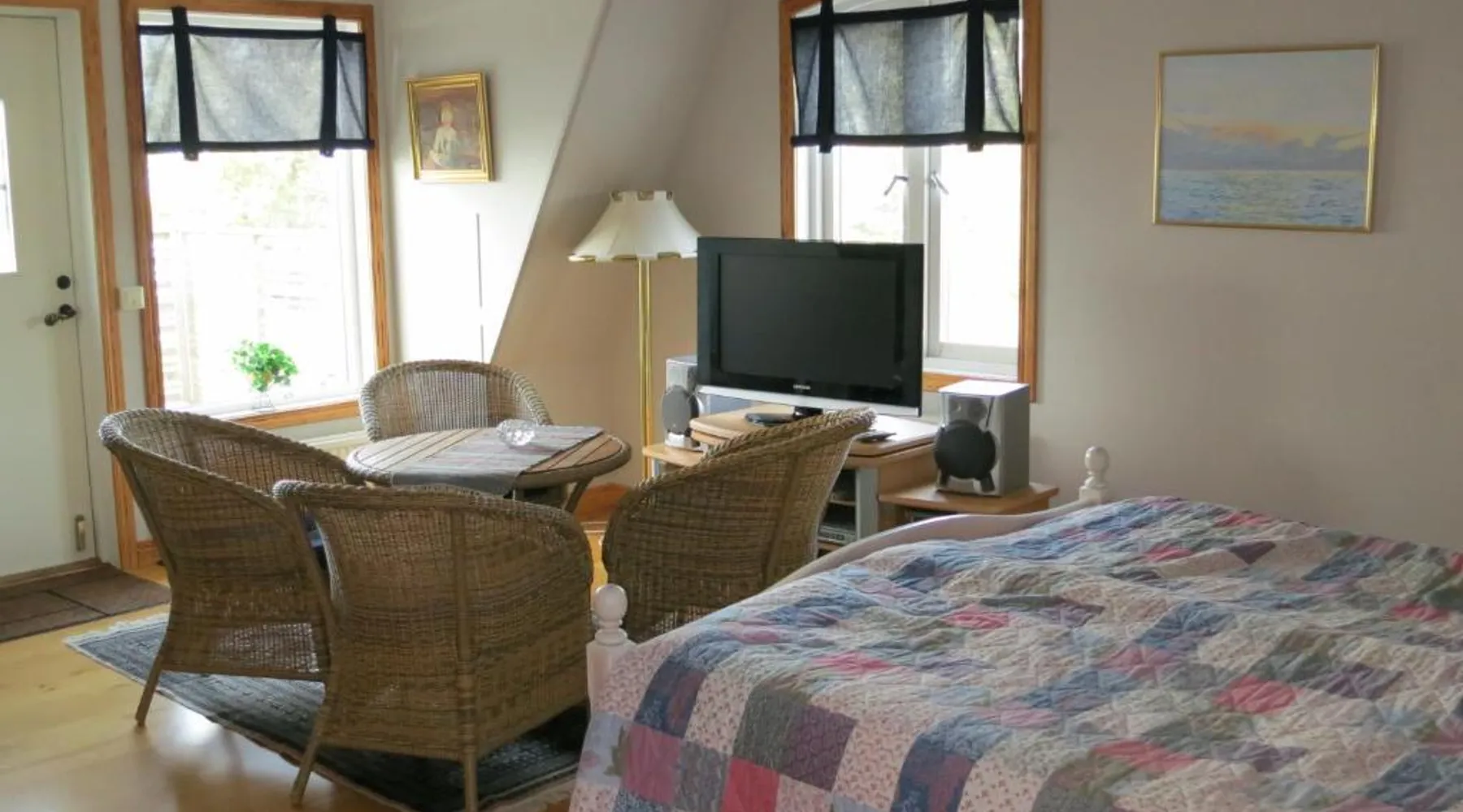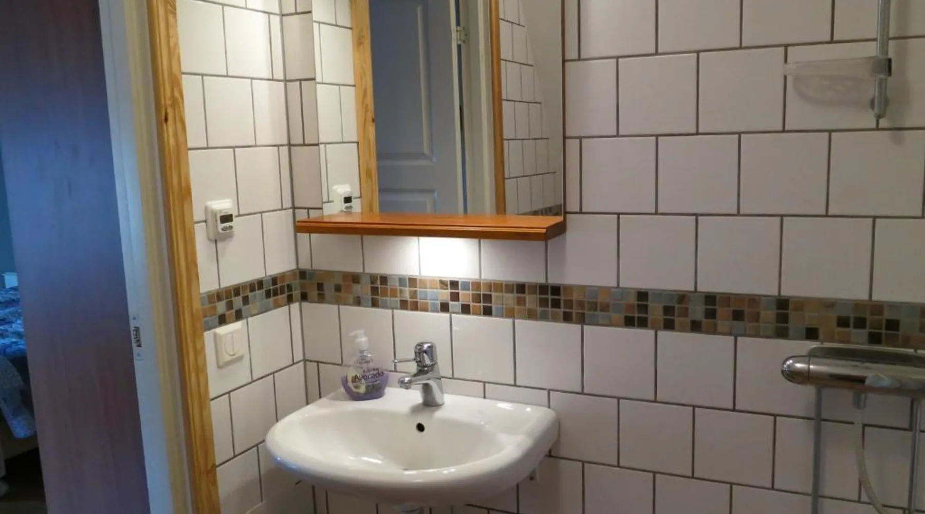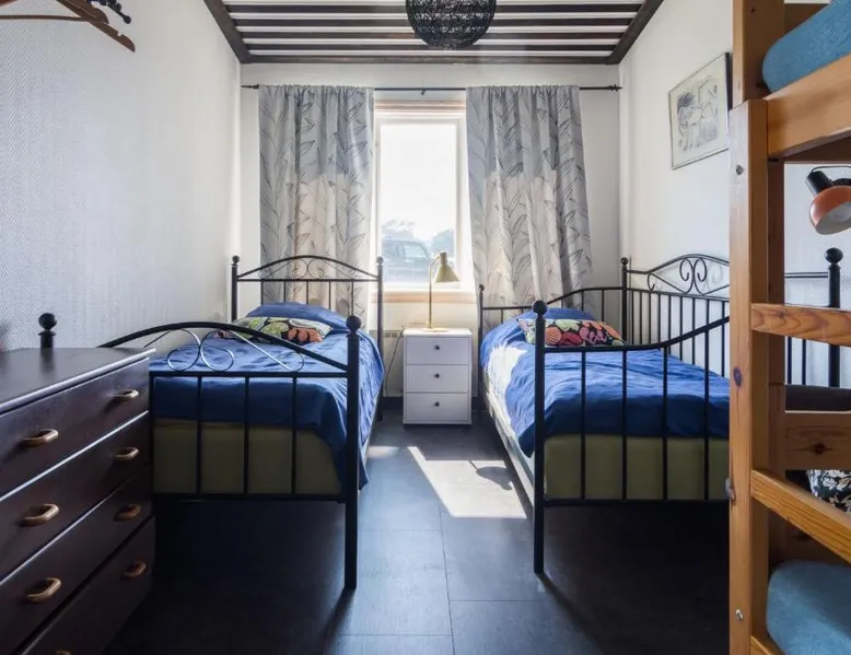 This property is next to Köpingsvik Strand beach on Öland island. It offers a large garden and a beachfront terrace. Public area WiFi and parking are free. Borgholm town center is 1.9 mi away. Strandbaden Köpingsvik’s rooms have a washbasin and shared bathrooms. Apartments have their own private kitchenette, bathroom with shower and furnished patio offering Baltic Sea views. Dining options include a restaurant with open air live music until 24.00. The 12th-century ruins of Borgholm Castle are 3.1 mi from Strandbaden Köpingsvik. Simple room with 2 single beds and 2 bunk beds. Shared bathrooms are found in the hallway.