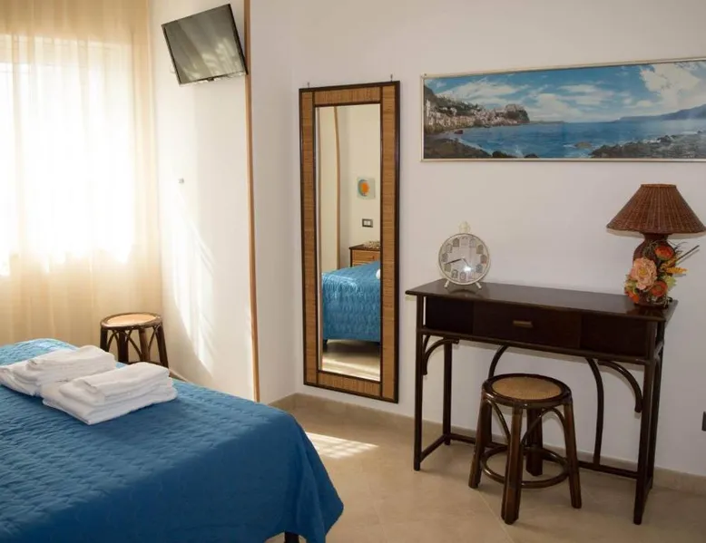 Essential Facilities: B&B Sunshine in Scilla offers a sun terrace and free WiFi. Guests can relax in the outdoor seating area or enjoy sea views from the balcony. Comfortable Accommodations: The bed and breakfast features family rooms with private bathrooms. Each room includes air-conditioning, a tea and coffee maker, and a dining table. Delicious Breakfast: A hearty Italian breakfast is served daily, featuring fresh pastries, cheese, and fruits. Convenient Location: Located a few steps from Spiaggia Di Scilla, the property is 17 mi from Reggio di Calabria Tito Minniti Airport. Nearby attractions include the Archaeological Museum and Aragonese Castle. Guest Highlights: Guests appreciate the scenic location, beach access, and convenient location. This spacious apartment consists of 2 bedrooms, kitchen, a terrace and 1 bathroom with a shower. Meals can be prepared in the well-fitted kitchen, which comes with a stovetop, a refrigerator, kitchenware and a microwave. The air-conditioned apartment provides a flat-screen TV with cable channels, a washing machine, a tea and coffee maker, a dining area as well as sea views. The unit offers 3 beds.