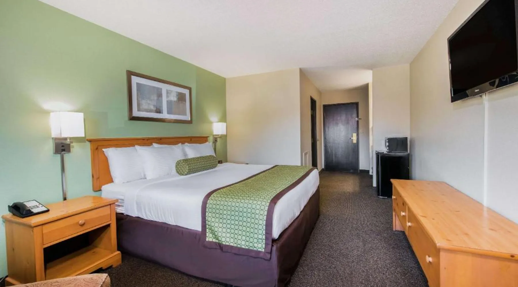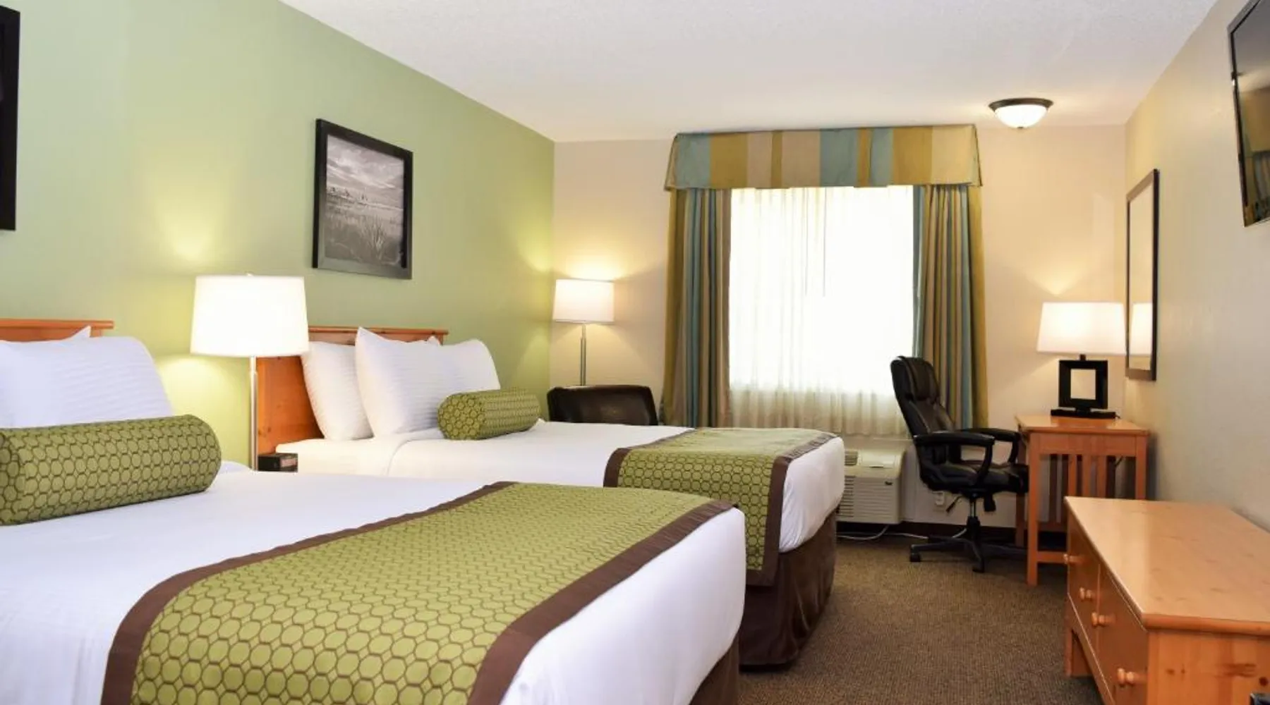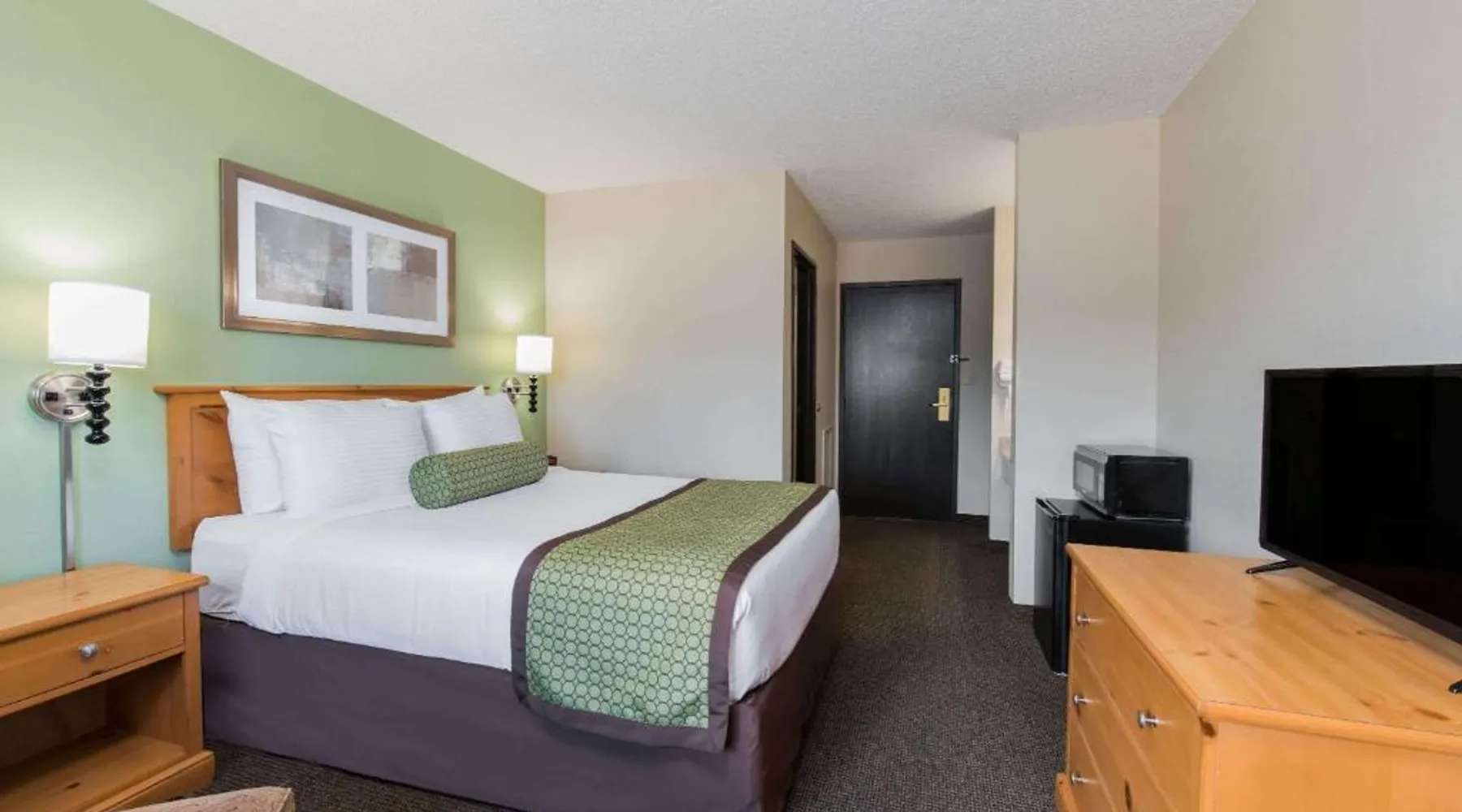 Comfortable Accommodations: Baymont by Wyndham Pierre in Pierre offers family rooms with air-conditioning, private bathrooms, and free WiFi. Each room includes a tea and coffee maker, hairdryer, refrigerator, work desk, and TV. Convenient Facilities: Guests benefit from a 24-hour front desk, housekeeping service, electric vehicle charging station, business area, and free on-site parking. Additional amenities include a seating area, bath or shower, interconnected rooms, and sofa. Dining Options: A continental and American breakfast is available each morning. The hotel also provides free toiletries and a microwave for added convenience. Prime Location: Located 3.7 mi from Pierre Regional Airport, the hotel is a 19-minute walk from the South Dakota State Capitol. Guests appreciate the room cleanliness, attentive staff, and convenient location. Featuring free toiletries, this suite includes a private bathroom with a bath or a shower and a hairdryer. The spacious air-conditioned suite features a flat-screen TV with cable channels, a tea and coffee maker, a seating area and a wardrobe. The unit has 2 beds.