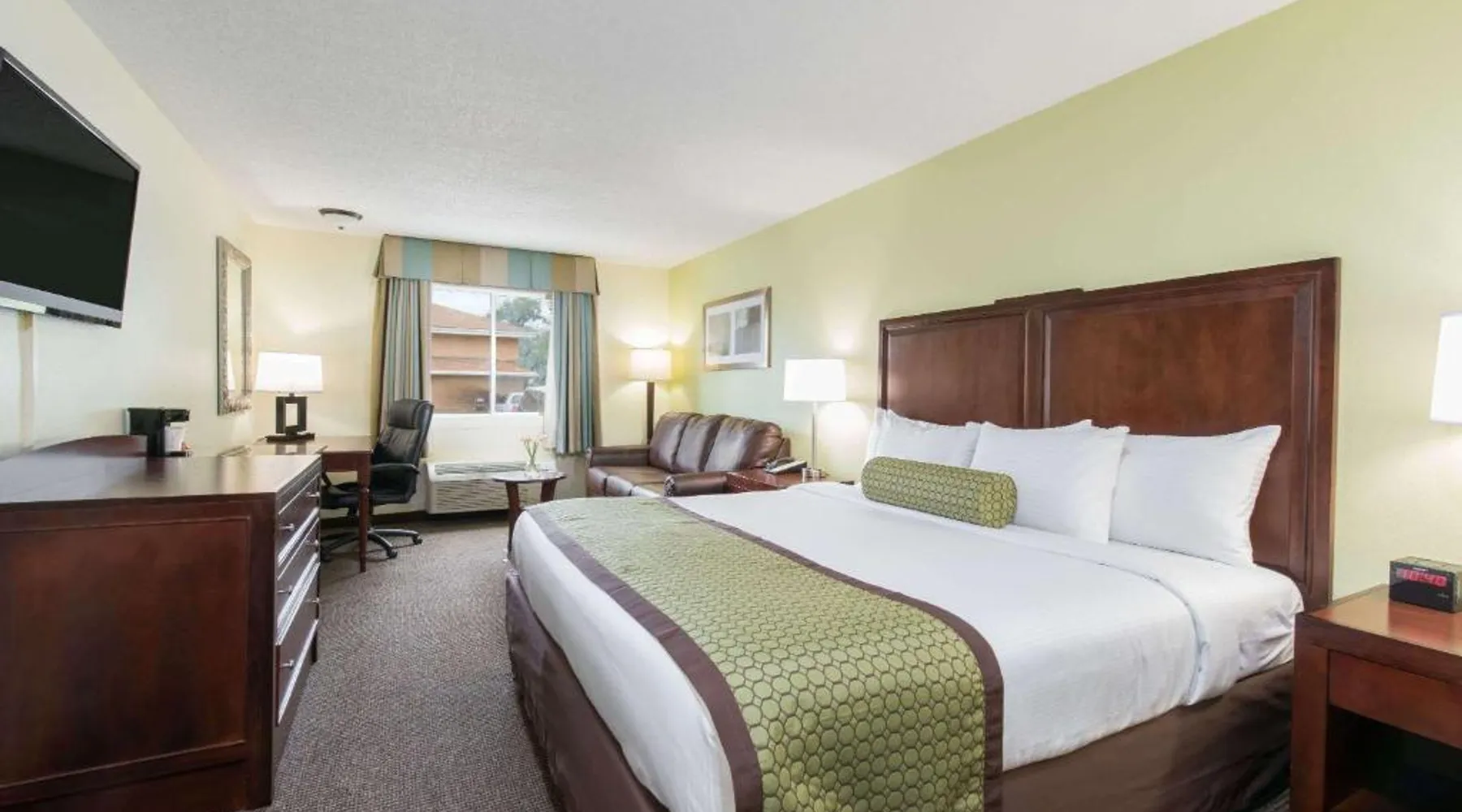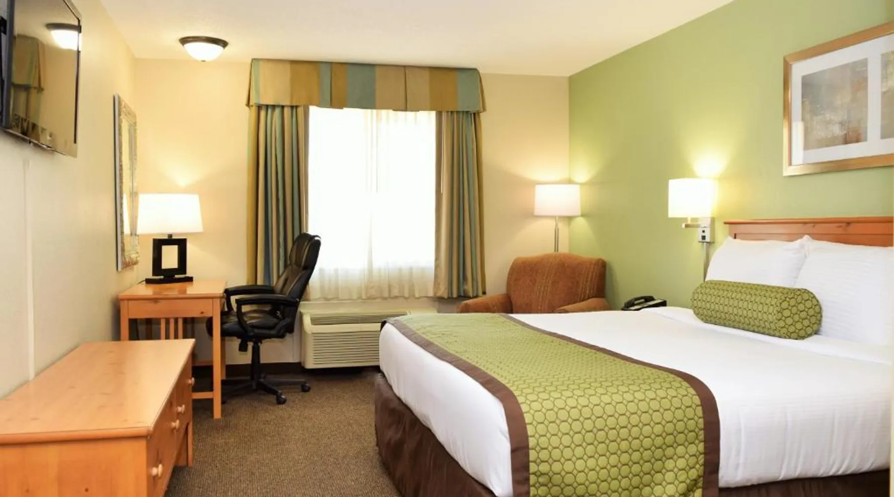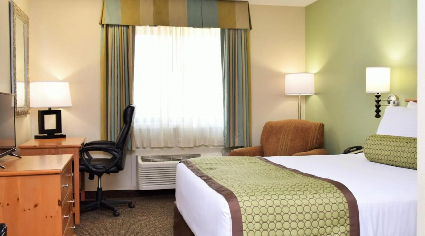 Comfortable Accommodations: Baymont by Wyndham Pierre in Pierre offers family rooms with air-conditioning, private bathrooms, and free WiFi. Each room includes a tea and coffee maker, hairdryer, refrigerator, work desk, and TV. Convenient Facilities: Guests benefit from a 24-hour front desk, housekeeping service, electric vehicle charging station, business area, and free on-site parking. Additional amenities include a seating area, bath or shower, interconnected rooms, and sofa. Dining Options: A continental and American breakfast is available each morning. The hotel also provides free toiletries and a microwave for added convenience. Prime Location: Located 3.7 mi from Pierre Regional Airport, the hotel is a 19-minute walk from the South Dakota State Capitol. Guests appreciate the room cleanliness, attentive staff, and convenient location. Featuring free toiletries, this suite includes a private bathroom with a bath or a shower and a hairdryer. The spacious air-conditioned suite features a flat-screen TV with cable channels, a tea and coffee maker, a seating area and a wardrobe. The unit has 2 beds.