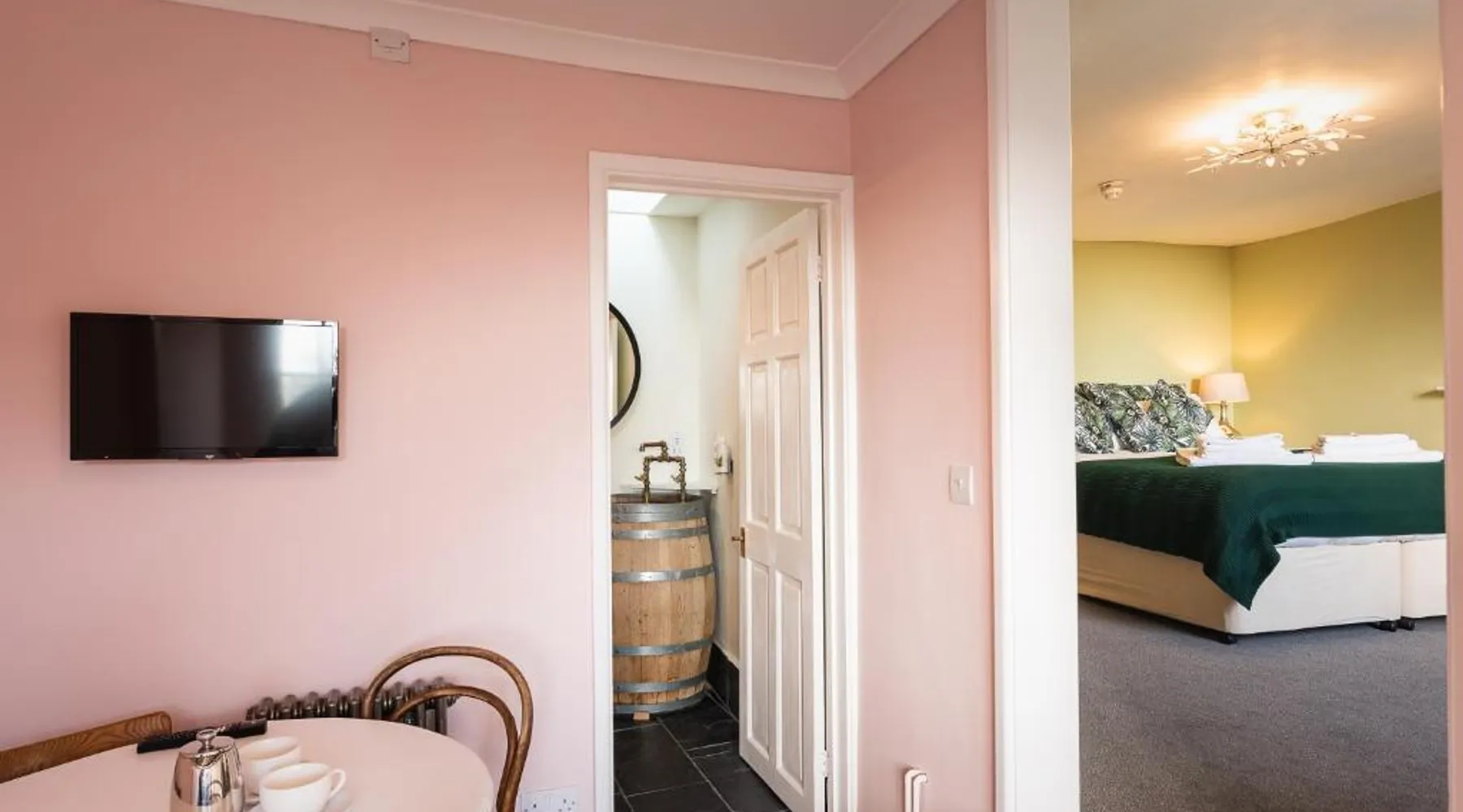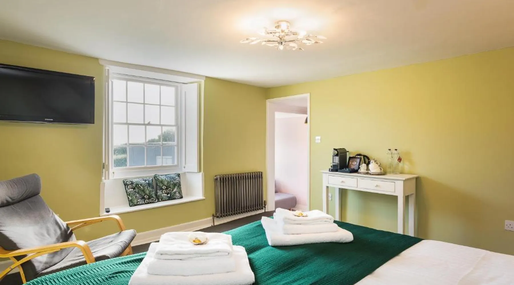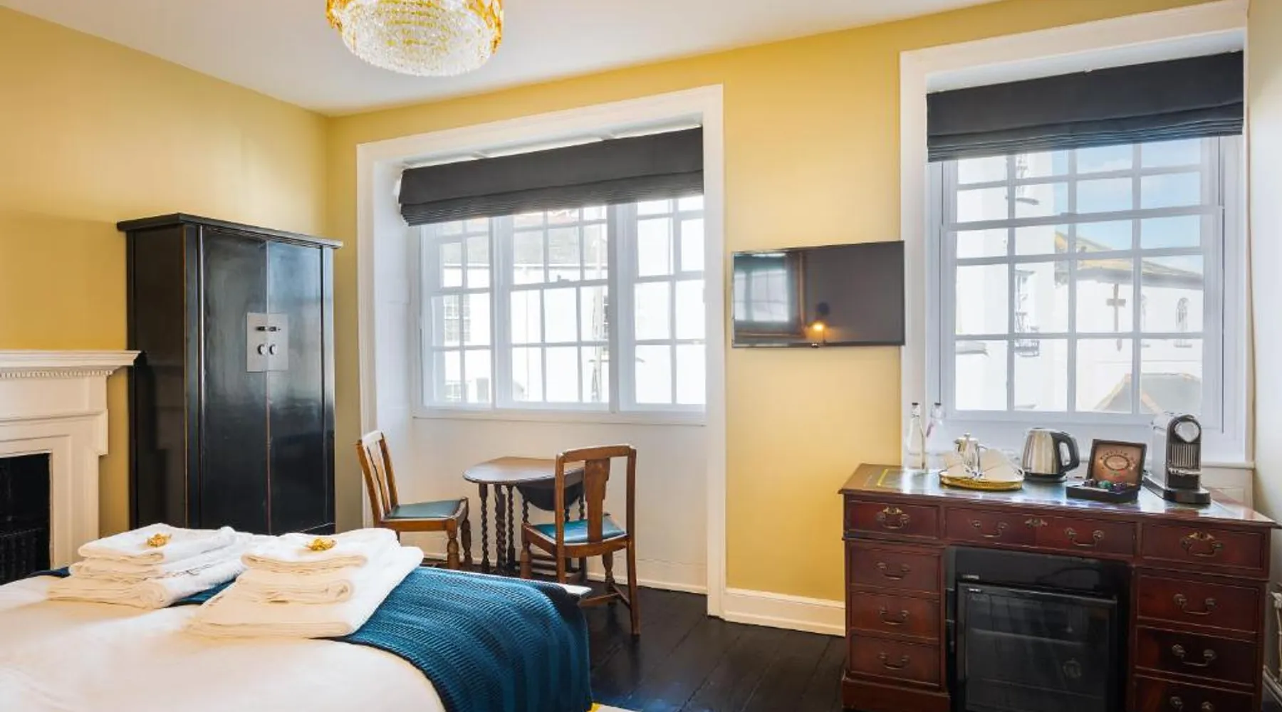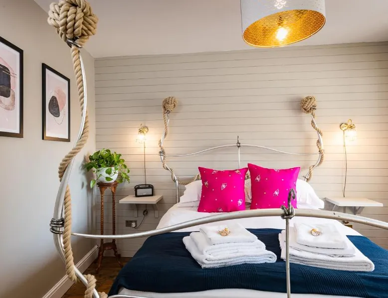 Comfortable Accommodations: Lyme 1 Hotel in Lyme Regis offers family rooms with private bathrooms, bathrobes, and free WiFi. Each room includes a tea and coffee maker, hairdryer, refrigerator, and free toiletries. Convenient Facilities: Guests can relax on the terrace or enjoy breakfast in the room with continental options. Additional amenities include a fireplace, dining table, sofa bed, and work desk. Prime Location: Located 28 mi from Exeter International Airport, the hotel is a short walk from Lyme Regis Front Beach and 984 feet from Dinosaurland Fossil Museum. Nearby attractions include Golden Cap and Portland Castle. Guest Satisfaction: Highly rated for its breakfast, convenient location, and room comfort, Lyme 1 Hotel ensures a pleasant stay for all visitors. Guests will have a special experience as this suite offers a fireplace. The suite features 1 bedroom and 1 bathroom with a walk-in shower and free toiletries. This suite has a tea and coffee maker, a seating area, flat-screen TV, as well as chocolate for guests. The unit offers 1 bed.