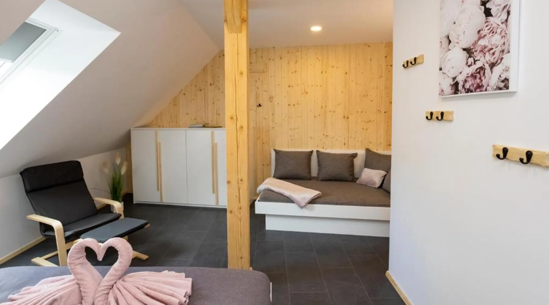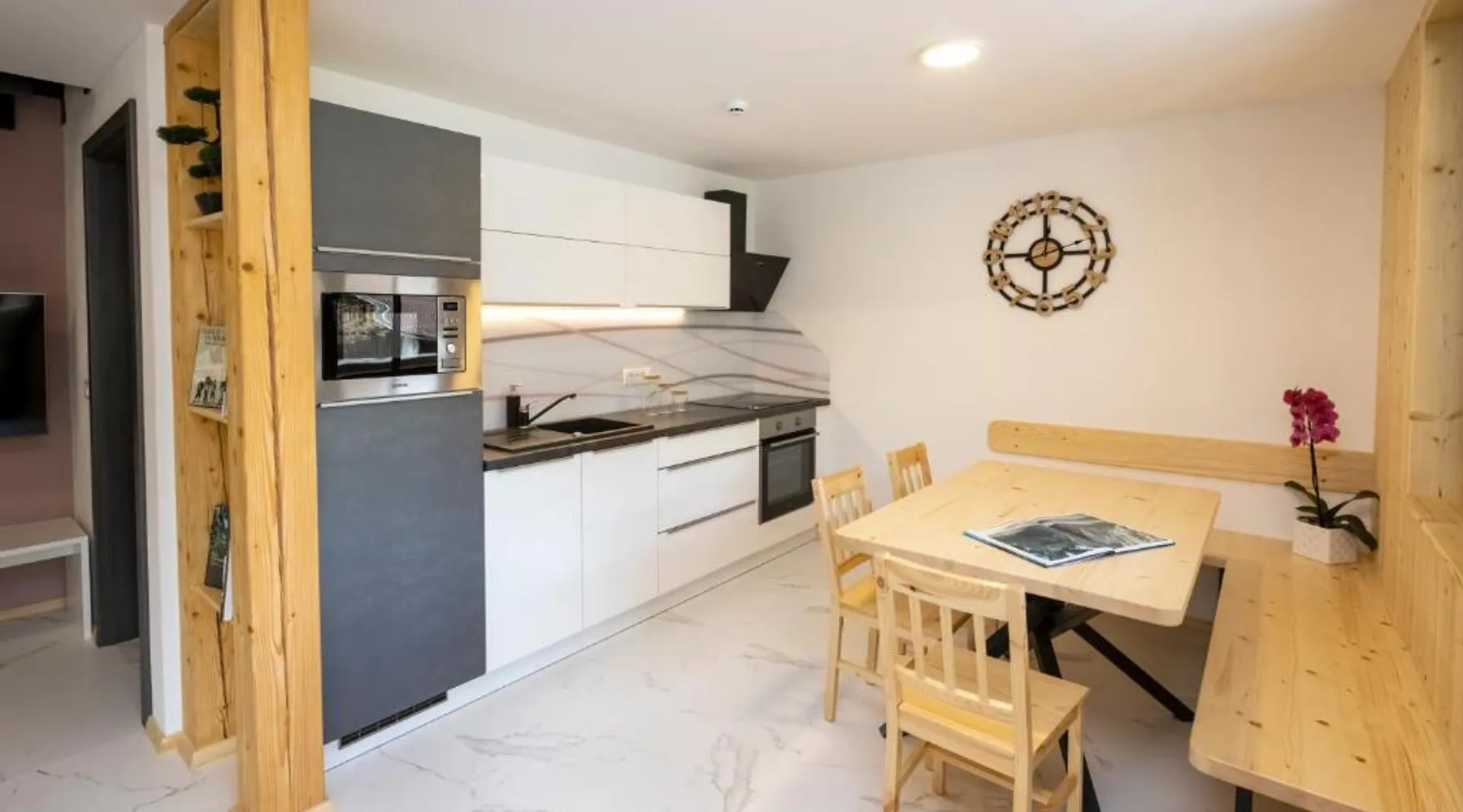 Comfortable Accommodations: Pr `Agotnik Apartments & Rooms Bohinj in Bohinjsko jezero offers a 4-star apartment with a sun terrace, garden, bar, and free WiFi. Private check-in and check-out services ensure a smooth arrival and departure. Modern Amenities: The apartment features air-conditioning, a balcony with mountain views, and a fully equipped kitchen. Additional amenities include a washing machine, private bathroom, and streaming services. Convenient Location: Located 37 mi from Ljubljana Jože Pučnik Airport, the property is near attractions such as Aquapark & Wellness Bohinj (5 mi) and Bled Castle (17 mi). Free on-site private parking is available. Guest Satisfaction: Guests highly rate the lakes, room cleanliness, and fully equipped kitchen, making it a preferred choice for a comfortable stay. This apartment includes 1 living room, 1 separate bedroom and 1 bathroom with a walk-in shower and free toiletries. Guests will find a stovetop, a refrigerator, a dishwasher and kitchenware in the well-equipped kitchen. The apartment also features a barbecue. The air-conditioned apartment offers a flat-screen TV with streaming services, a washing machine, a tea and coffee maker, a seating area as well as garden views. The unit has 2 beds.