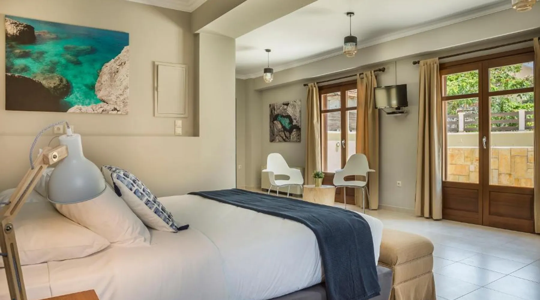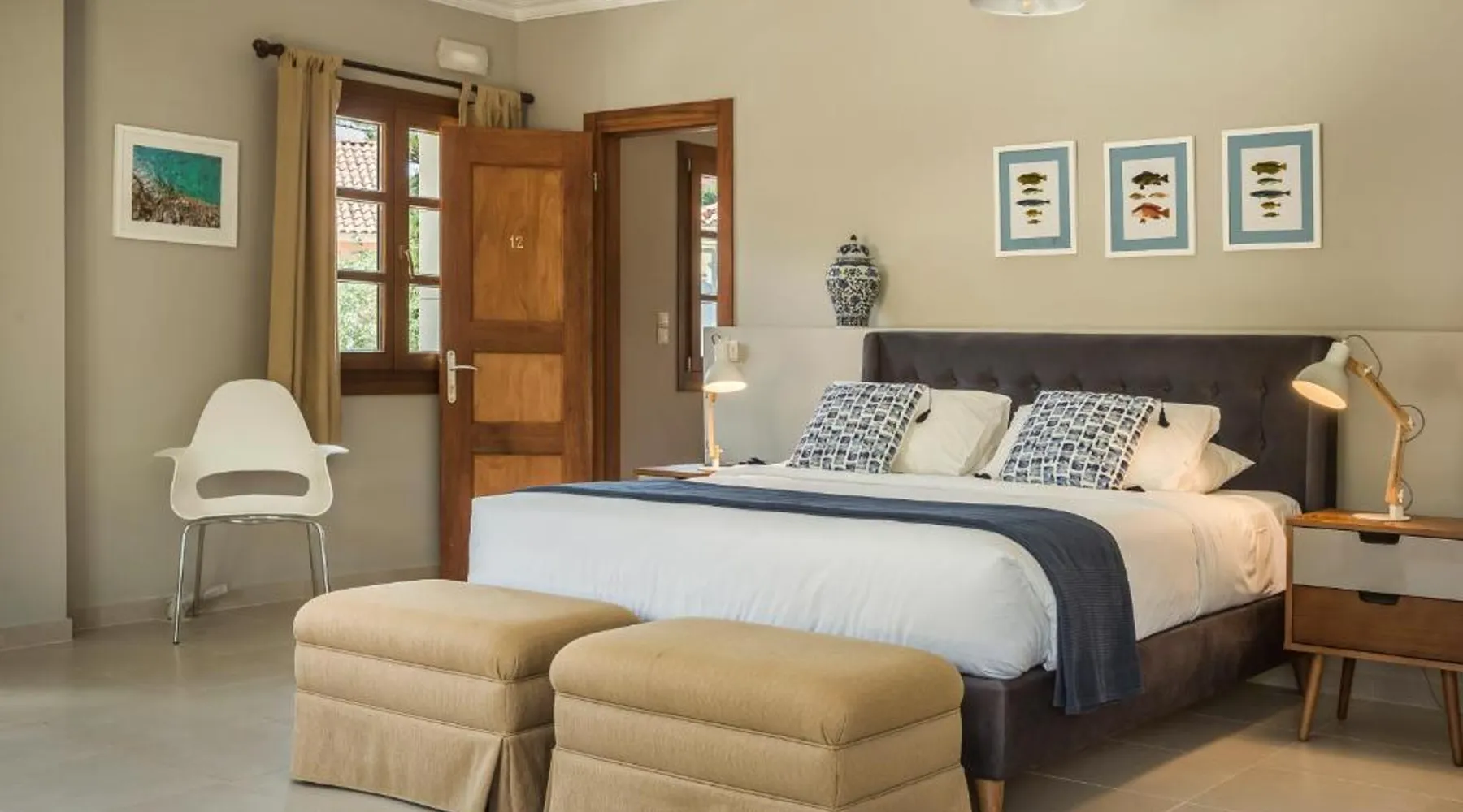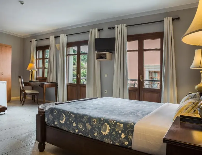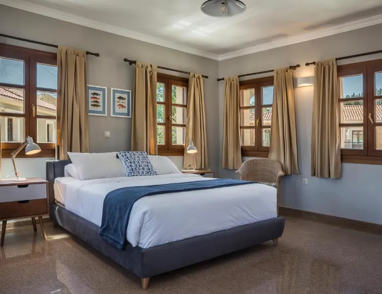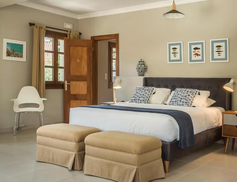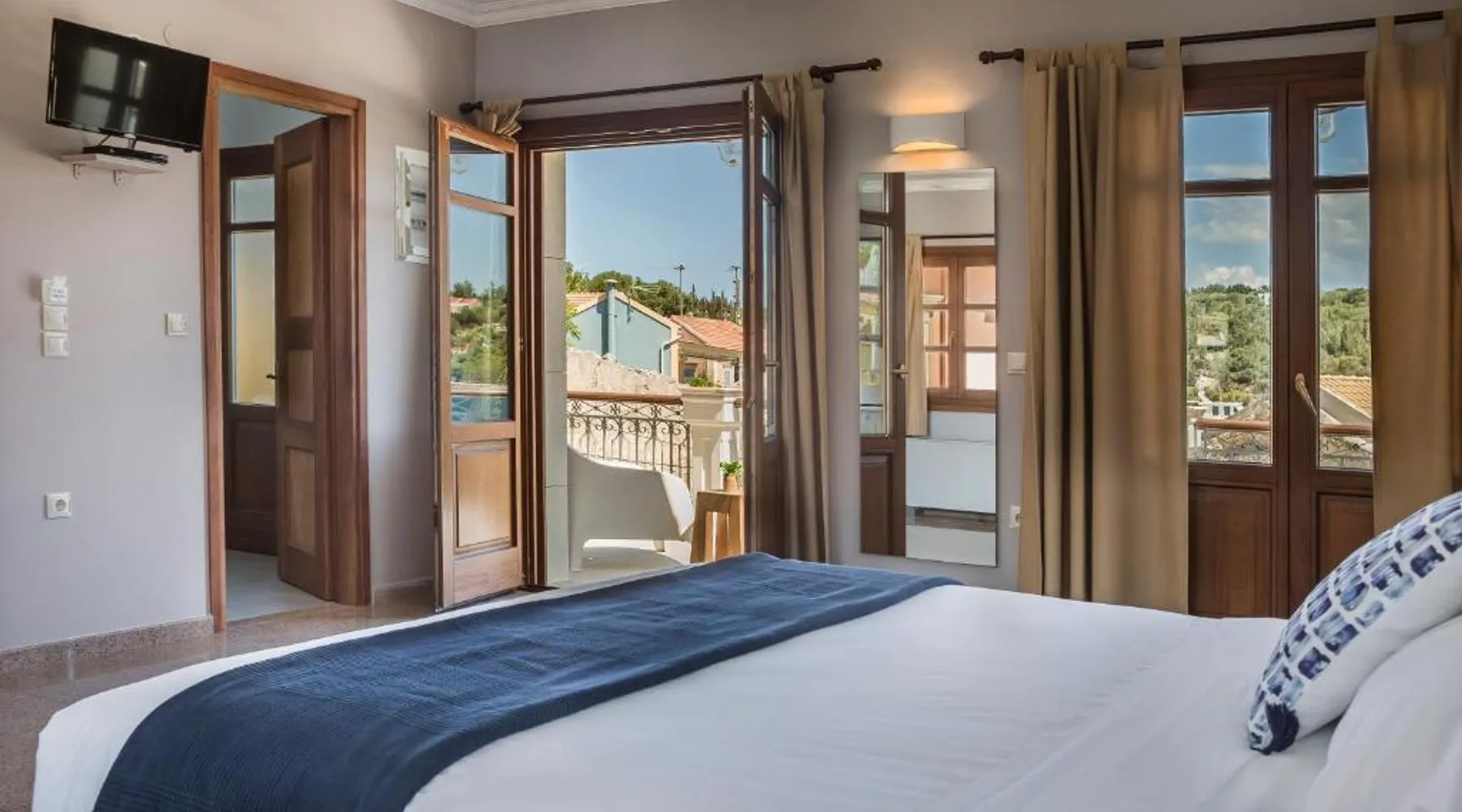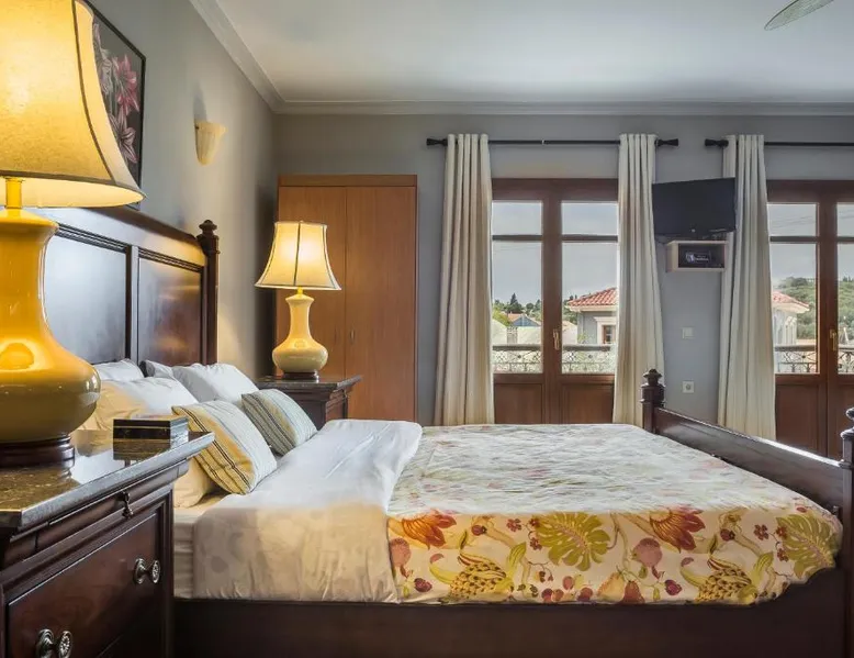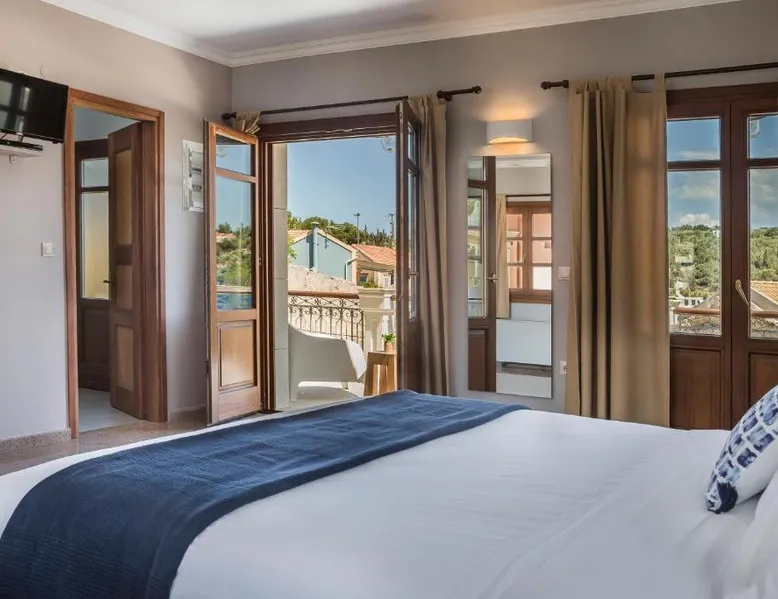 The boutique-style Balhambra Suites is centrally located in Fiskardo surrounded by olive trees and lavender bushes, featuring a charming courtyard with a fountain. It offers self-catering suites with colonial decor and furnished balconies. Balhambra suites are uniquely decorated featuring elegant, dark-colored wooden furniture. They enjoy harbor or courtyard views and they all have a living area. Facilities include a flat-screen satellite TV, DVD player and free toiletries. Some are also equipped with a coffee machine. Right next to the complex, there is a café and a super market, where you can buy your daily essentials. The nearest beach is at 328 feet, while the free public parking can be found at 230 feet. Free WiFi is provided throughout. Spacious, colonial-style suite with a furnished balcony overlooking the courtyard. It enjoys free Wi-Fi and includes: a kitchenette, a living area, a flat-screen satellite TV and a DVD player. Guests will find free toiletries.