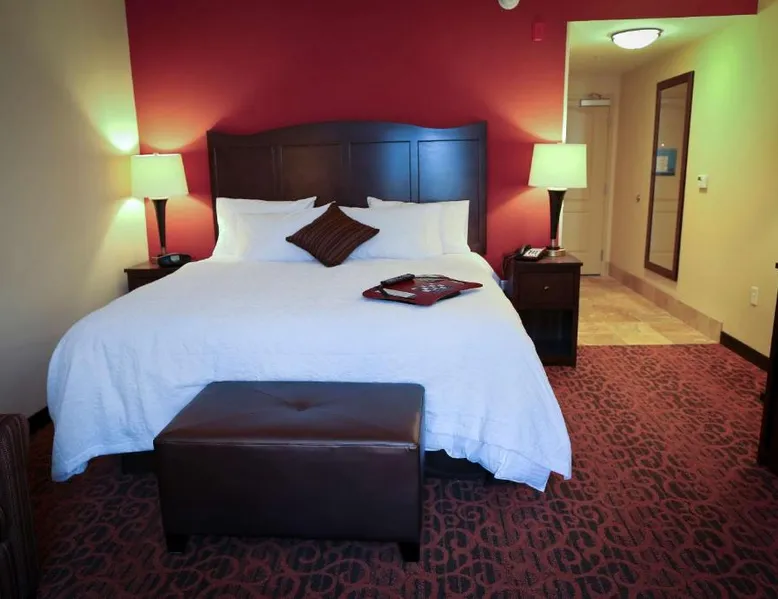 An indoor pool is available for guest relaxation at the Hampton Inn Union City. Paramount's Great America is 25 minutes' drive from the property. Guest rooms offer free Wi-Fi. A flat-screen cable TV is provided in each air-conditioned guest room at the Hampton Inn. A microwave, small fridge, and coffee-making facilities are also included. A 24-hour fitness center and business center are featured for guest use at the hotel. Coffee is available 24-hours a day in the lobby and a 24-hour mini market is also available for guest convenience. Oakland International Airport is less than 20 minutes' drive. Pepsi Distribution Center is 3.1 mi away. Indoor skydiving (iFly) is located behind the property. This mobility and hearing accessible room features 1 king Clean and fresh Hampton Bed. The bathroom is equipped with an accessible bath tub. The room includes a visual alarm and notification devices for the doorbell, or door knock and incoming phone calls.