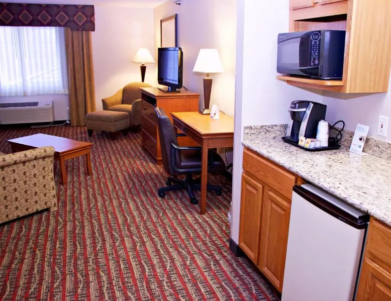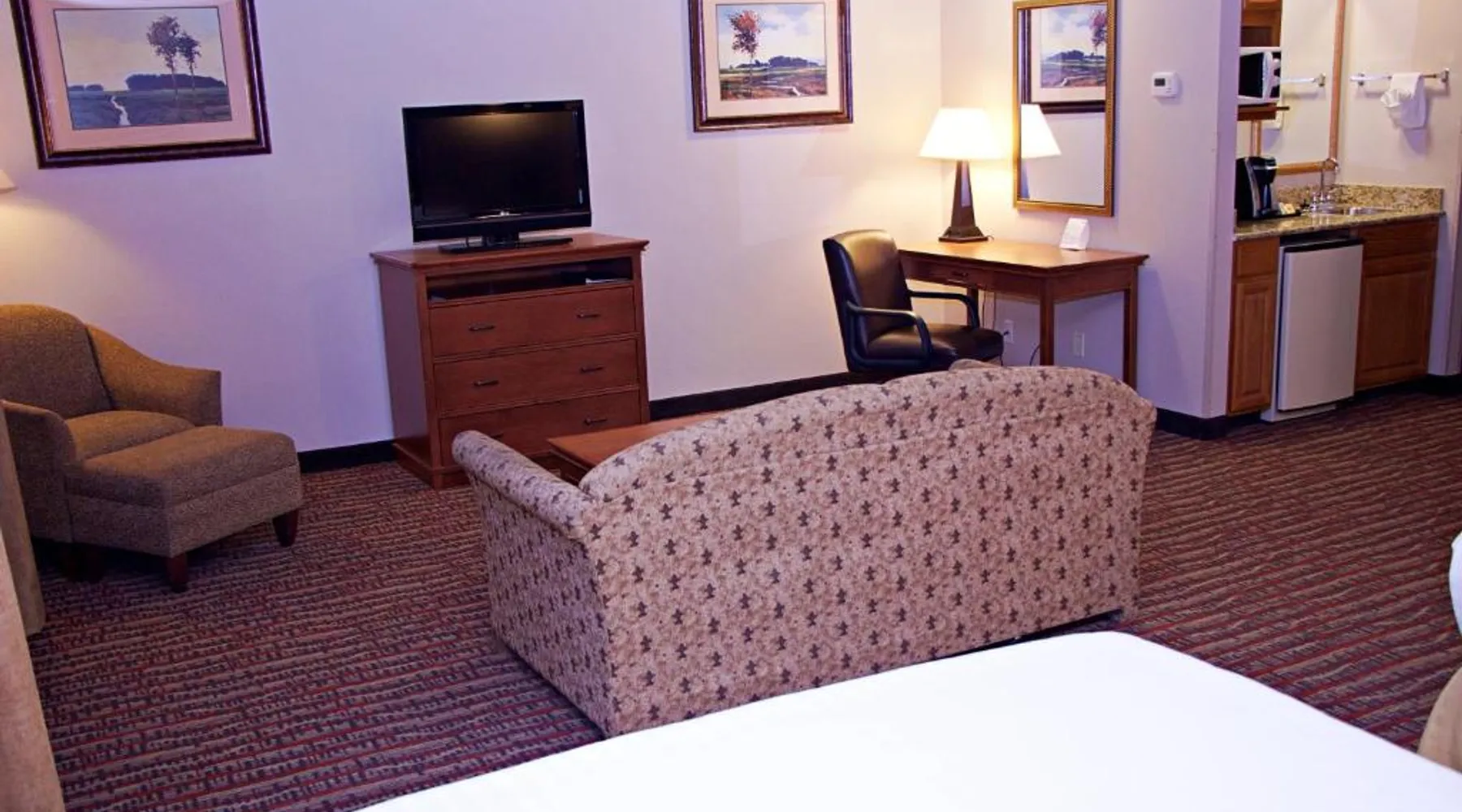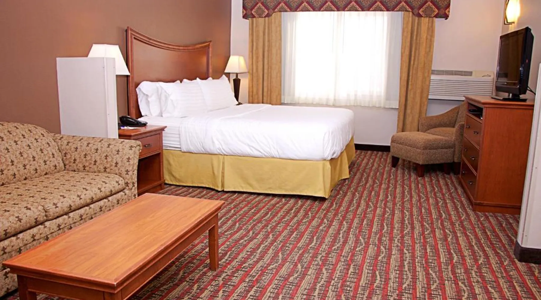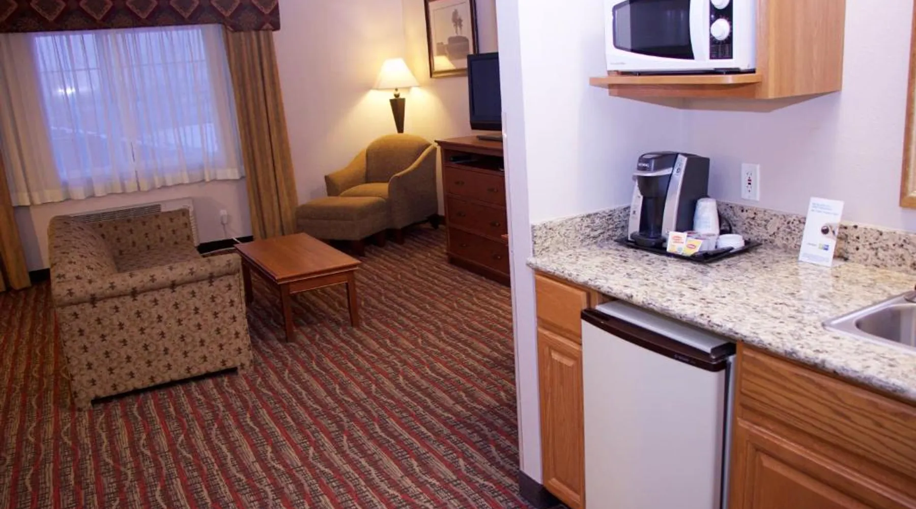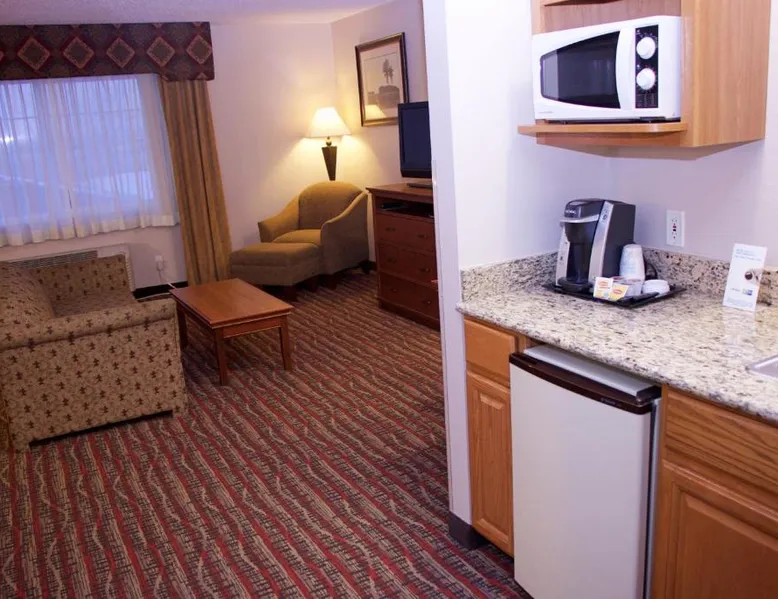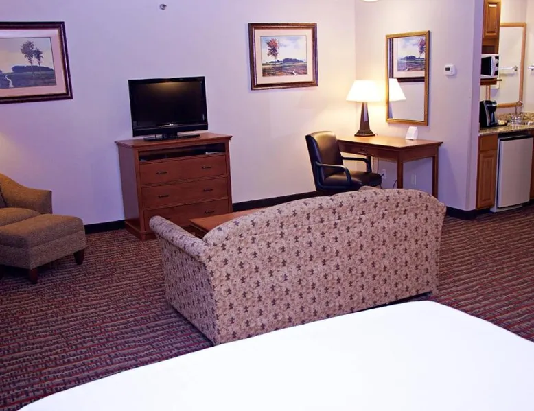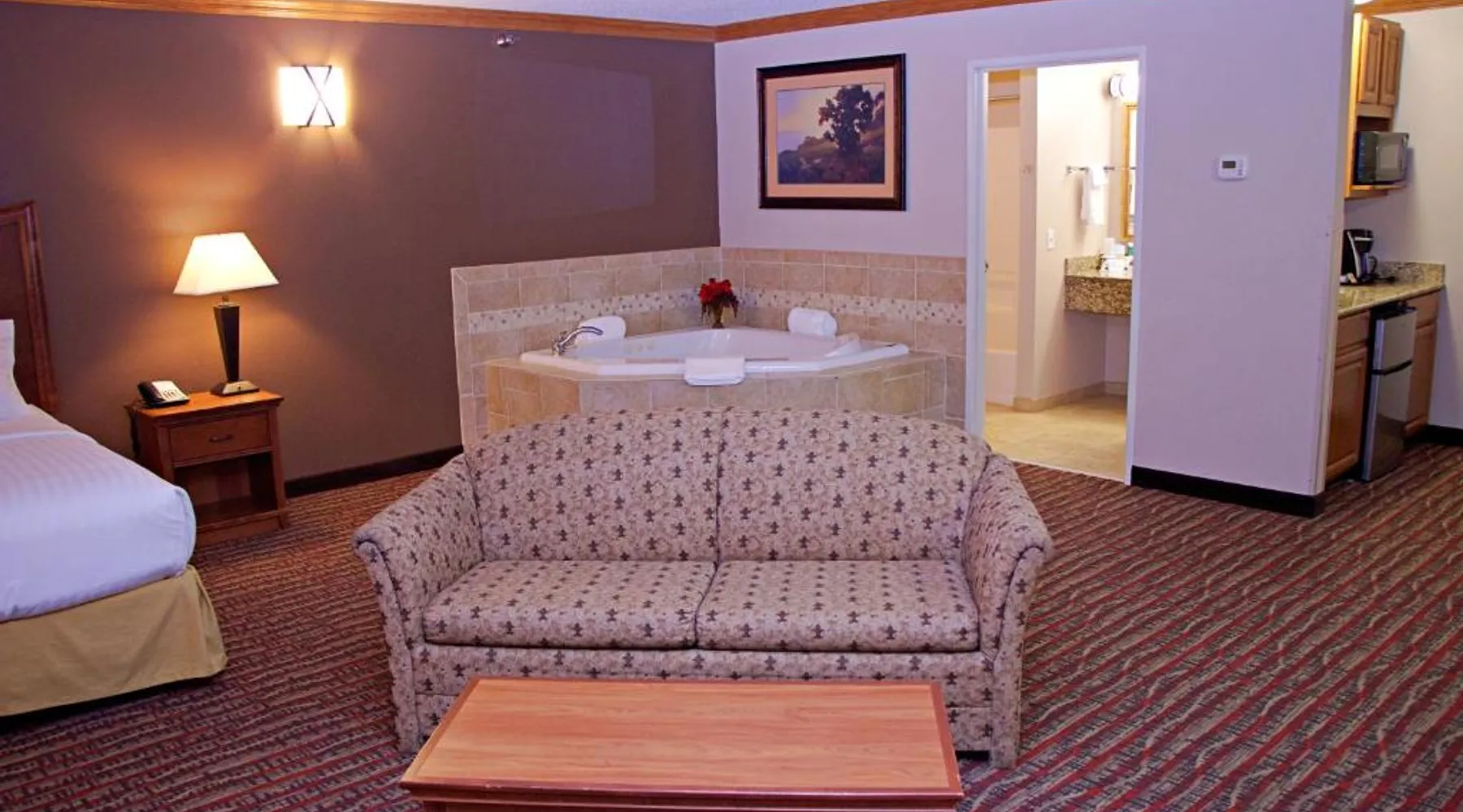 Comfortable Accommodations: Holiday Inn Express Hotel & Suites Pierre-Fort Pierre by IHG in Fort Pierre offers family rooms with air-conditioning, private bathrooms, and free WiFi. Each room includes a work desk, seating area, and TV. Leisure Facilities: Guests can enjoy an indoor swimming pool, fitness room, hot tub, and 24-hour front desk. Additional amenities include a elevator, housekeeping service, room service, and free on-site parking. Convenient Location: Located 4.3 mi from Pierre Regional Airport and 2.5 mi from the South Dakota State Capitol, the hotel provides easy access to local attractions. Guests appreciate the room cleanliness, comfort, and convenient location. A 32-inch flat-screen cable TV with HBO and a sofa bed are included in this suite, along with a coffeemaker and hairdryer. A microwave and fridge are also provided.