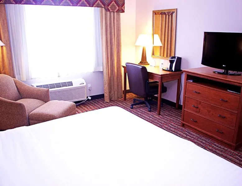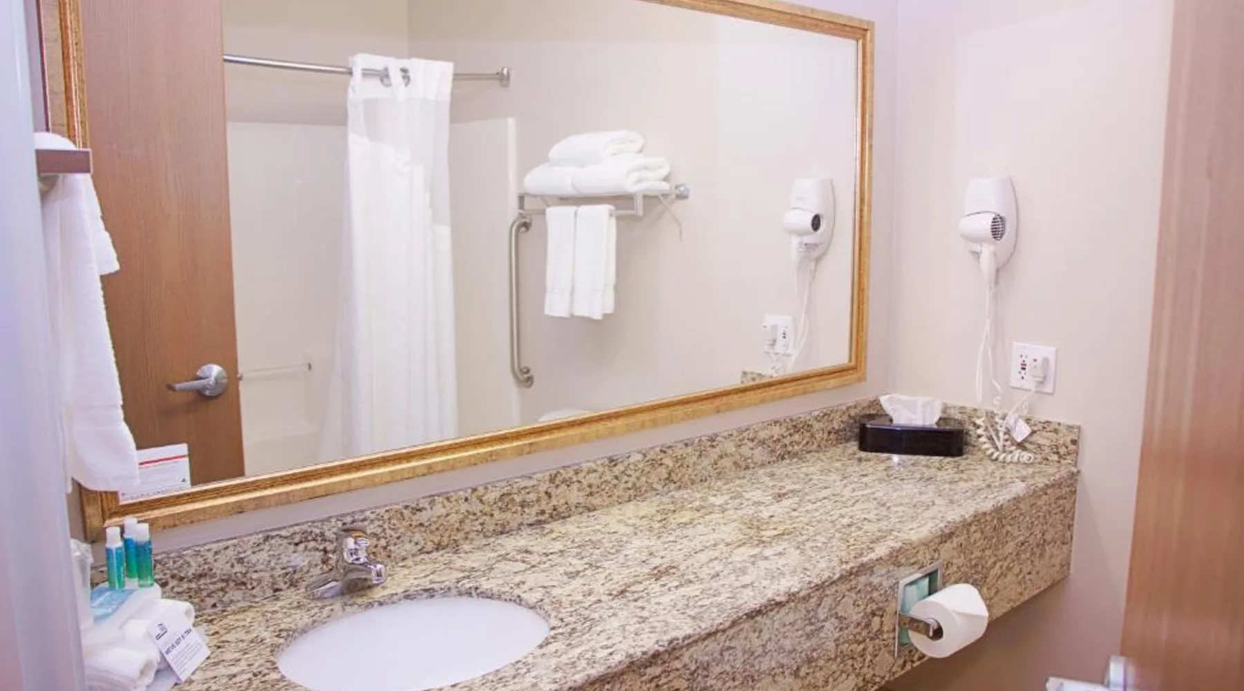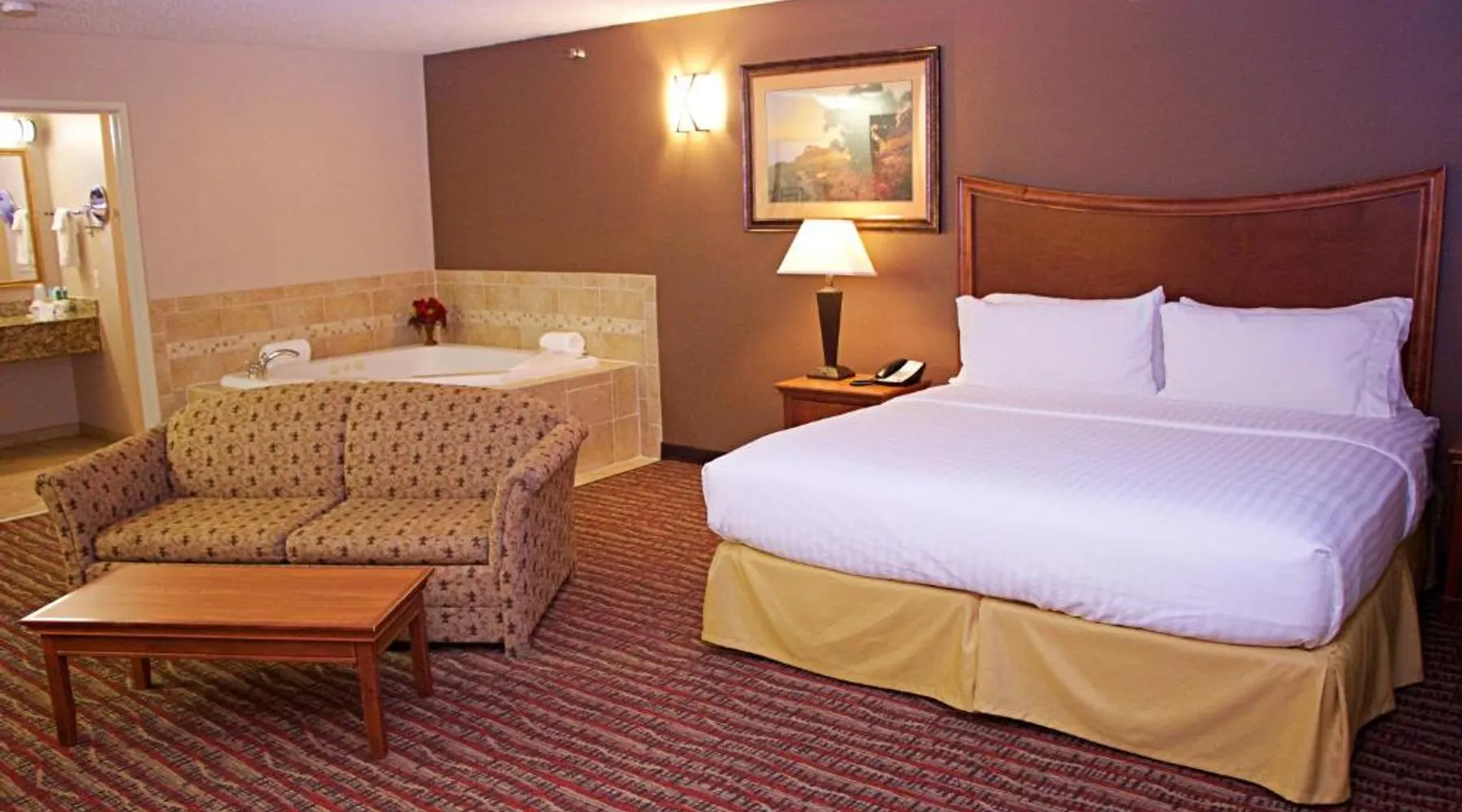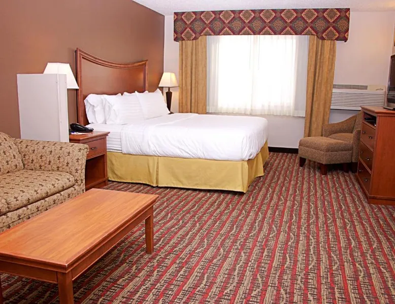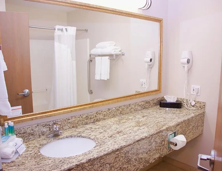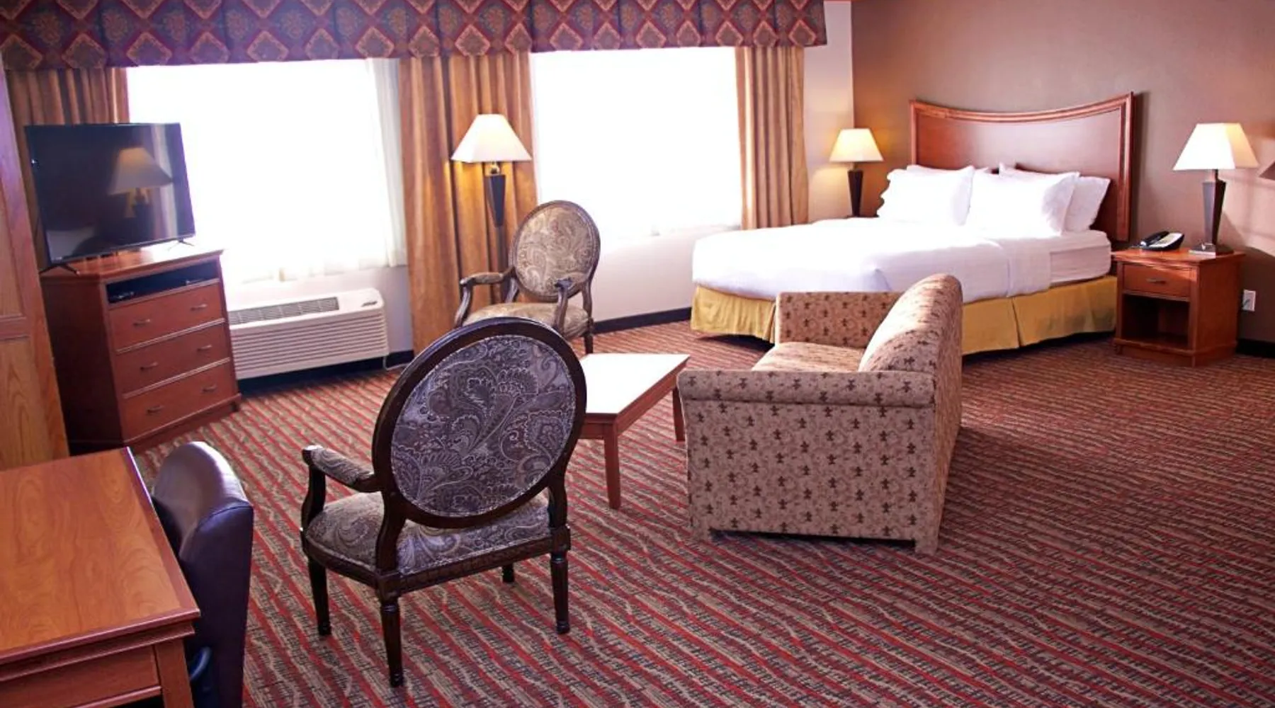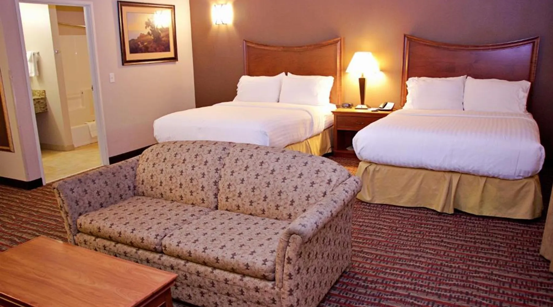 Comfortable Accommodations: Holiday Inn Express Hotel & Suites Pierre-Fort Pierre by IHG in Fort Pierre offers family rooms with air-conditioning, private bathrooms, and free WiFi. Each room includes a work desk, seating area, and TV. Leisure Facilities: Guests can enjoy an indoor swimming pool, fitness room, hot tub, and 24-hour front desk. Additional amenities include a elevator, housekeeping service, room service, and free on-site parking. Convenient Location: Located 4.3 mi from Pierre Regional Airport and 2.5 mi from the South Dakota State Capitol, the hotel provides easy access to local attractions. Guests appreciate the room cleanliness, comfort, and convenient location. A 32-inch flat-screen cable TV with HBO and a sofa bed are included in this suite, along with a coffeemaker and hairdryer. A microwave and fridge are also provided.
