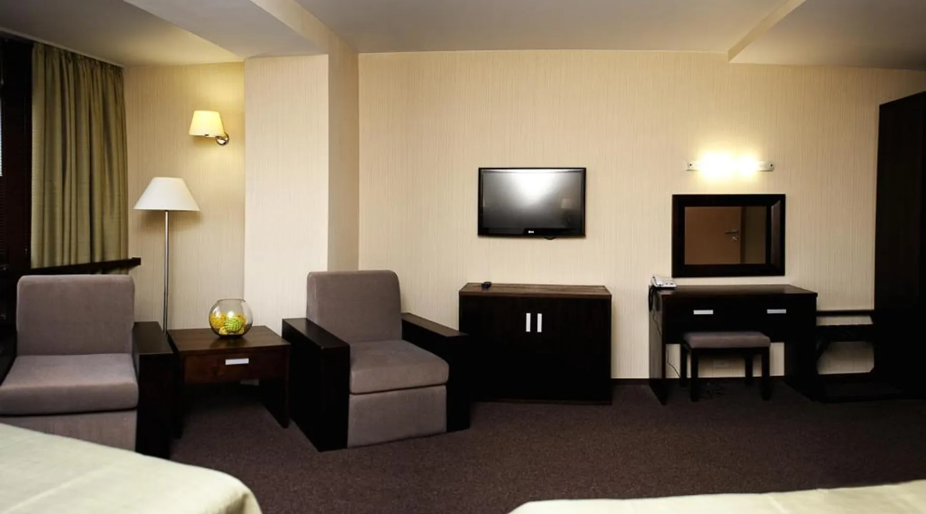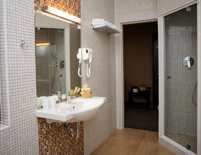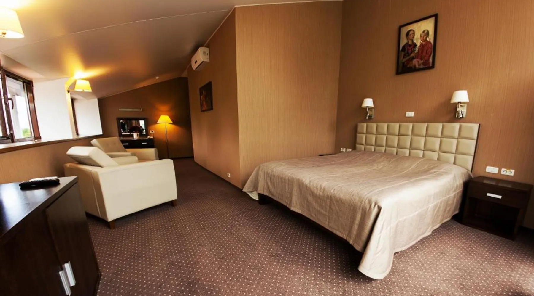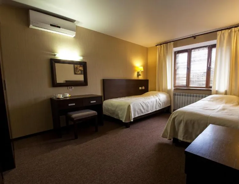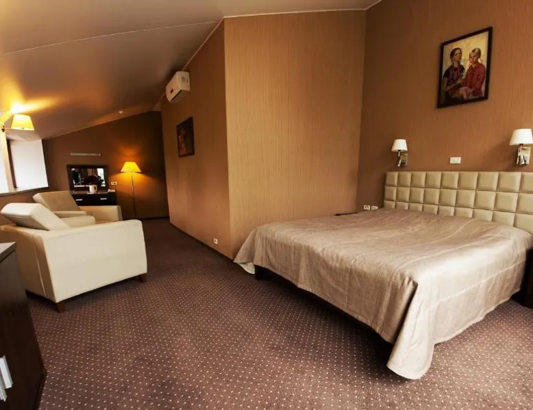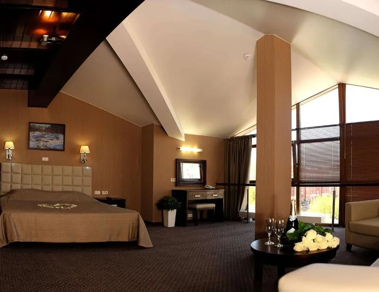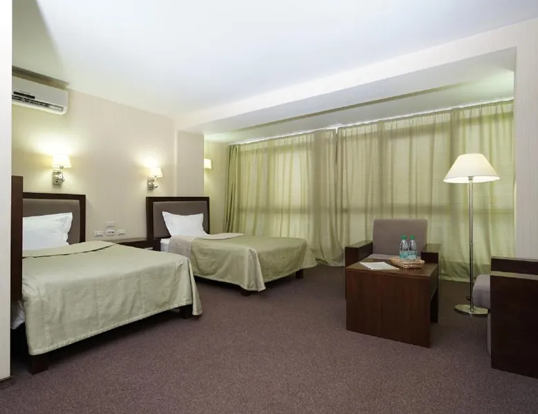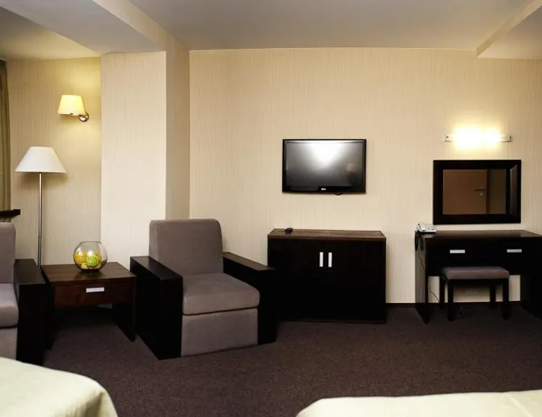 Comfortable Accommodations: Hotel Kirov in Kirov offers family rooms with balconies, private bathrooms, and modern amenities. Each room includes a work desk, free toiletries, and a TV. Exceptional Facilities: Guests can enjoy a sauna, fitness center, terrace, restaurant, and bar. Free WiFi is available throughout the property. Additional services include private check-in and check-out, a 24-hour front desk, and a hammam. Dining Experience: The family-friendly restaurant serves European cuisine with lunch and dinner options. The ambiance is traditional, modern, and romantic, catering to diverse preferences. Prime Location: Located 11 mi from Pobedilovo Airport, the hotel is an 18-minute walk from Kirov Park. Nearby attractions include Aleksandrovsky Church (2.5 mi) and Teatralnaya Square (3.1 mi). Spacious room with a fridge.