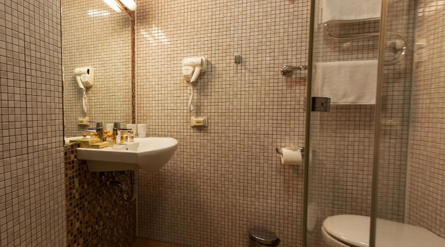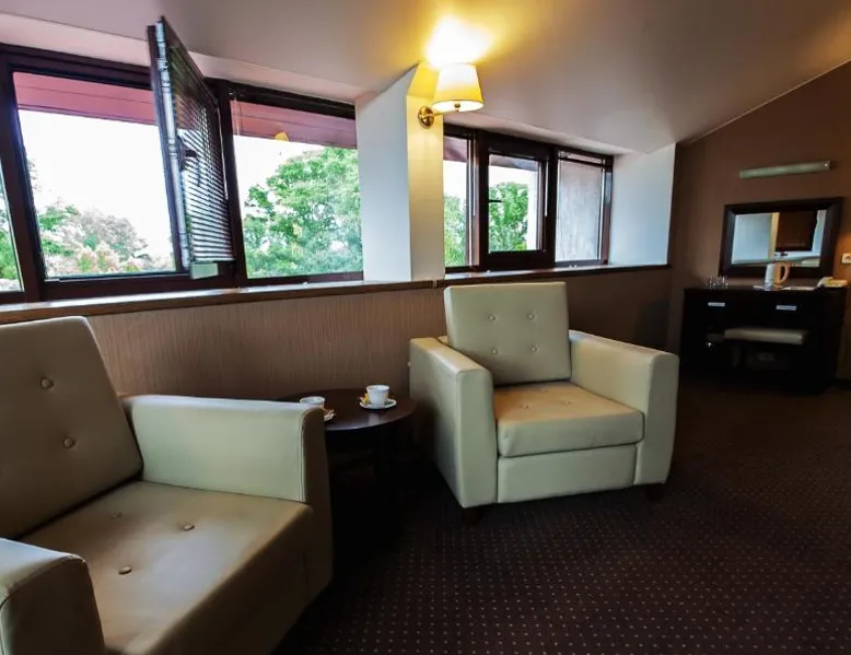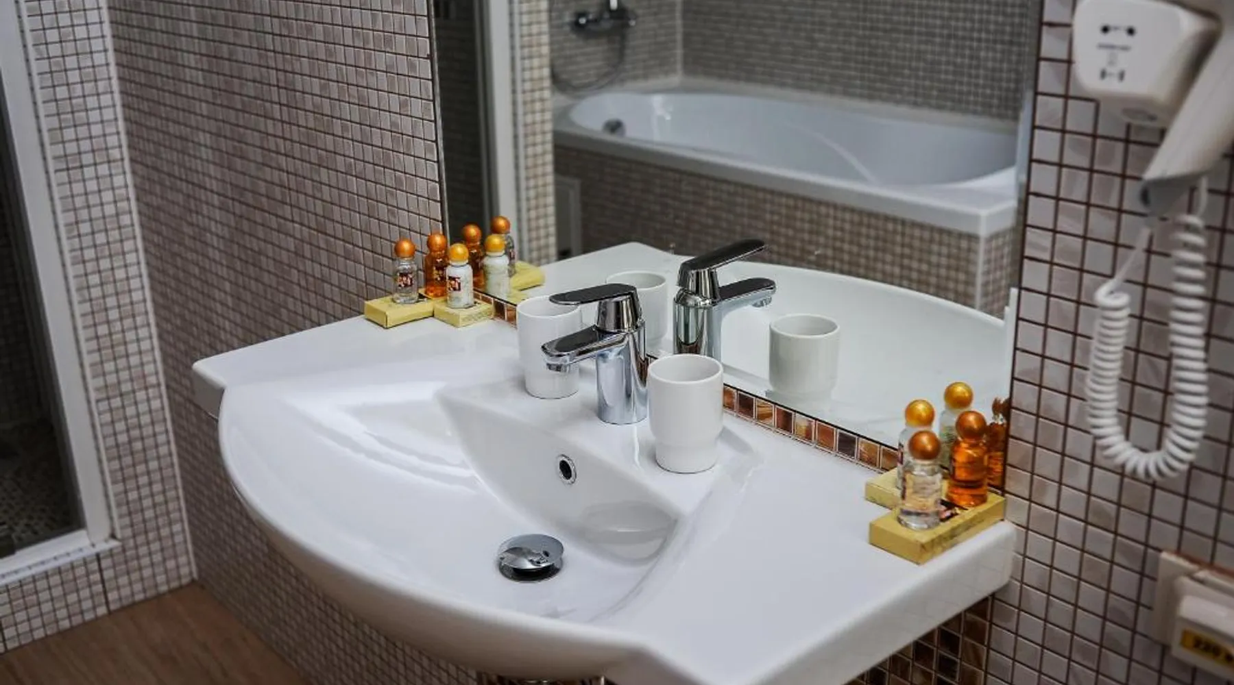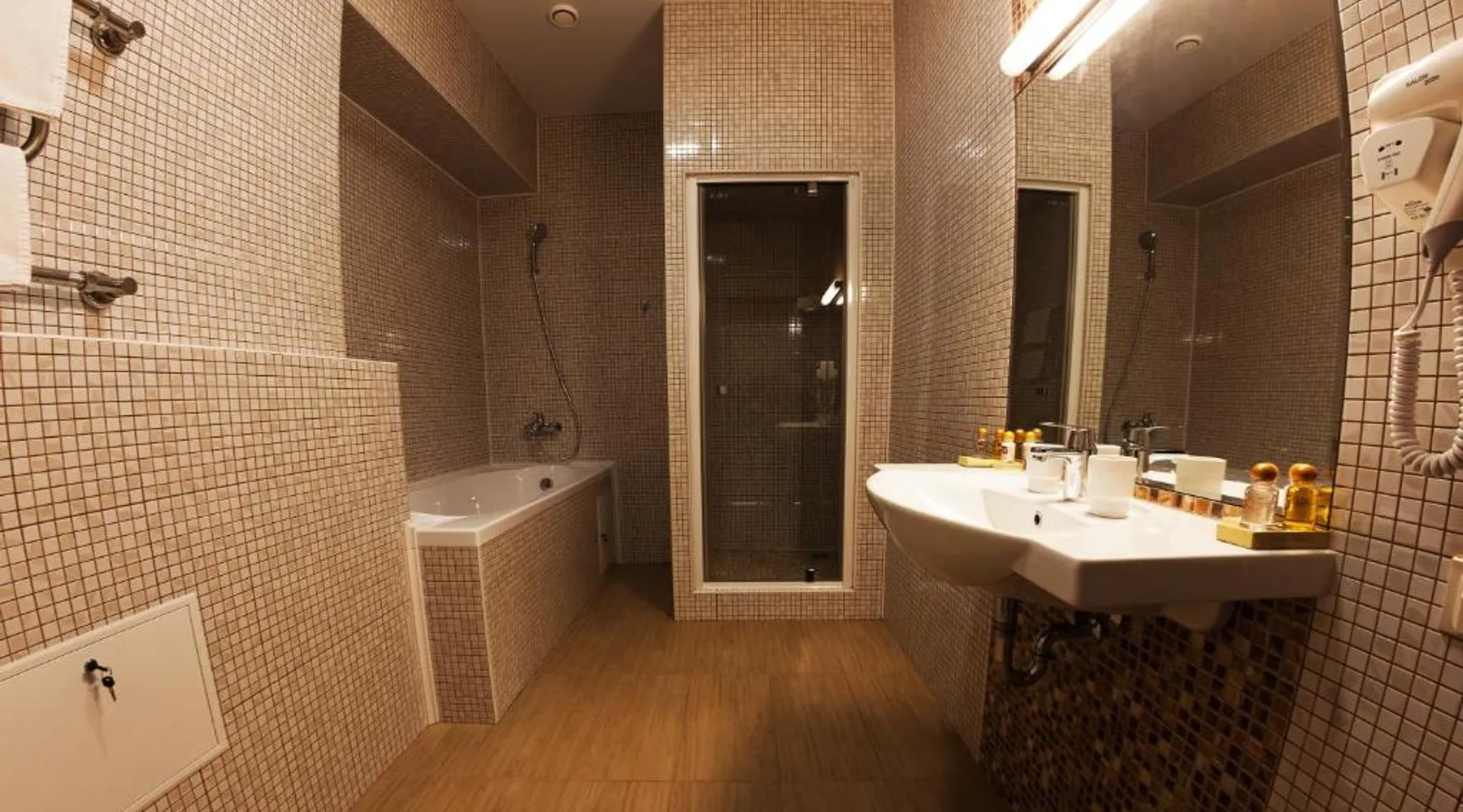 Comfortable Accommodations: Hotel Kirov in Kirov offers family rooms with balconies, private bathrooms, and modern amenities. Each room includes a work desk, free toiletries, and a TV. Exceptional Facilities: Guests can enjoy a sauna, fitness center, terrace, restaurant, and bar. Free WiFi is available throughout the property. Additional services include private check-in and check-out, a 24-hour front desk, and a hammam. Dining Experience: The family-friendly restaurant serves European cuisine with lunch and dinner options. The ambiance is traditional, modern, and romantic, catering to diverse preferences. Prime Location: Located 11 mi from Pobedilovo Airport, the hotel is an 18-minute walk from Kirov Park. Nearby attractions include Aleksandrovsky Church (2.5 mi) and Teatralnaya Square (3.1 mi). Spacious room with a fridge.