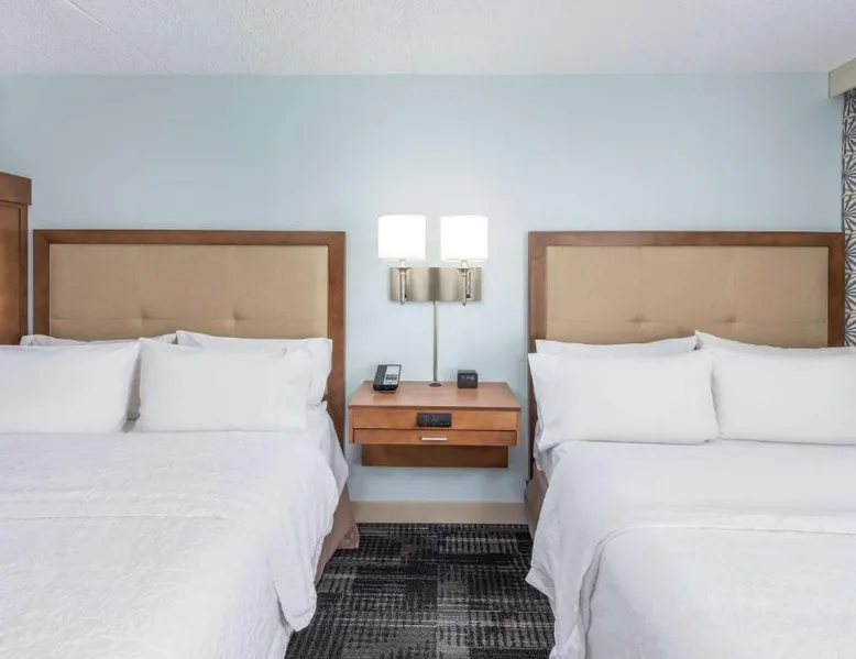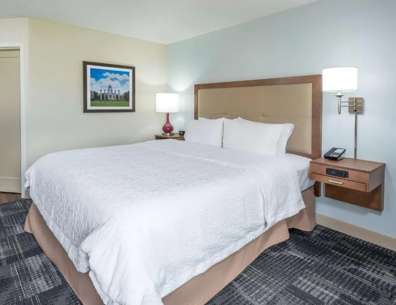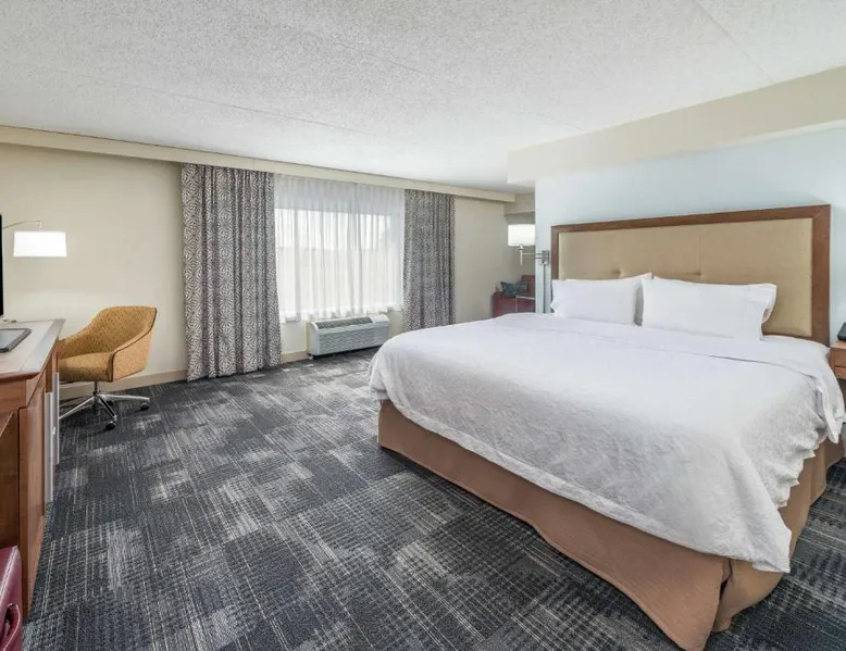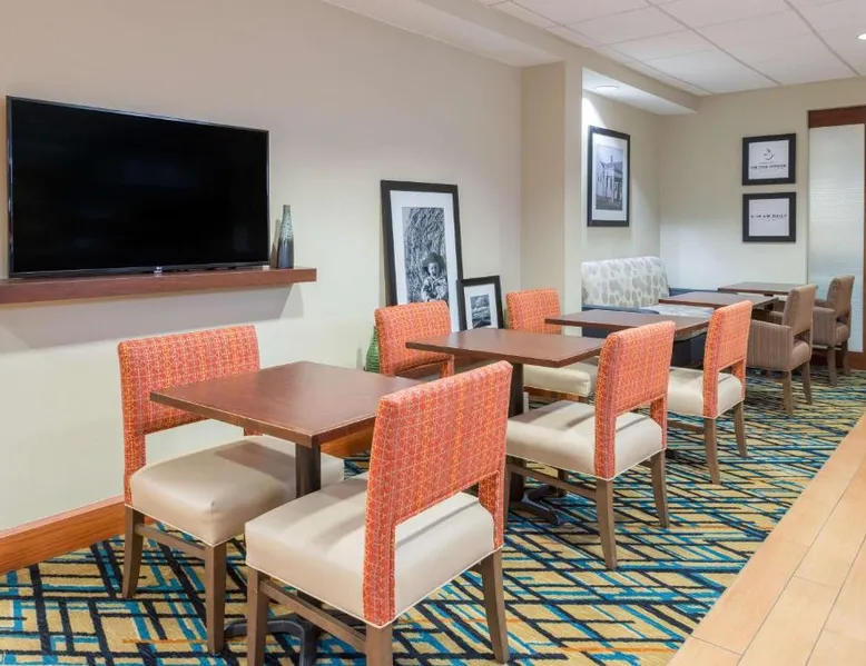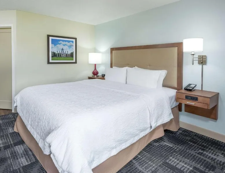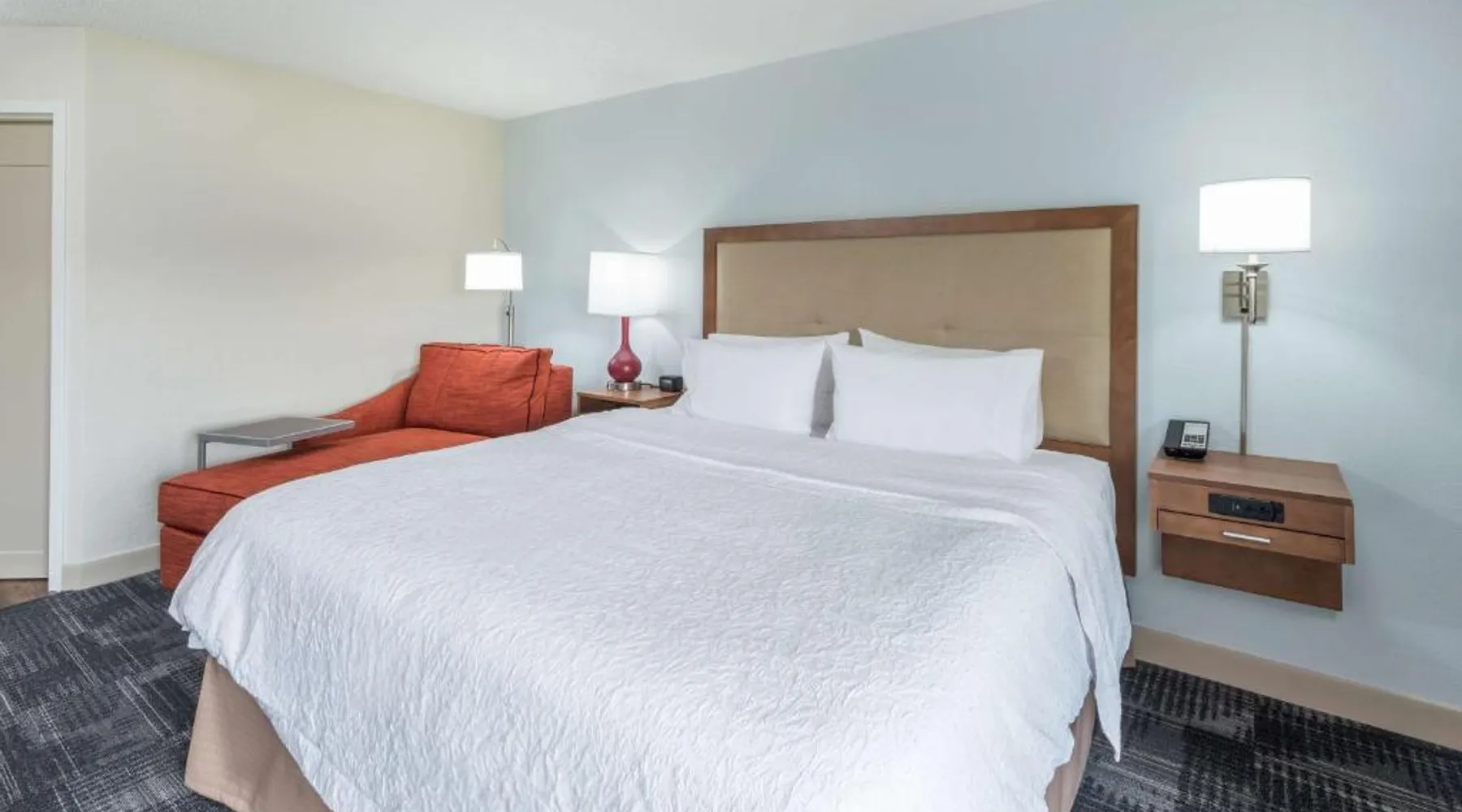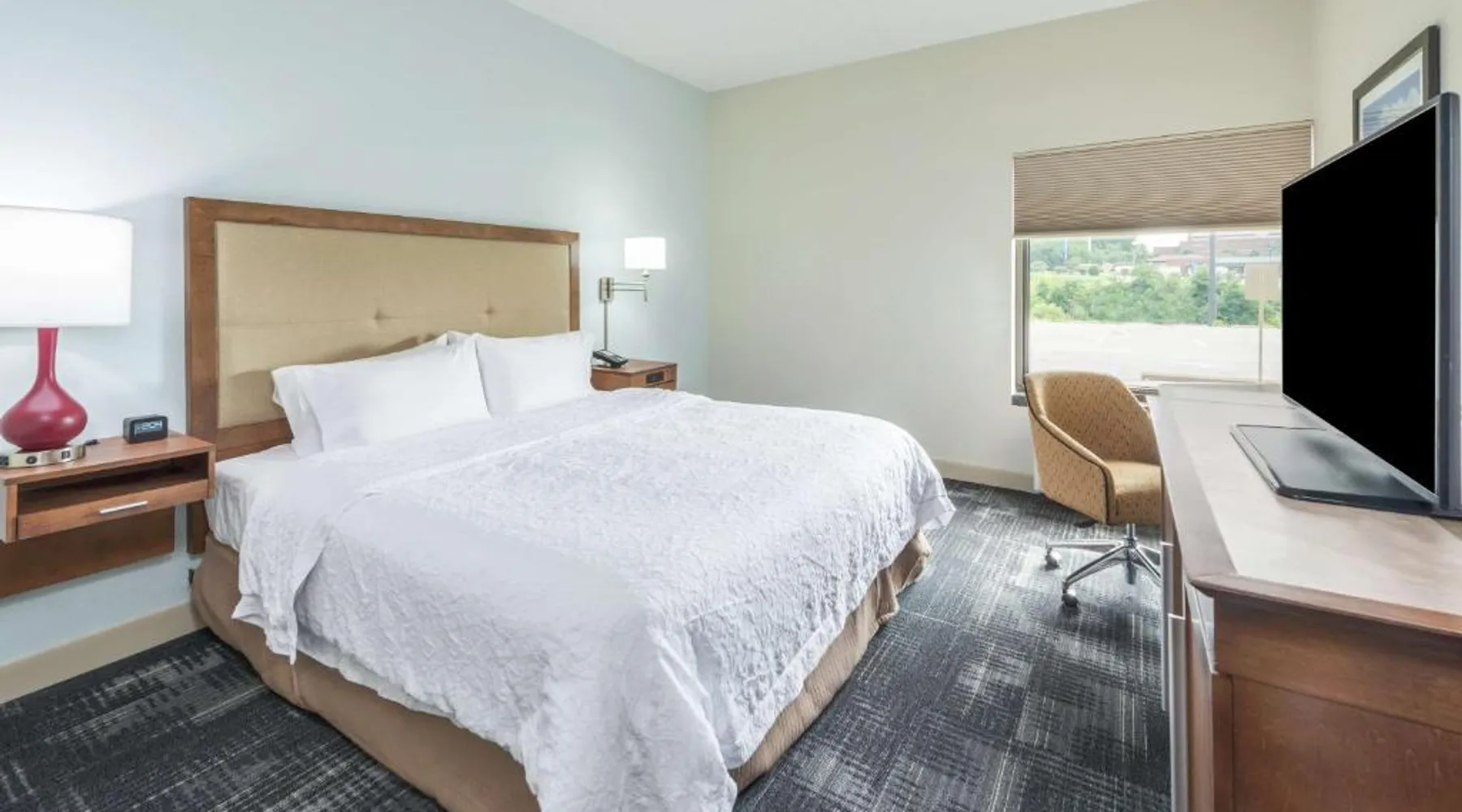 Comfortable Accommodations: Hampton Inn Columbia in Columbia offers 5-star rooms with free WiFi, air-conditioning, and modern amenities. Guests enjoy refrigerators, tea and coffee makers, and flat-screen TVs. Exceptional Facilities: The hotel features a fitness center, sun terrace, and indoor swimming pool. Additional facilities include a hot tub, business area, and laundry service. Delicious Breakfast: A complimentary American buffet breakfast is served daily, highly praised by guests for its quality and variety. Convenient Location: Located 12 mi from Columbia Regional Airport, the hotel is near attractions such as Stephens Lake Park (2.4 mi) and Faurot Field (5 mi). Guests appreciate the room cleanliness and attentive staff. This guestroom includes a sofa bed, free WiFi, and a flat-screen TV. A desk and ergonomic chair are provided.