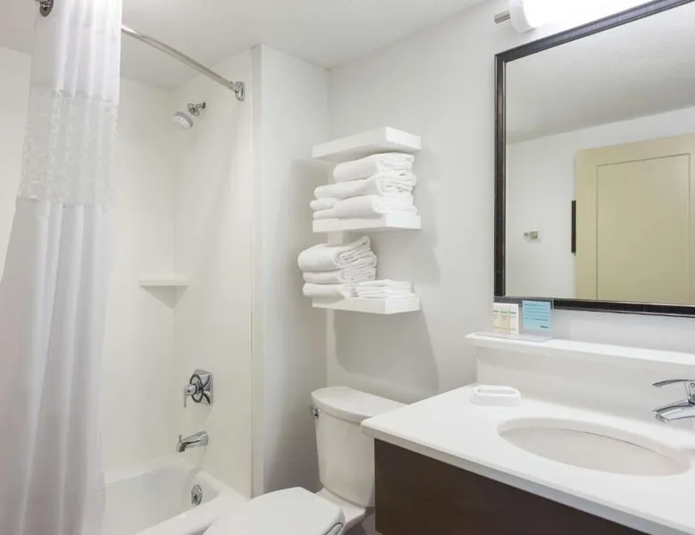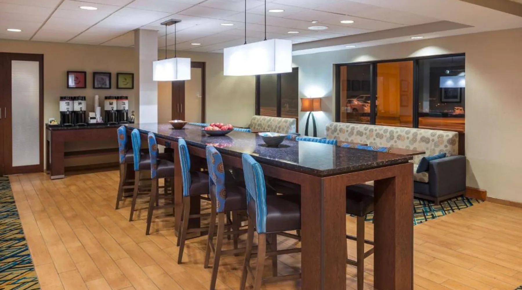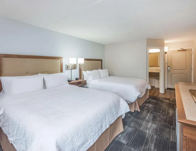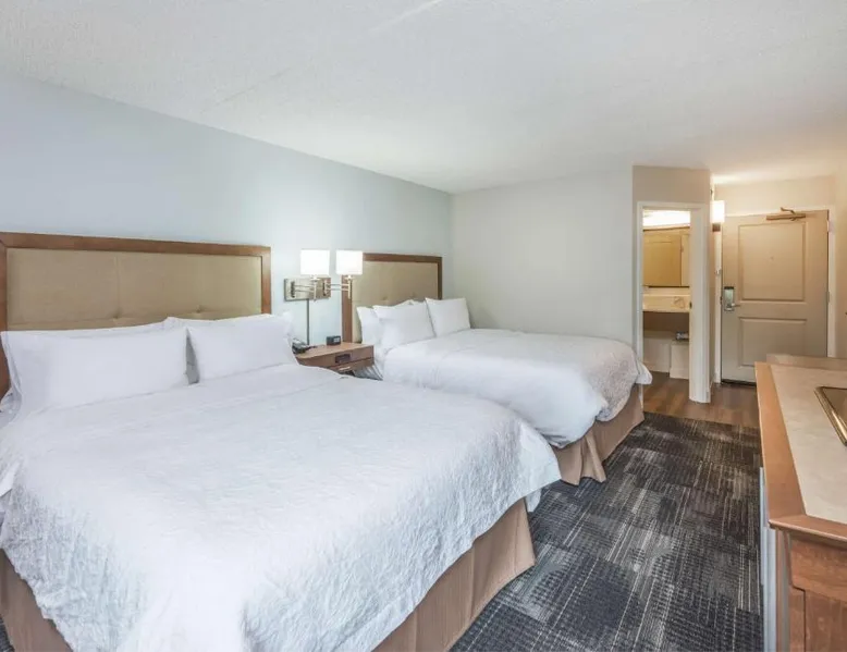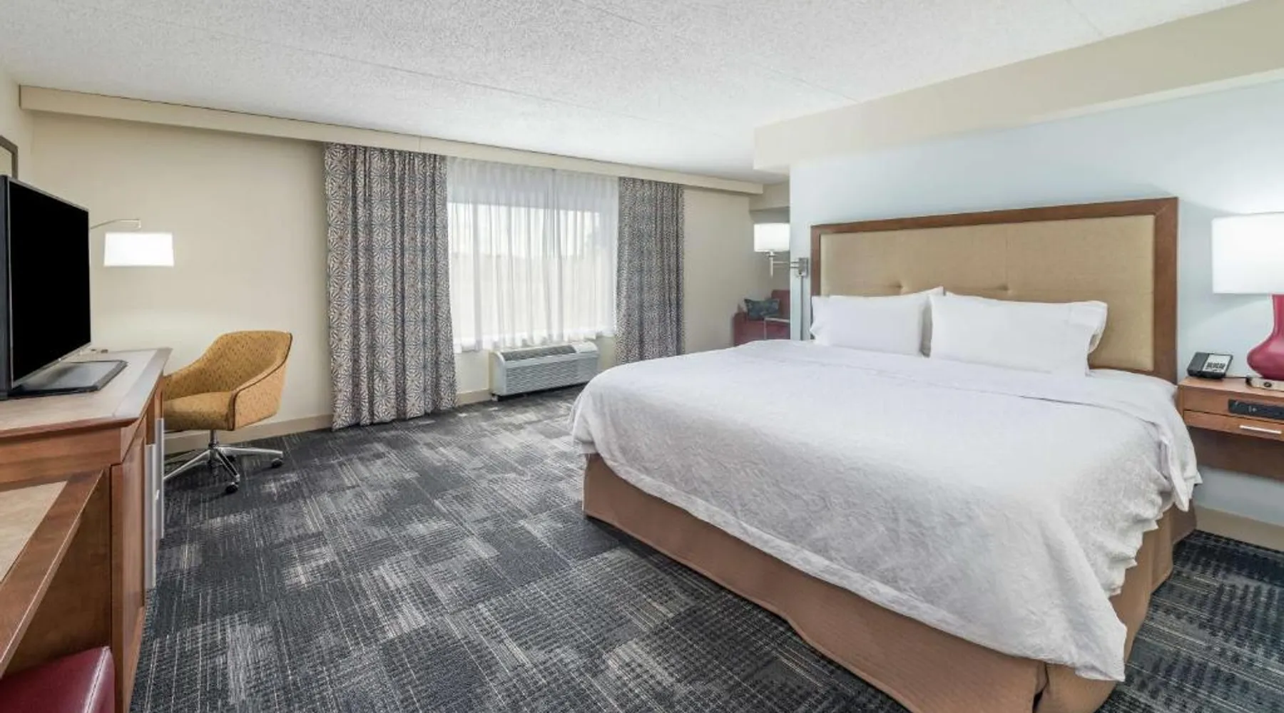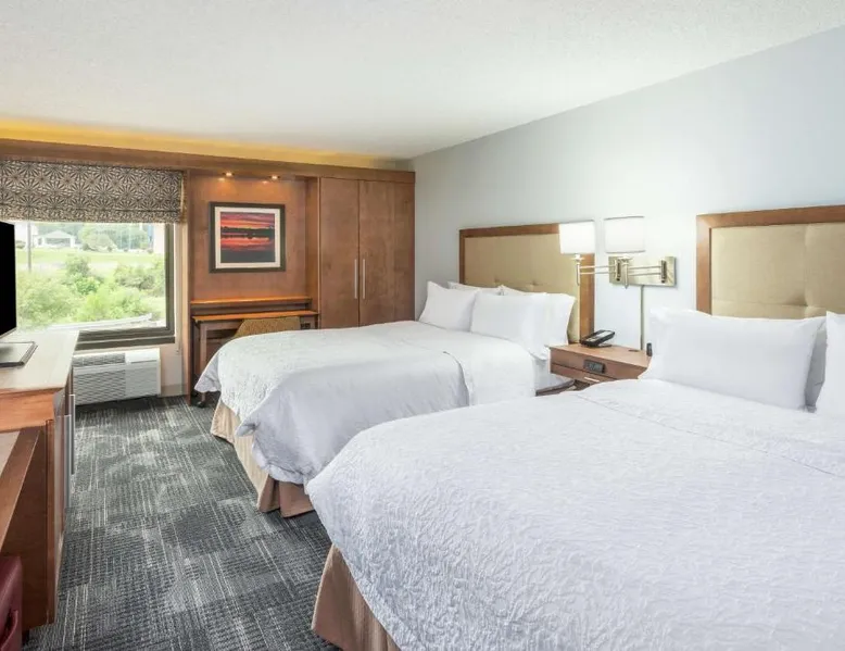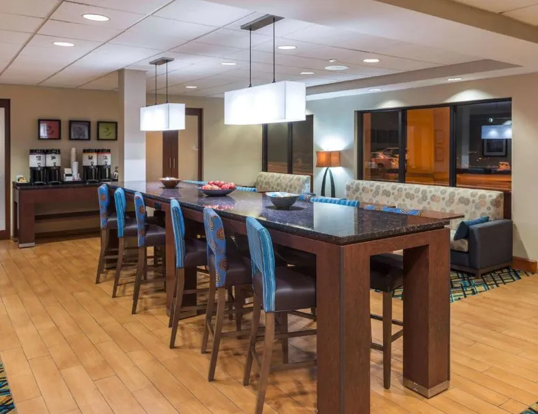 Comfortable Accommodations: Hampton Inn Columbia in Columbia offers 5-star rooms with free WiFi, air-conditioning, and modern amenities. Guests enjoy refrigerators, tea and coffee makers, and flat-screen TVs. Exceptional Facilities: The hotel features a fitness center, sun terrace, and indoor swimming pool. Additional facilities include a hot tub, business area, and laundry service. Delicious Breakfast: A complimentary American buffet breakfast is served daily, highly praised by guests for its quality and variety. Convenient Location: Located 12 mi from Columbia Regional Airport, the hotel is near attractions such as Stephens Lake Park (2.4 mi) and Faurot Field (5 mi). Guests appreciate the room cleanliness and attentive staff. This guestroom includes a sofa bed, free WiFi, and a flat-screen TV. A desk and ergonomic chair are provided.