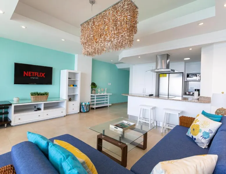 Condo Hotel Marbella Juan Dolio Frente a la Playa offers a private beach area, an outdoor pool and a spa and wellness center. Free WiFi is available throughout. This apartment will provide you with a TV, air conditioning and a balcony. There is a full a kitchenette with a dishwasher and a microwave. Featuring a bath or shower, private bathrooms also come with a hairdryer. You can enjoy sea view. At Condo Hotel Marbella Juan Dolio Frente a la Playa you will find a restaurant and a fitness center. Other facilities like grocery deliveries are offered. Activities in the surrounding area include golfing. The property offers free parking. San Pedro City Center is 8.1 mi away and Las Americas Airport is located 25 mi away. This apartment features a private pool and a spa bath. The well-fitted kitchen features a stovetop, a refrigerator, kitchenware and an oven. The spacious apartment provides air conditioning, a washing machine, a terrace with sea views as well as a shared bathroom featuring a hairdryer. The unit offers 3 beds.