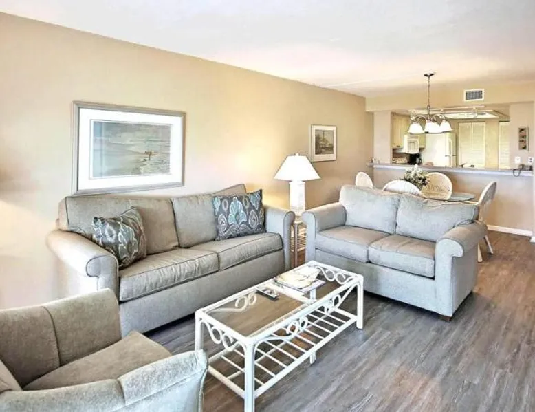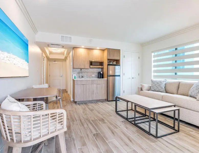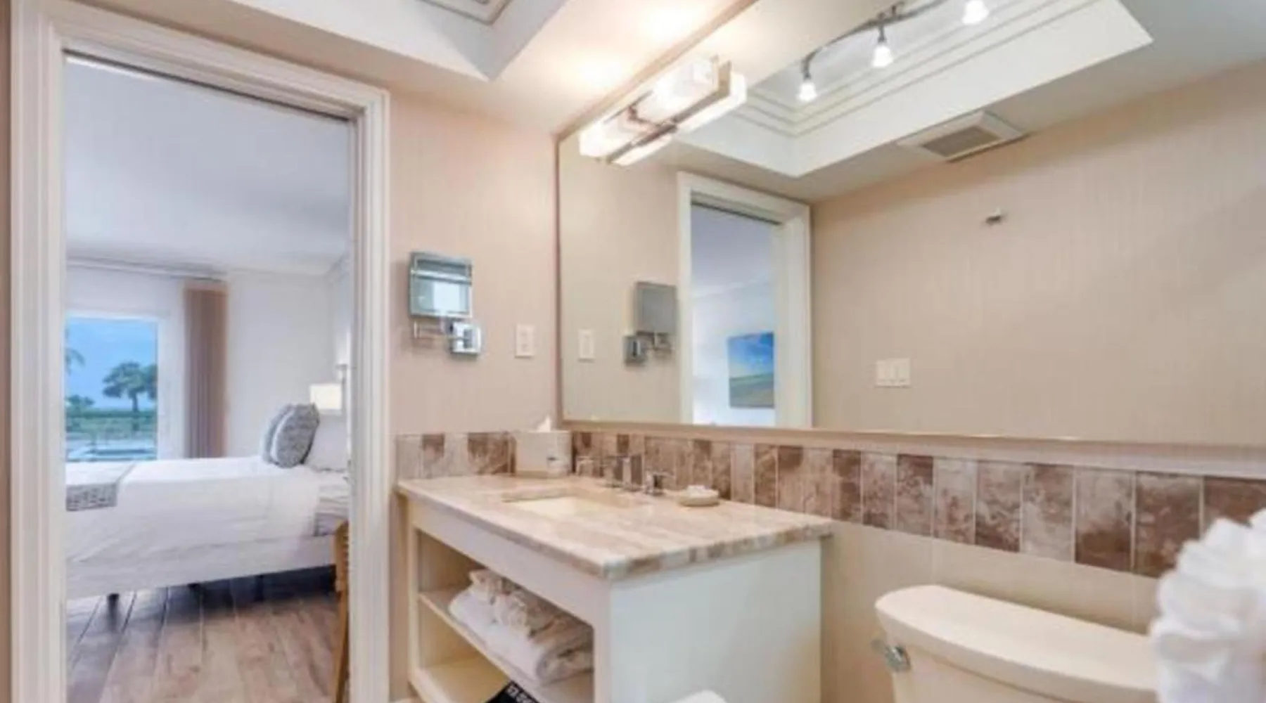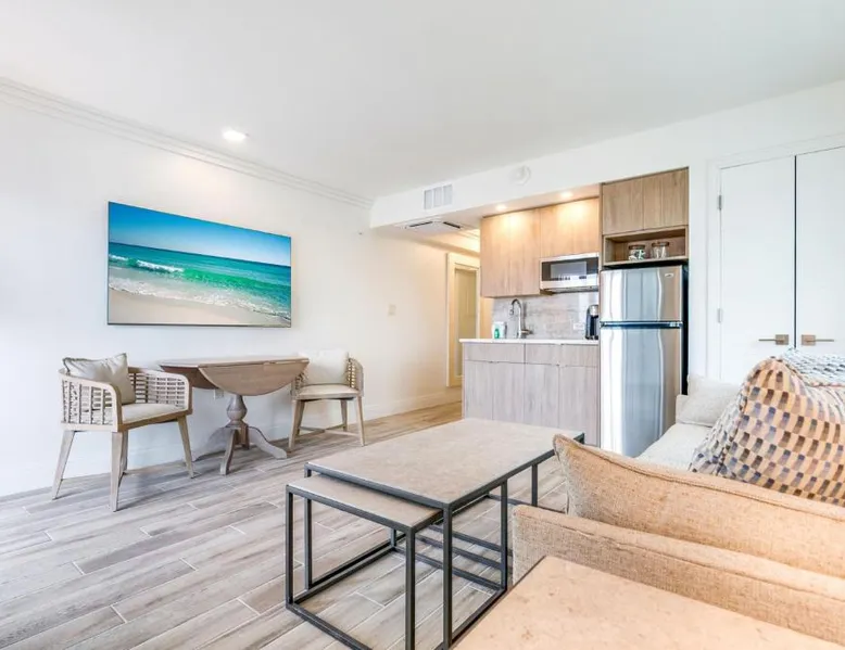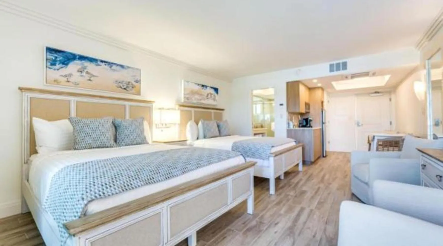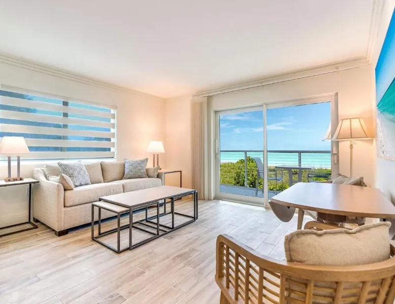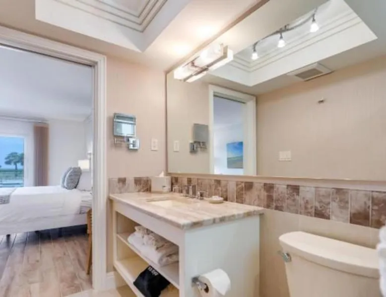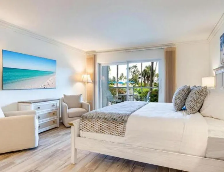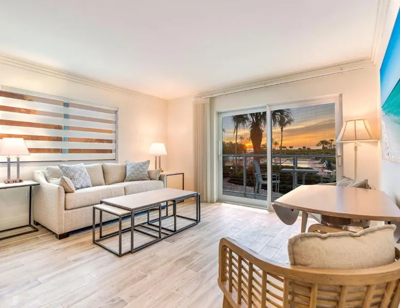 Located on the beach, Sanibel Inn features a heated outdoor pool. Guests also have access to a poolside bar for added convenience. A private, screened balcony comes standard in each room at the Sanibel Inn. A full size refrigerator and microwave are also offered. Kayak rentals and tennis courts are featured on-site at this Florida hotel. Bicycles are also available and are included in the resort fee. Periwinkle Place shopping center is just 5 minutes’ drive from this accommodations. Guests will also be 2 miles from Sanibel Lighthouse, 6 miles from Sanibel Outlets and 23 miles from Miromar Outlets. Located poolside with partial views of the Gulf of Mexico, this suite includes a balcony, separate living room, and a 42-inch flat-screen TV. A small refrigerator and microwave are provided.