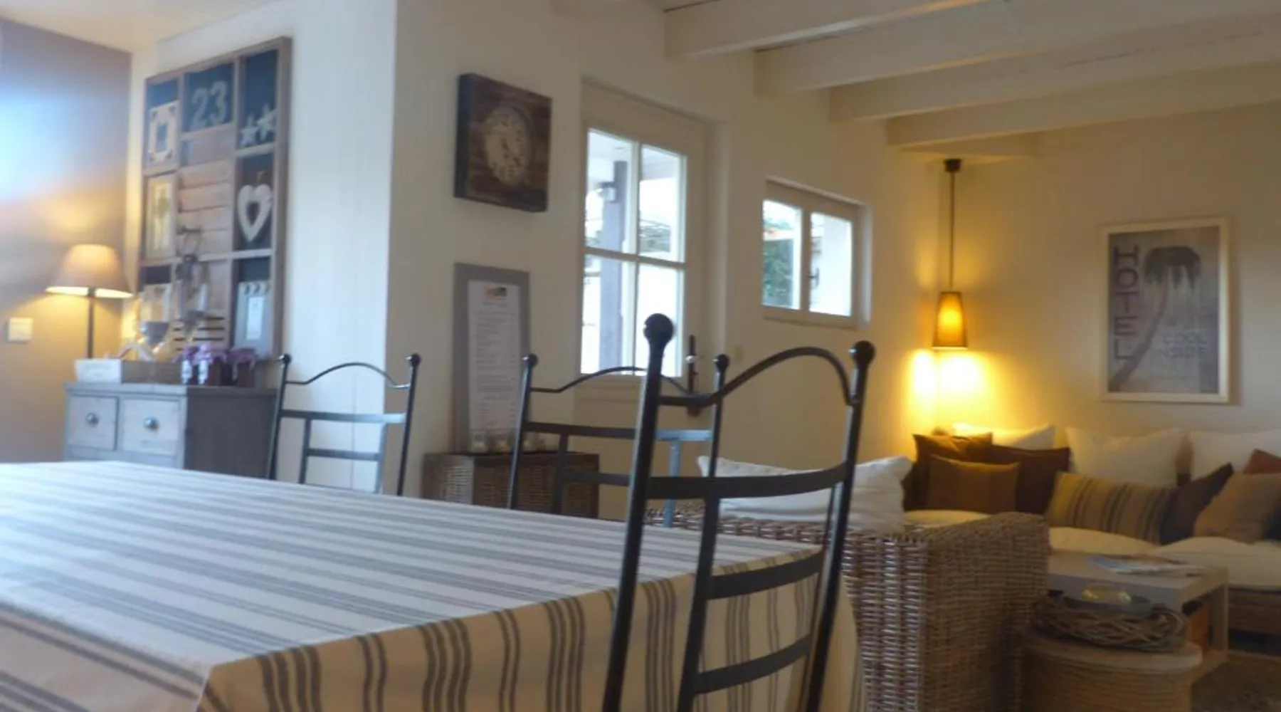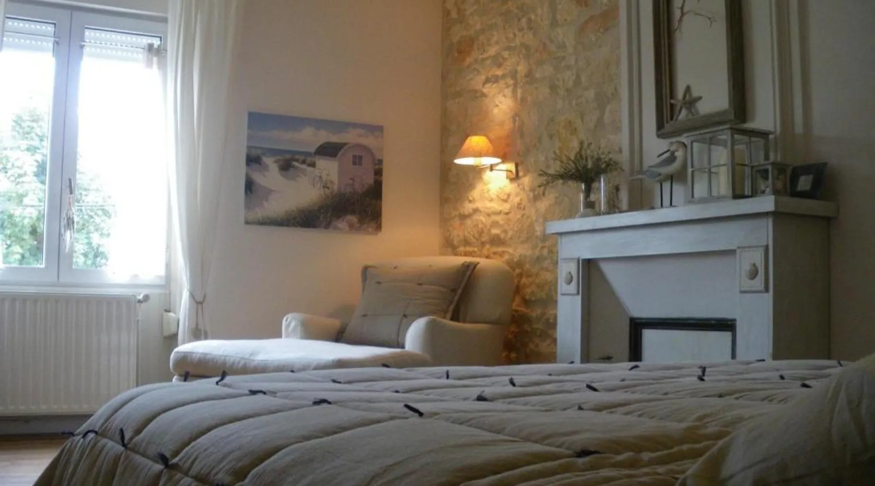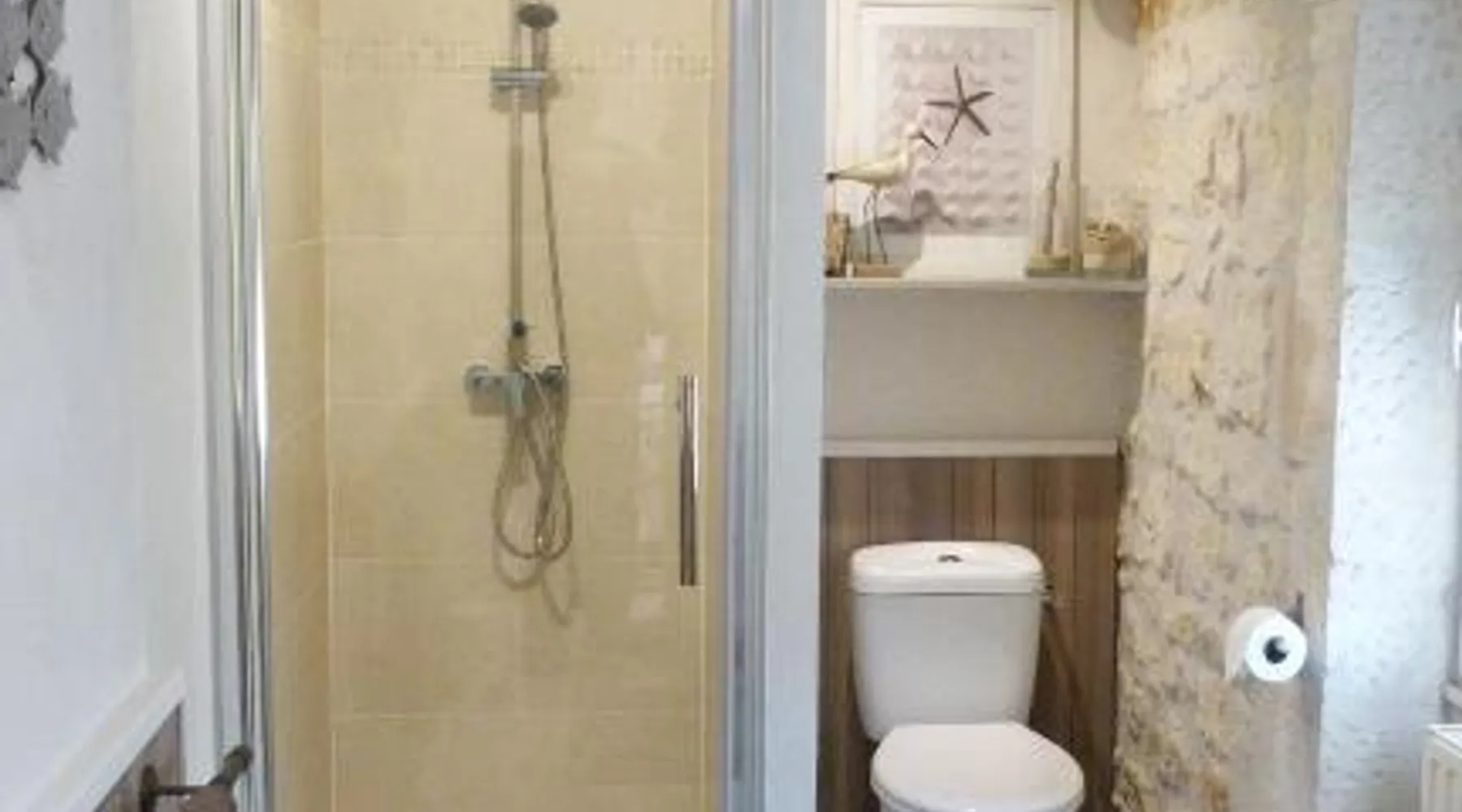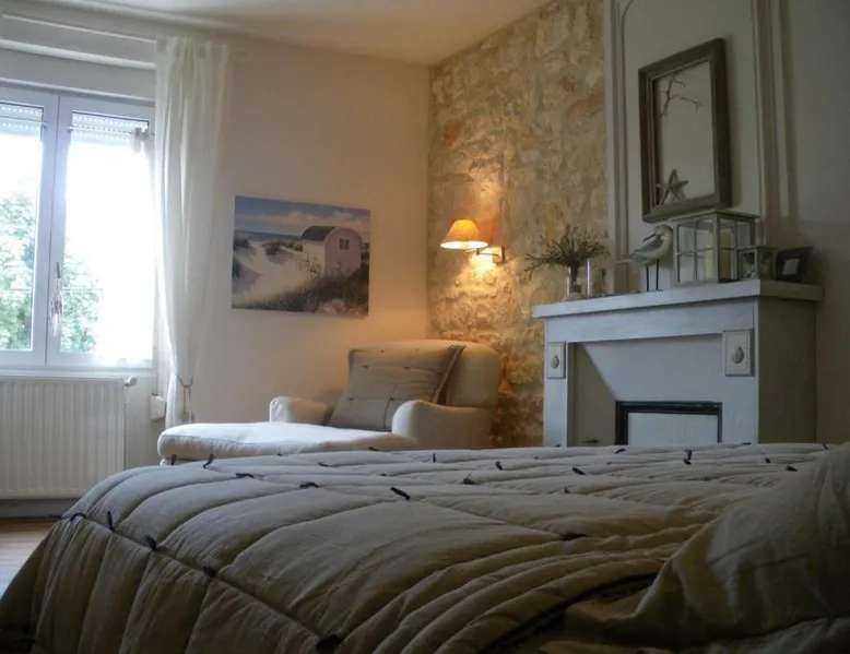 Elegant Accommodations: Les Persiennes in Saintes offers a guest house with a saltwater swimming pool, sun terrace, and lush garden. Guests enjoy free WiFi throughout the property. Comfortable Amenities: The guest house features private check-in and check-out services, a lounge, and family rooms. Additional facilities include an outdoor seating area, picnic spots, and bicycle parking. Prime Location: Located 49 mi from La Rochelle - Ile de Re Airport, Les Persiennes is a short walk from Saintes Train Station and near attractions such as Abbaye aux Dames (0.6 mi) and Saint Pierre Cathedral (18-minute walk). Guest Satisfaction: Highly rated by guests, Les Persiennes is praised for its attentive host. Decorated with the sea and nature in mind, the bedrooms all have an private bathroom with bath and shower. This triple room comes with 1 single bed and 1 large double bed.