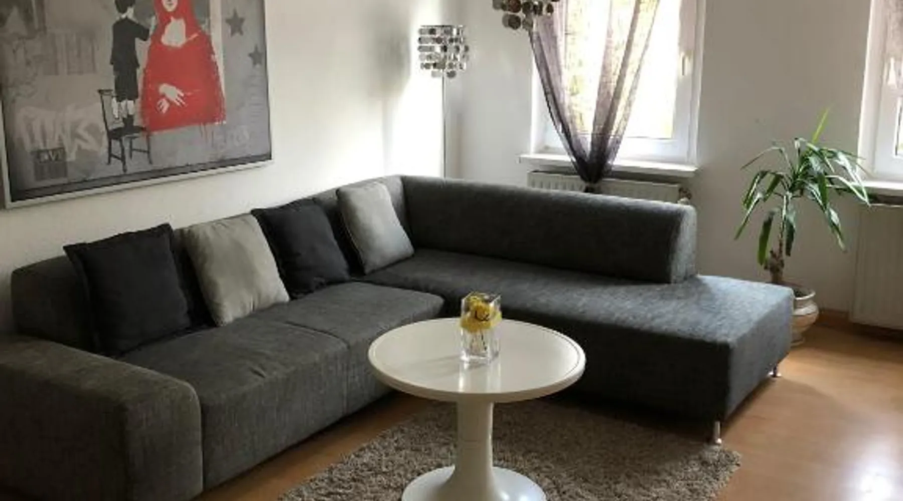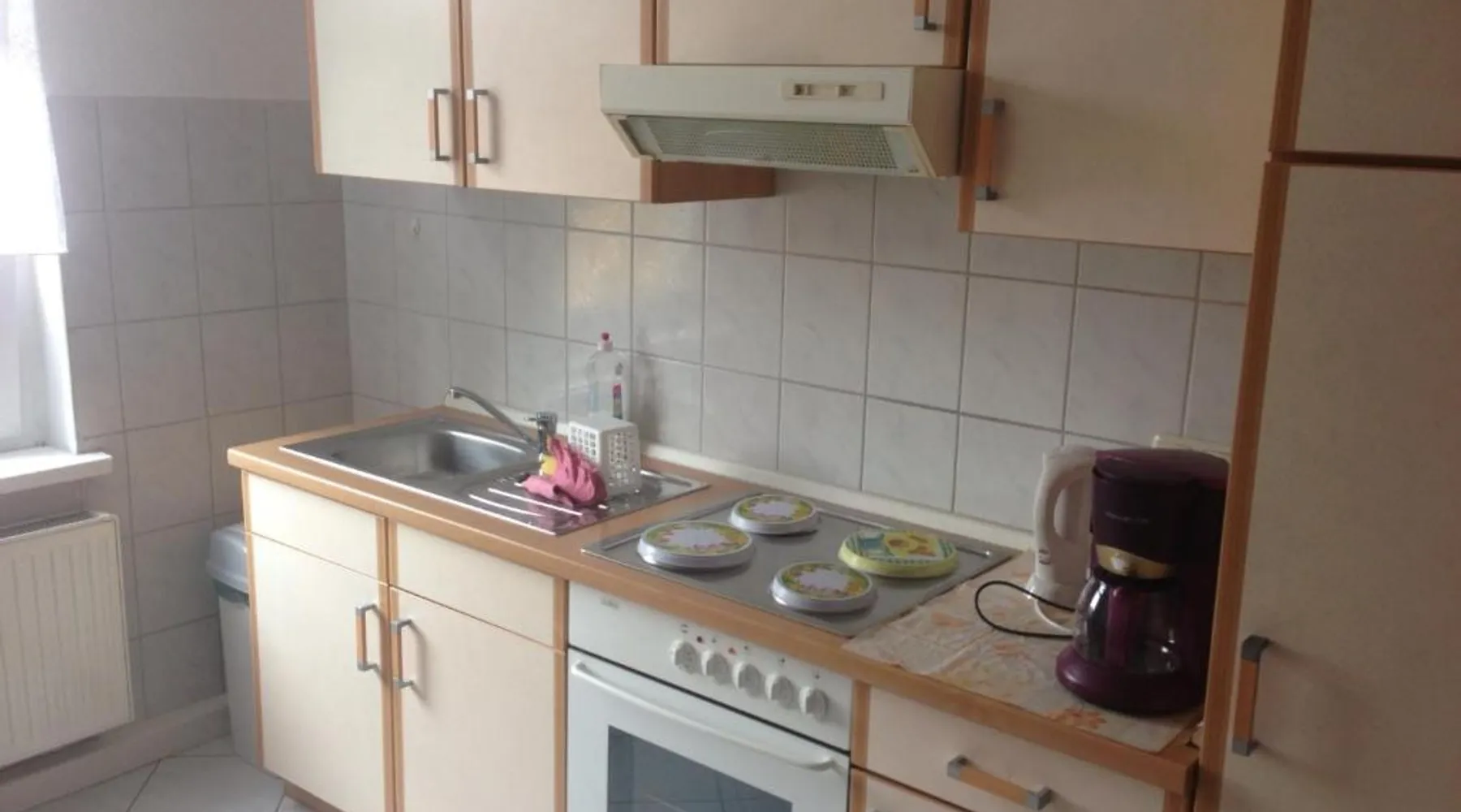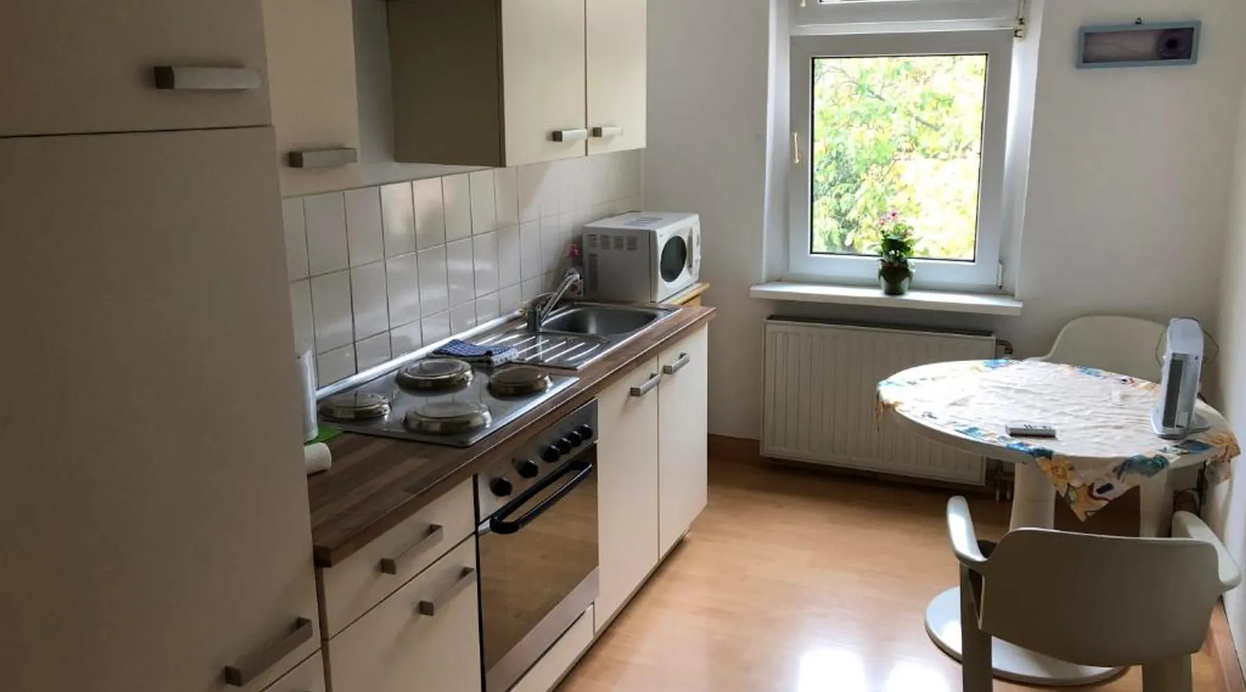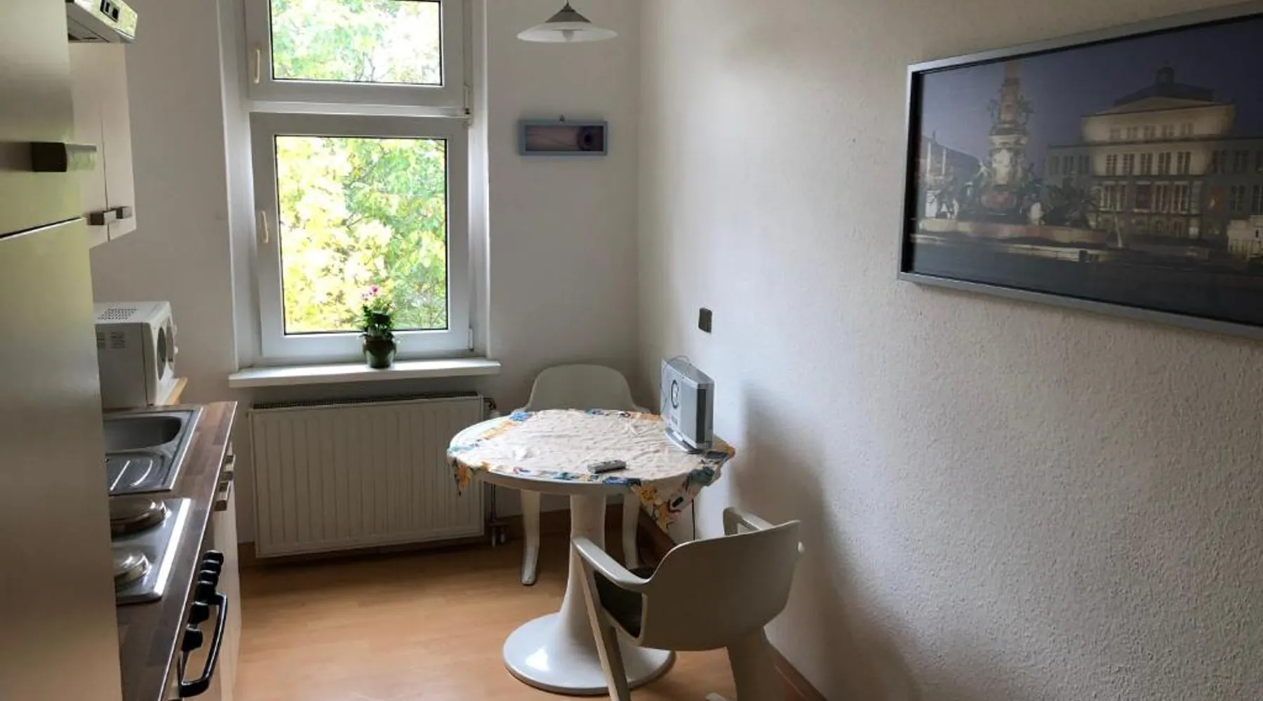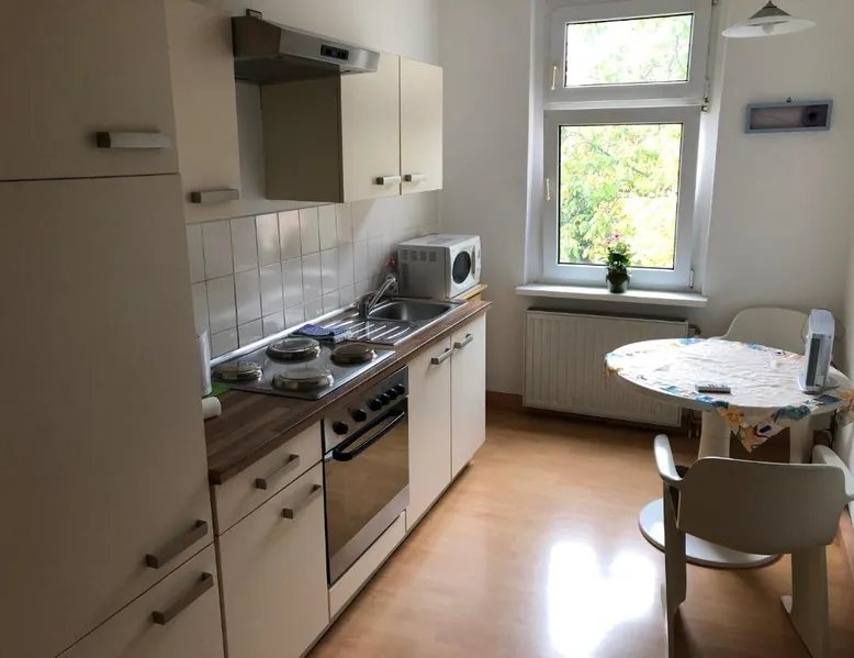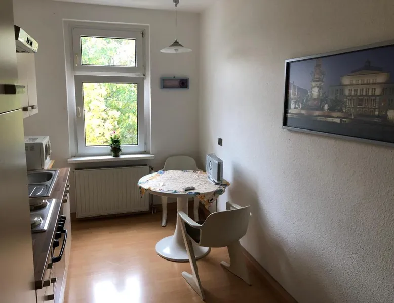 Historic Setting: Süd-Apartments in Leipzig offers a unique stay within a historic building. The property features a restaurant and free WiFi, ensuring a comfortable and convenient experience. Comfortable Amenities: Each apartment includes a kitchenette, private bathroom, and a seating area. Additional amenities include a washing machine, TV, and free off-site parking. Prime Location: Located 11 mi from Leipzig/Halle Airport, the apartment is near attractions such as Panometer Leipzig (1.1 mi) and Haus Steinstrasse (14-minute walk). Guests appreciate the host, convenient location, and public transport options. Bright apartment featuring a fully equipped kitchen, dining table and seating area with a flat-screen TV.