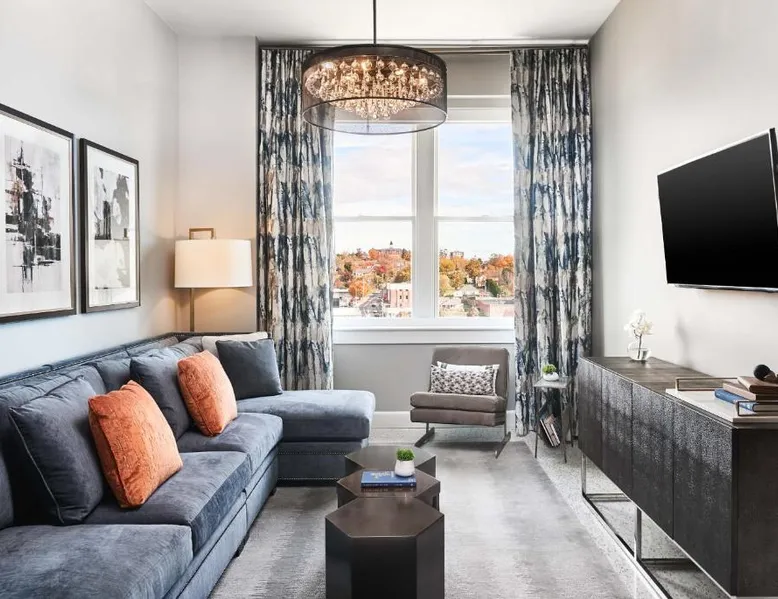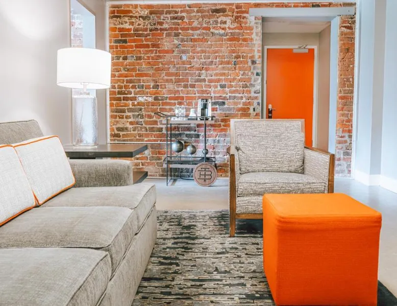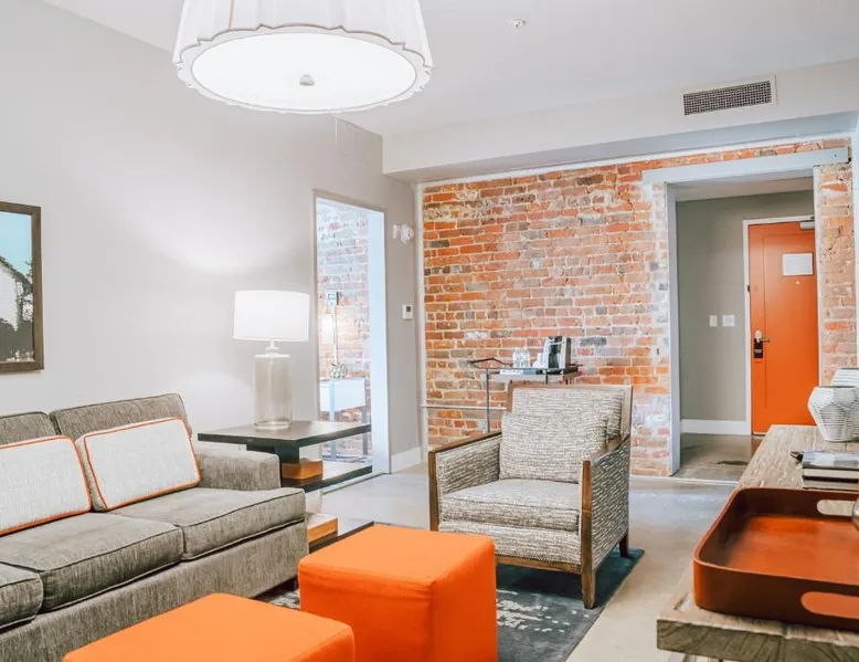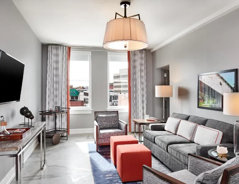 Comfortable Accommodations: The Bristol Hotel in Bristol offers modern rooms with private bathrooms, tea and coffee makers, and work desks. Each room includes a seating area, ensuring a pleasant stay. Exceptional Facilities: Guests can enjoy a fitness center, terrace, restaurant, bar, and free WiFi. Additional amenities include a elevator, 24-hour front desk, concierge service, daily housekeeping, business area, outdoor seating, and luggage storage. Dining Experience: The on-site restaurant serves American cuisine in a modern ambiance. The bar is highly rated by guests for its selection of beverages. Prime Location: Located 17 mi from Tri-Cities Regional Airport, the hotel is near attractions such as Bristol Motor Speedway (8.1 mi), Tweetsie Trail (25 mi), and Hands On! Discovery Center (29 mi). Highly rated for its bar, staff, history, and culture. A seating area, a desk and a private bathroom are available in this spacious suite. The unit has 2 beds.
