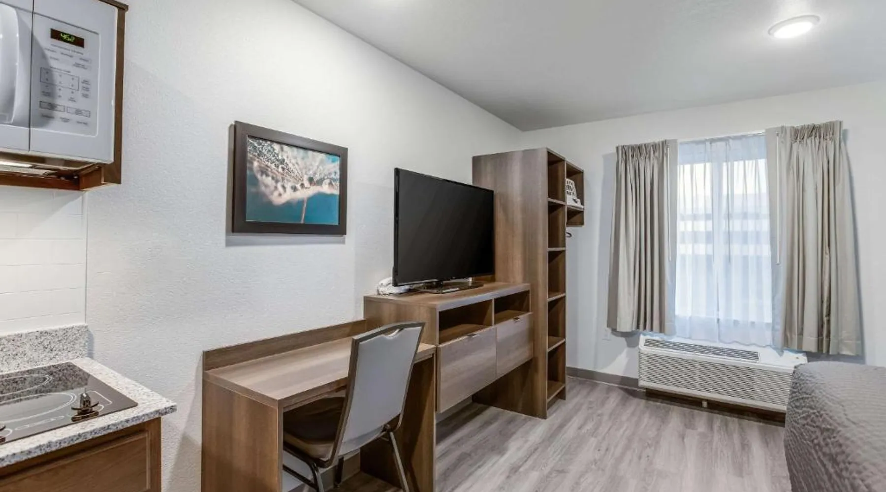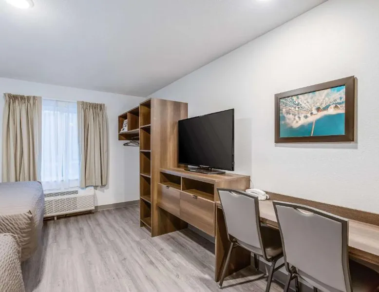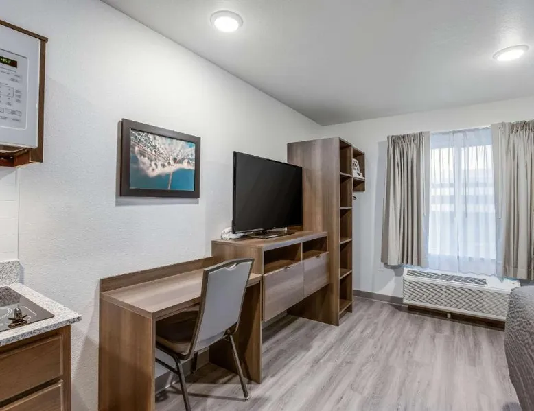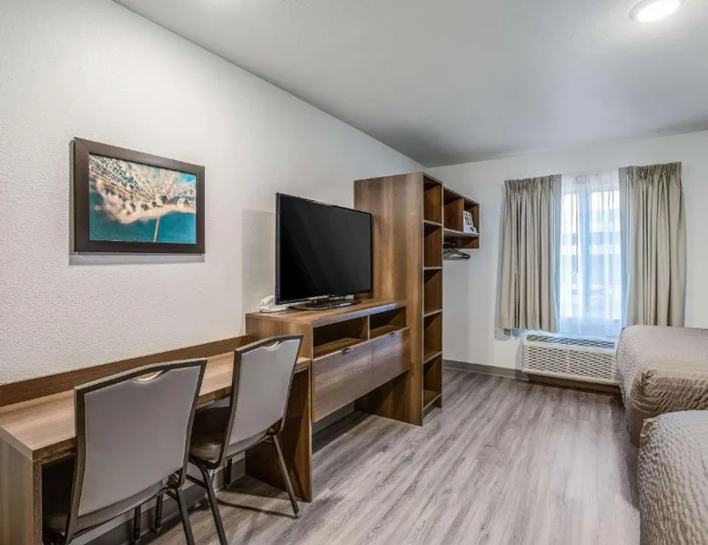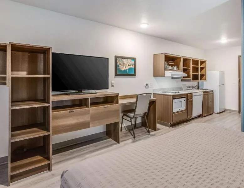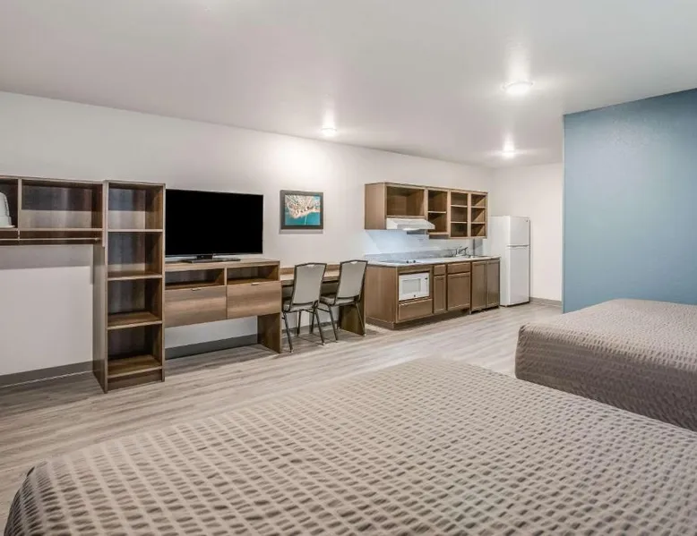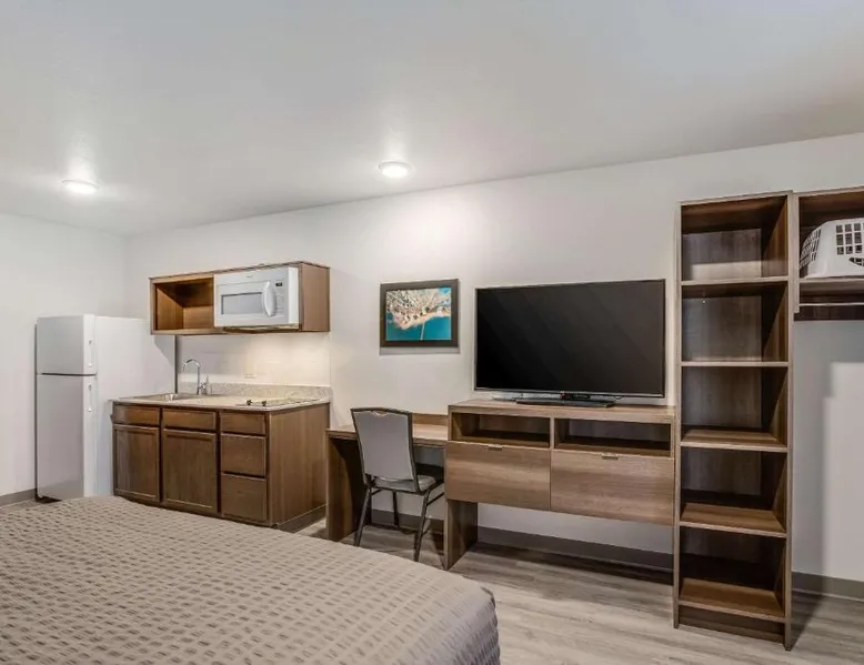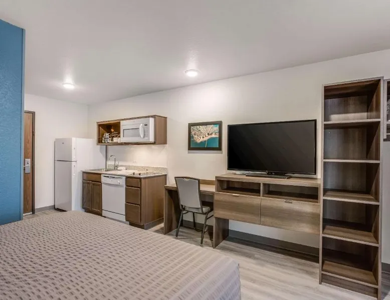 Comfortable Accommodations: WoodSpring Suites Detroit Farmington Hills in Farmington Hills offers well-appointed rooms with air-conditioning, kitchenettes, and private bathrooms. Each room includes a work desk, free toiletries, and a wardrobe. Modern Facilities: Guests enjoy free WiFi, a fitness center, and a elevator. Additional amenities include a 24-hour front desk, bicycle parking, and free on-site parking. Convenient Location: Located 19 mi from Detroit Metro Airport, the hotel is near attractions such as Detroit Golf Club (17 mi) and TCF Center (27 mi). Guests appreciate the room cleanliness, attentive staff, and convenient location. The spacious double room offers air conditioning, a wardrobe, as well as a private bathroom boasting a bath and a shower. In the kitchenette, guests will find a stovetop, a refrigerator, a dishwasher and kitchenware. This double room provides heating, a flat-screen TV with streaming services and a quiet street view. The unit has 1 bed.