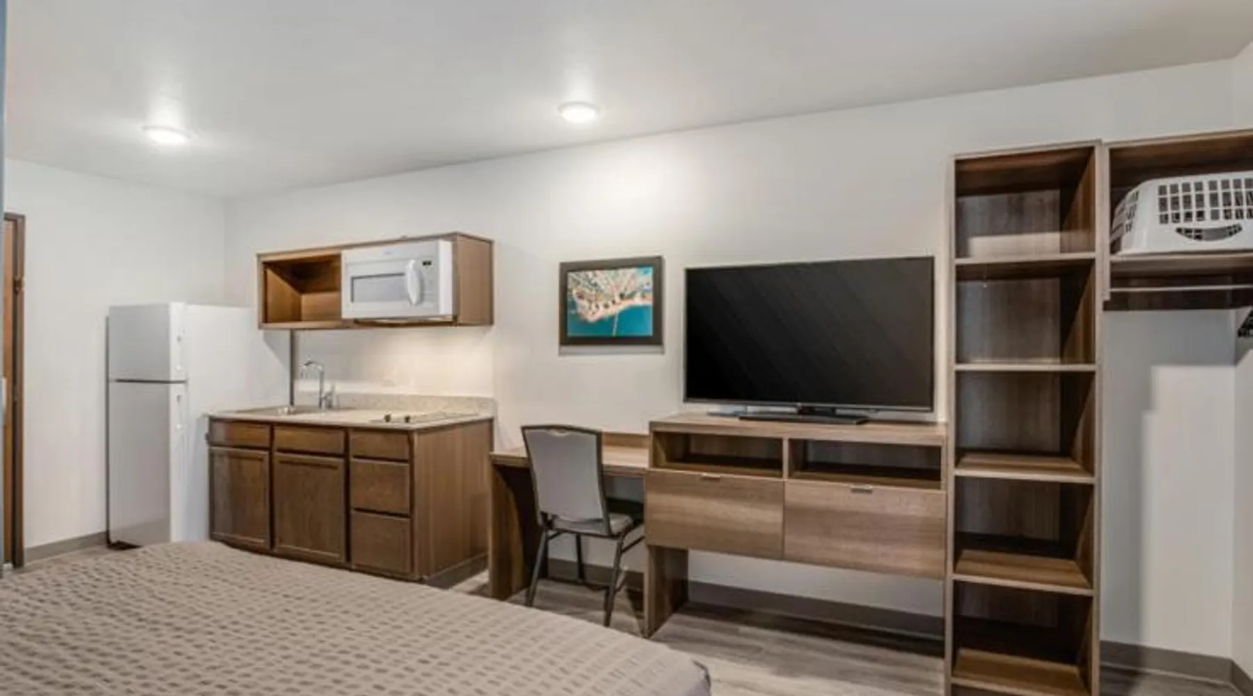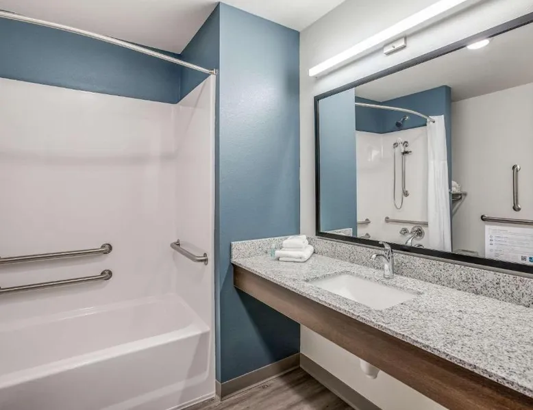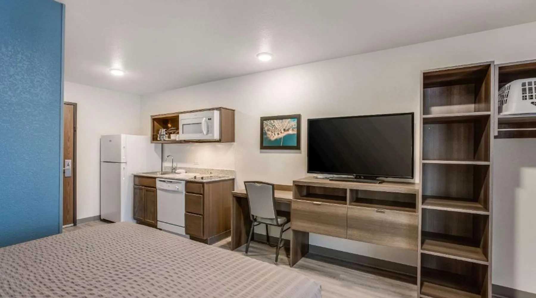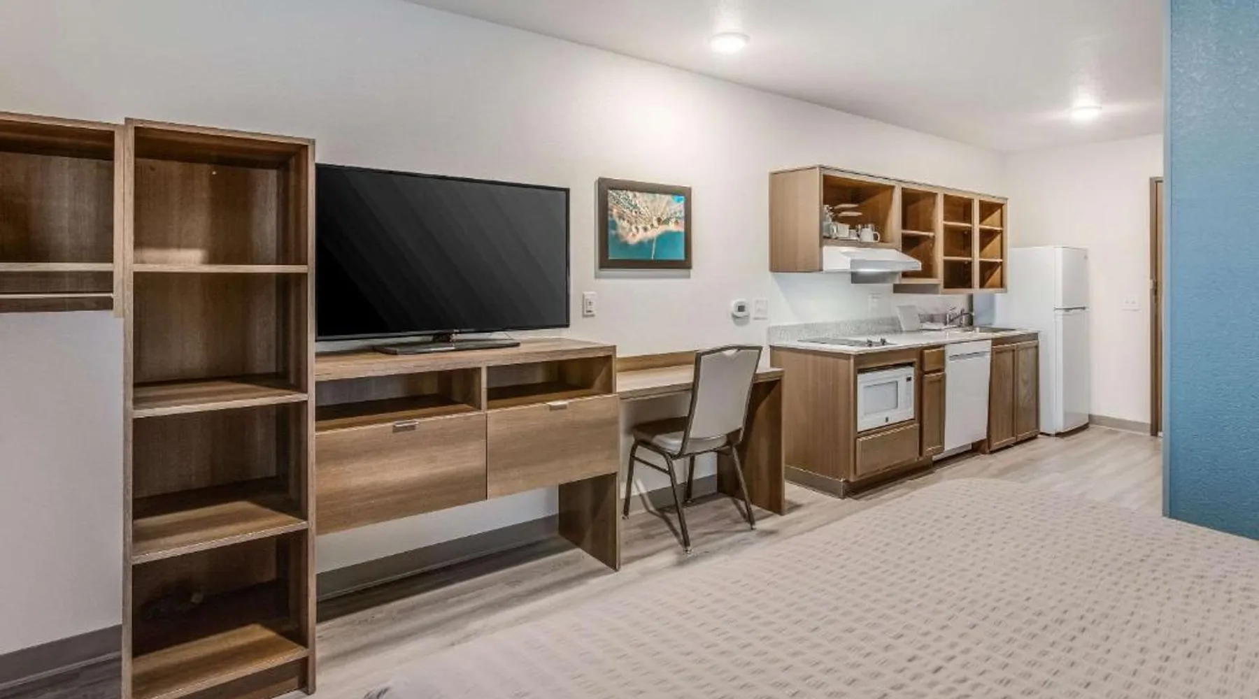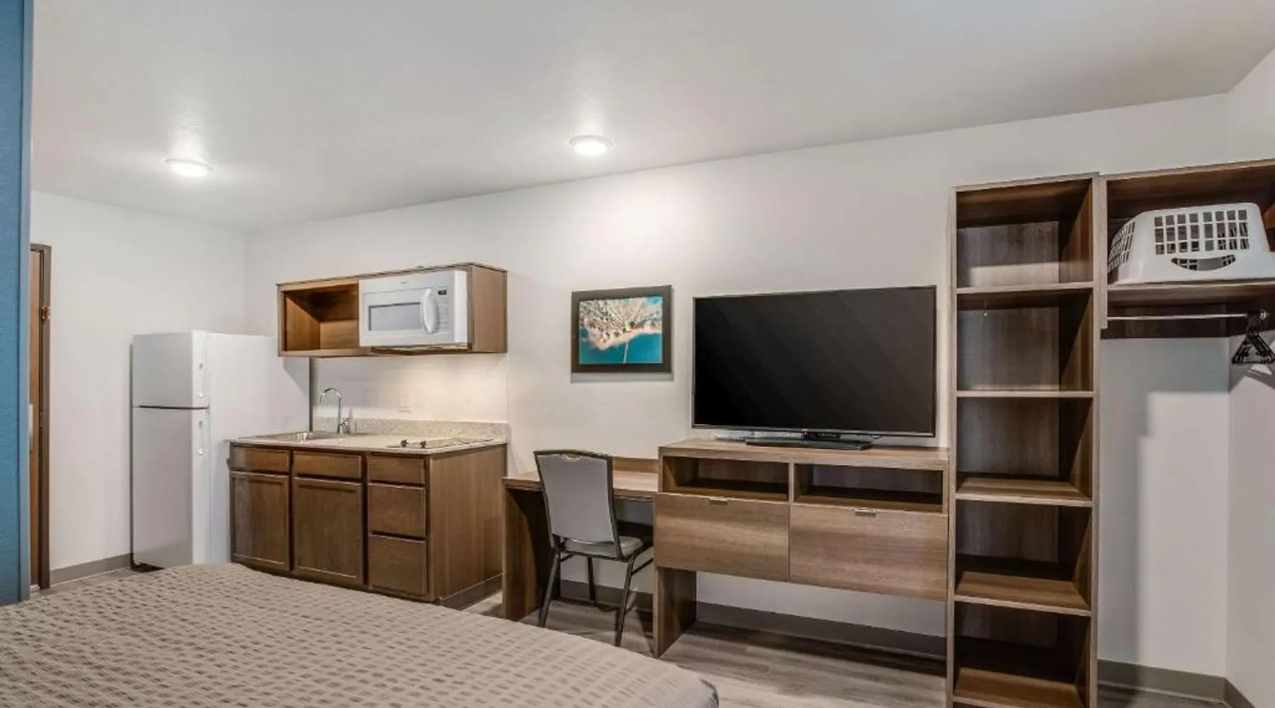 Comfortable Accommodations: WoodSpring Suites Detroit Farmington Hills in Farmington Hills offers well-appointed rooms with air-conditioning, kitchenettes, and private bathrooms. Each room includes a work desk, free toiletries, and a wardrobe. Modern Facilities: Guests enjoy free WiFi, a fitness center, and a elevator. Additional amenities include a 24-hour front desk, bicycle parking, and free on-site parking. Convenient Location: Located 19 mi from Detroit Metro Airport, the hotel is near attractions such as Detroit Golf Club (17 mi) and TCF Center (27 mi). Guests appreciate the room cleanliness, attentive staff, and convenient location. The spacious double room offers air conditioning, a wardrobe, as well as a private bathroom boasting a bath and a shower. In the kitchenette, guests will find a stovetop, a refrigerator, a dishwasher and kitchenware. This double room provides heating, a flat-screen TV with streaming services and a quiet street view. The unit has 1 bed.