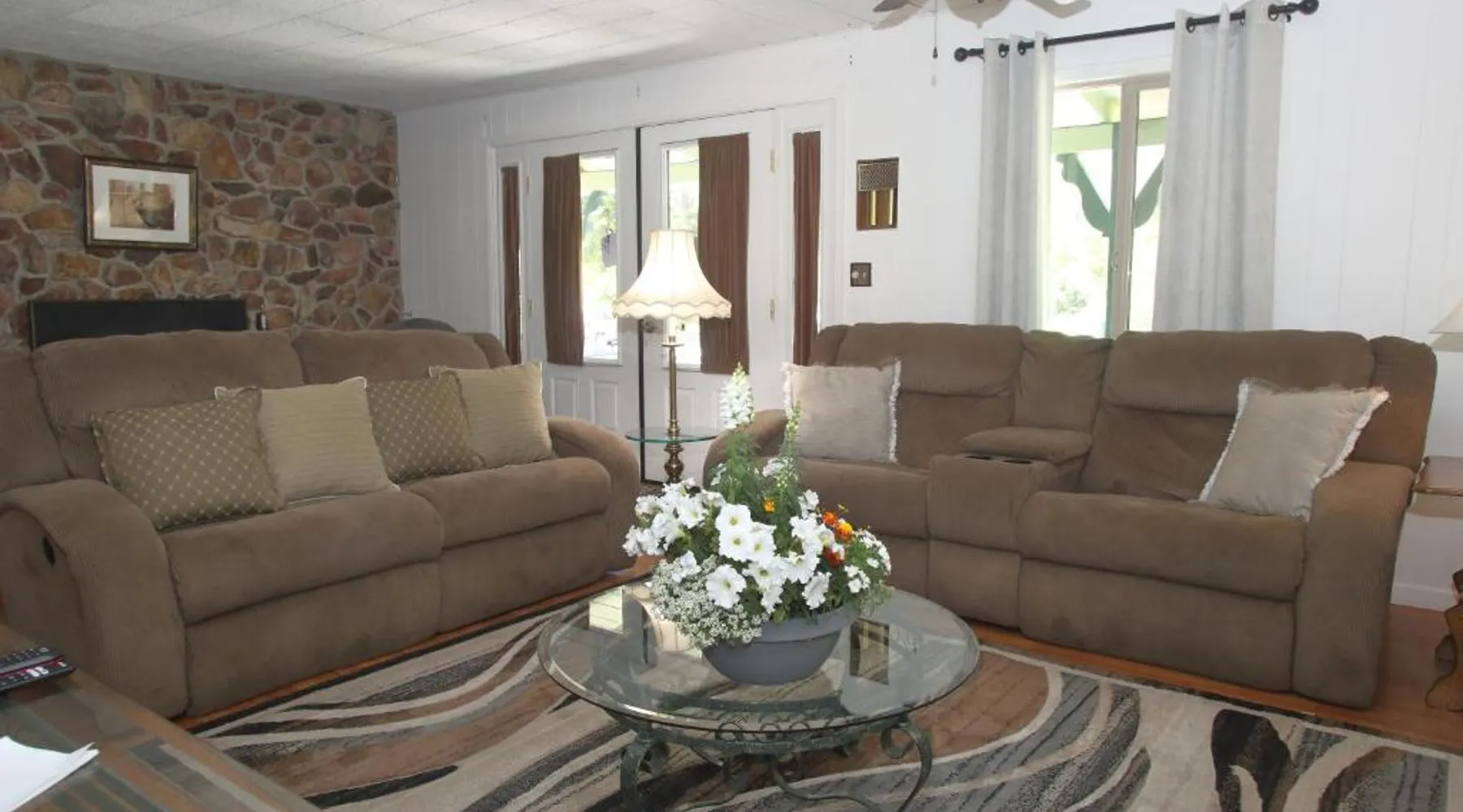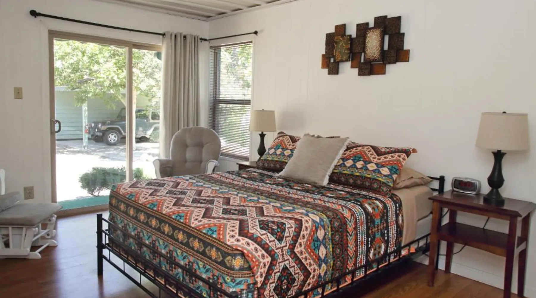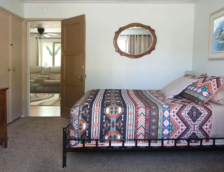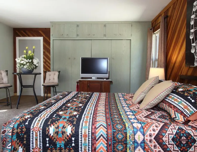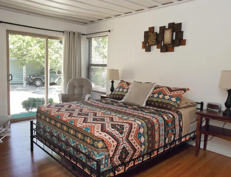 Comfortable Accommodations: Kern Riverview Inn in Kernville offers comfortable rooms with private bathrooms, air-conditioning, and garden or mountain views. Each room includes a sofa bed, TV, and free WiFi. Outdoor Spaces: Guests can relax in the garden or on the terrace, enjoying river, mountain, and garden views. The outdoor seating area provides a pleasant setting for leisure. Convenient Facilities: The lodge features free on-site private parking, a fully equipped kitchen with a dining area, and a fireplace. Additional amenities include a barbecue, tea and coffee maker, and free toiletries. Prime Location: Located 55 mi from Meadows Field Airport, the property is highly rated for its convenient location, comfortable bathrooms, and spacious rooms. The spacious double room offers air conditioning, a private entrance, a terrace with garden views as well as a private bathroom featuring a bath. The unit offers 1 bed and 1 futon.