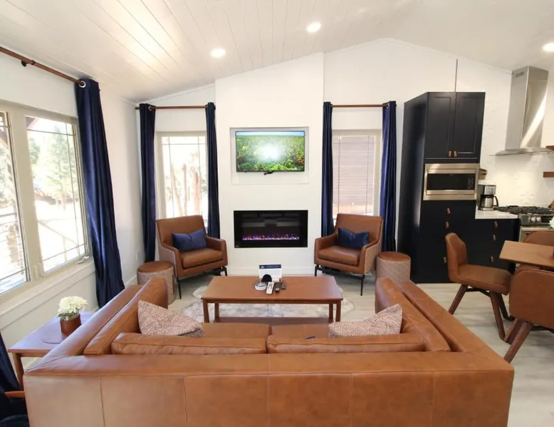 Comfortable Accommodations: Aspen Springs Angel Fire in Angel Fire offers aparthotel-style accommodations with family rooms and interconnected units. Each room features air-conditioning, a kitchenette, balcony, and private bathroom with a walk-in shower. Exceptional Facilities: Guests enjoy a sun terrace, garden, and free WiFi. Additional amenities include an outdoor fireplace, fitness room, indoor play area, tennis equipment hire, and free on-site private parking. Convenient Location: Located 35 mi from Taos Regional Airport, the aparthotel provides easy access to skiing, walking tours, bike tours, hiking, and cycling. Highly rated for bed comfort, Aspen Springs Angel Fire ensures a pleasant stay. This two-bedroom cabin includes a full kitchen, BBQ grill, covered deck and a full coffee bar.