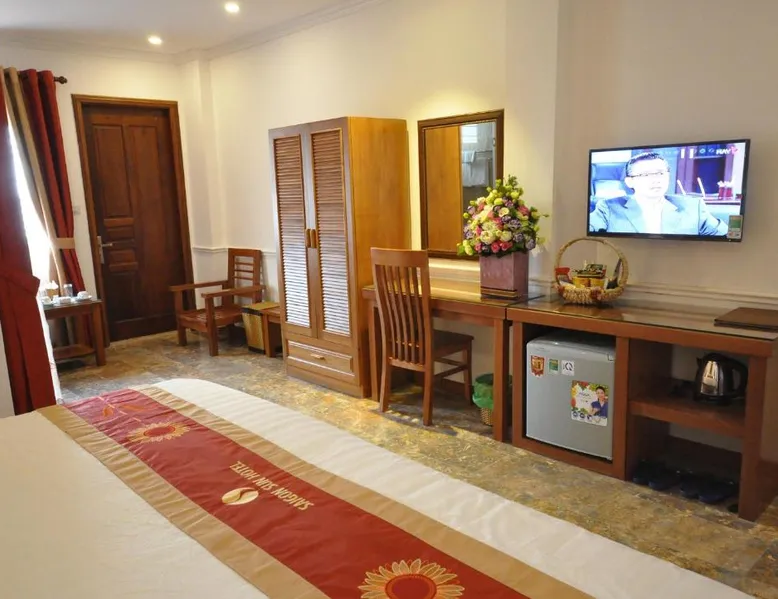 Well set in the Dong Da District district of Hanoi, Saigon Sun Hotel 1 is located 1.6 miles from Vietnam Fine Arts Museum, 1.7 miles from Hanoi Temple of Literature and 2 miles from Ha Noi Railway station. With a restaurant, the 2-star hotel has air-conditioned rooms with free WiFi, each with a private bathroom. Private parking is available on site. All guest rooms are equipped with a fridge, minibar, an electric tea pot, a bidet, free toiletries and a desk. Every room includes a flat-screen TV, and some units at the hotel have a city view. All rooms feature a closet. Languages spoken at the reception include English and Vietnamese, and guests are invited to request information on the area when needed. Imperial Citadel is 2.1 miles from Saigon Sun Hotel 1, while Vincom Center Nguyen Chi Thanh is 2.3 miles away. Noi Bai International Airport is 17 miles from the property. This suite features 1 living room, 1 separate bedroom and 1 bathroom with a bath and free toiletries. The air-conditioned suite features a flat-screen TV, a mini-bar, a seating area, a wardrobe as well as garden views. The unit has 1 bed.