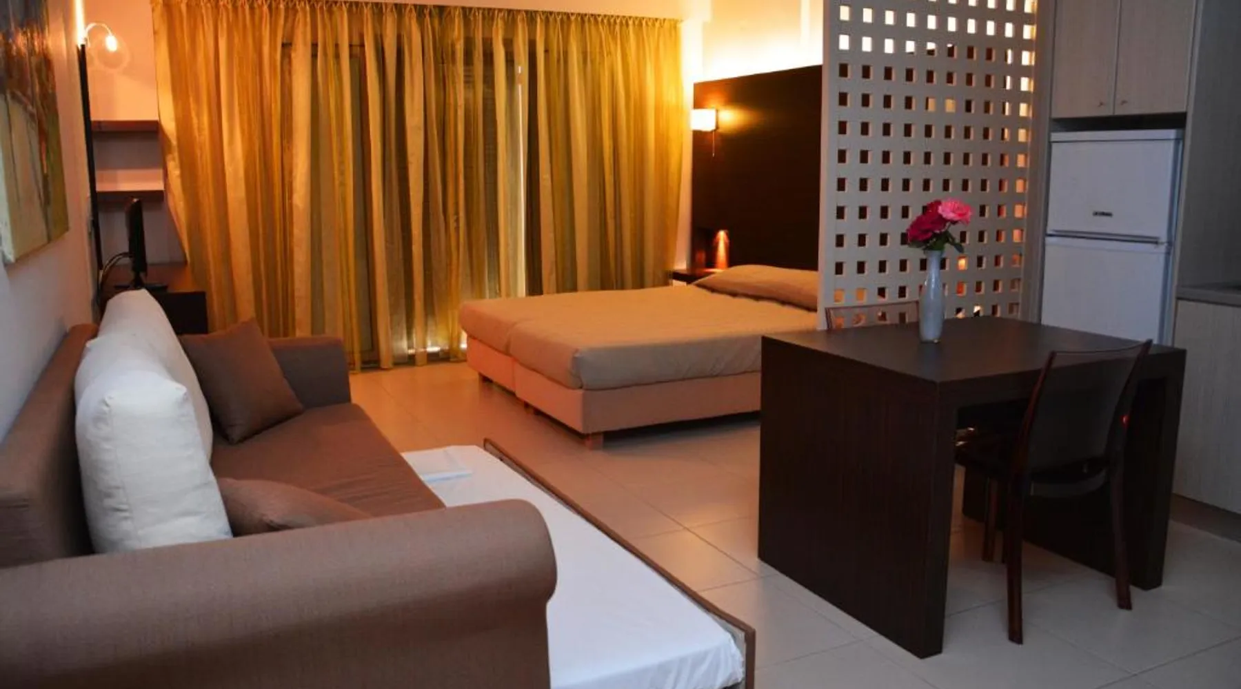 Located just 984 feet from the beach of Anemomylos, Tsokas Hotel offers self-catering rooms with free Wi-Fi. It is surrounded by a big garden and includes a swimming pool and a bar. Tsokas rooms are modernly decorated in bright colors and have a balcony with pool views. Each includes a well-equipped kitchenette with dining area, and a large sofa. Rooms also come with an LCD TV, air conditioning and hairdryer. Free sun beds and umbrellas are available around the swimming pool, which also features a hot tub. The more active guests can visit the hotel’s fitness room. The seaside town of Methoni is a 5-minute drive away from Tsokas, while the scenic Pylos is at 12 mi. Private on-site parking is provided free of charge. This apartment is consisted of of 1 living room, 1 separate bedroom and 1 bathroom with a walk-in shower and free toiletries. Featuring a terrace with garden views, this apartment also offers air conditioning and a flat-screen TV. The unit offers 1 bed.