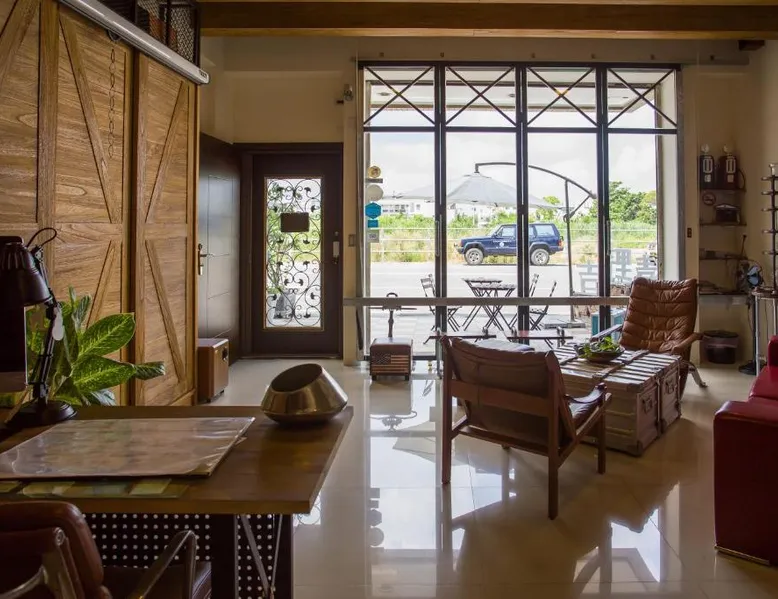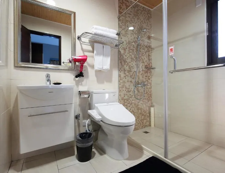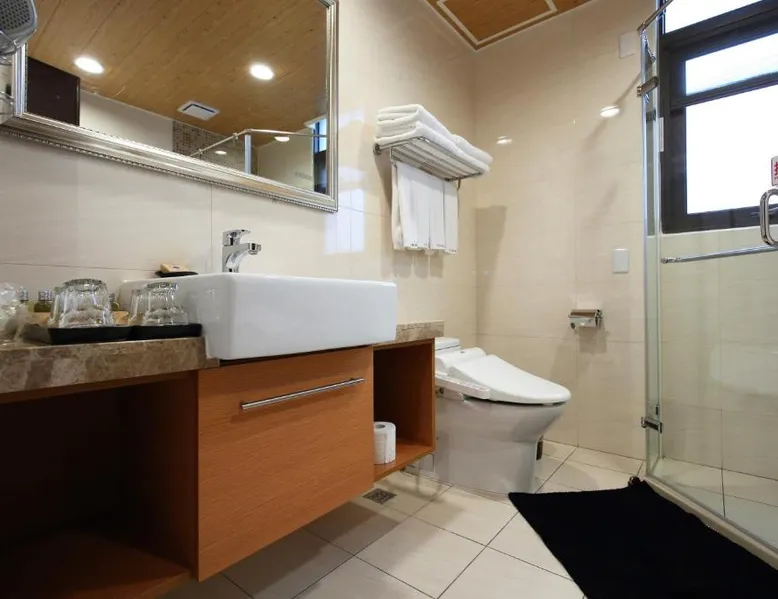 Comfortable Accommodations: Ji Ye Jing Zhan B&B in Jian offers family rooms with private bathrooms. Each room features air-conditioning, a balcony, and garden or mountain views. Leisure Facilities: Guests can relax on the sun terrace or in the garden. Free WiFi is available throughout the property. Additional amenities include a lounge, games room, and outdoor seating area. Convenient Services: The bed and breakfast provides private check-in and check-out, a paid shuttle service, and a tour desk. Free private parking is provided, and Hualien Airport is 4.3 mi away. Local Attractions: Ji'an Station is an 18-minute walk, Ji’an Keishuin 1.2 mi away, and Pine Garden 3.7 mi from the property. Hiking trails surround the area, offering scenic views. Offering a balcony, soundproofing room features air conditioning, a flat-screen TV with cable and satellite channels, sofa and private bathroom.
