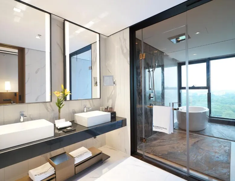 Elegant Accommodations: Wyndham Grand Yangon in Yangon offers luxurious rooms with garden or city views. Each room features air-conditioning, a private bathroom, and modern amenities including a mini-bar and free WiFi. Exceptional Facilities: Guests can enjoy spa facilities, a swimming pool with a view, fitness center, sun terrace, and lush gardens. Additional amenities include a pool bar, coffee shop, and live music. Dining Experience: The hotel serves a buffet breakfast with options such as Chinese, Indian, and local cuisines. Dining options include Chinese, Japanese, and international restaurants, alongside a barbecue grill. Prime Location: Located 9.3 mi from Yangon International Airport, the hotel is near attractions like Kandawgyi Lake (0.6 mi) and Sule Pagoda (1.9 mi). Guests appreciate the attentive staff and comfortable rooms. Additional benefits: - Complimentary coffee & tea, soft drinks and snacks from 9:00 am to 6:00 pm. - Complimentary use of meeting room for 2 hours per day at Executive Club Lounge (maximum 10 pax and non-accumulative).