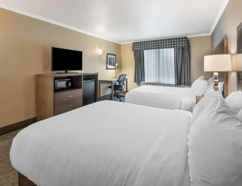 This hotel is a six-minute drive from downtown Fairbanks, Alaska and Fairbanks International Airport. It features rooms with a flat-screen TV. Each room at the Best Western Plus Chena River Lodge is equipped with free WiFi. All rooms include a refrigerator and a coffee maker. Guests of the Chena River Lodge Best Western Plus have free access to the gym. Free parking is also offered. A continental breakfast is available at the Best Western Plus. The University of Alaska is 2 mi from the hotel. The Museum of the North is an eight-minute drive away. Featuring free toiletries, this family room includes a private bathroom with a walk-in shower, a bath and a hairdryer. The family room features air conditioning, a tea and coffee maker, a wardrobe, a carpeted floor, as well as a flat-screen TV with cable channels. The unit has 2 beds.