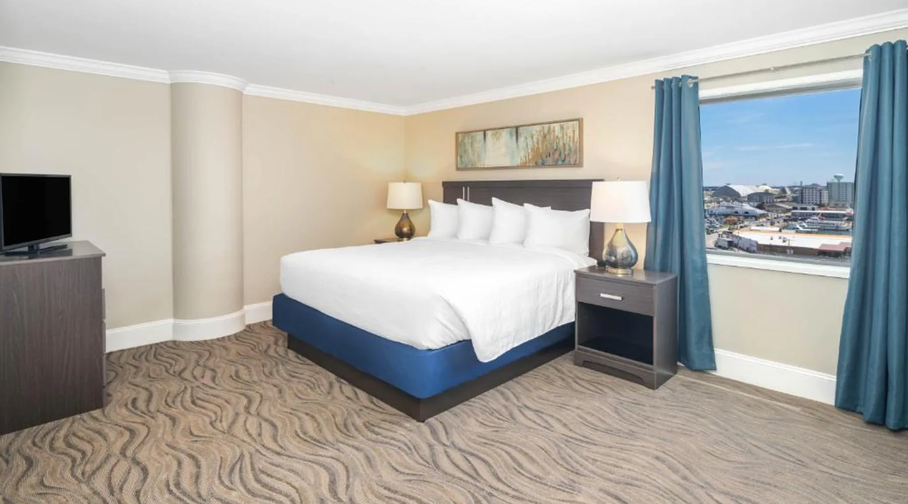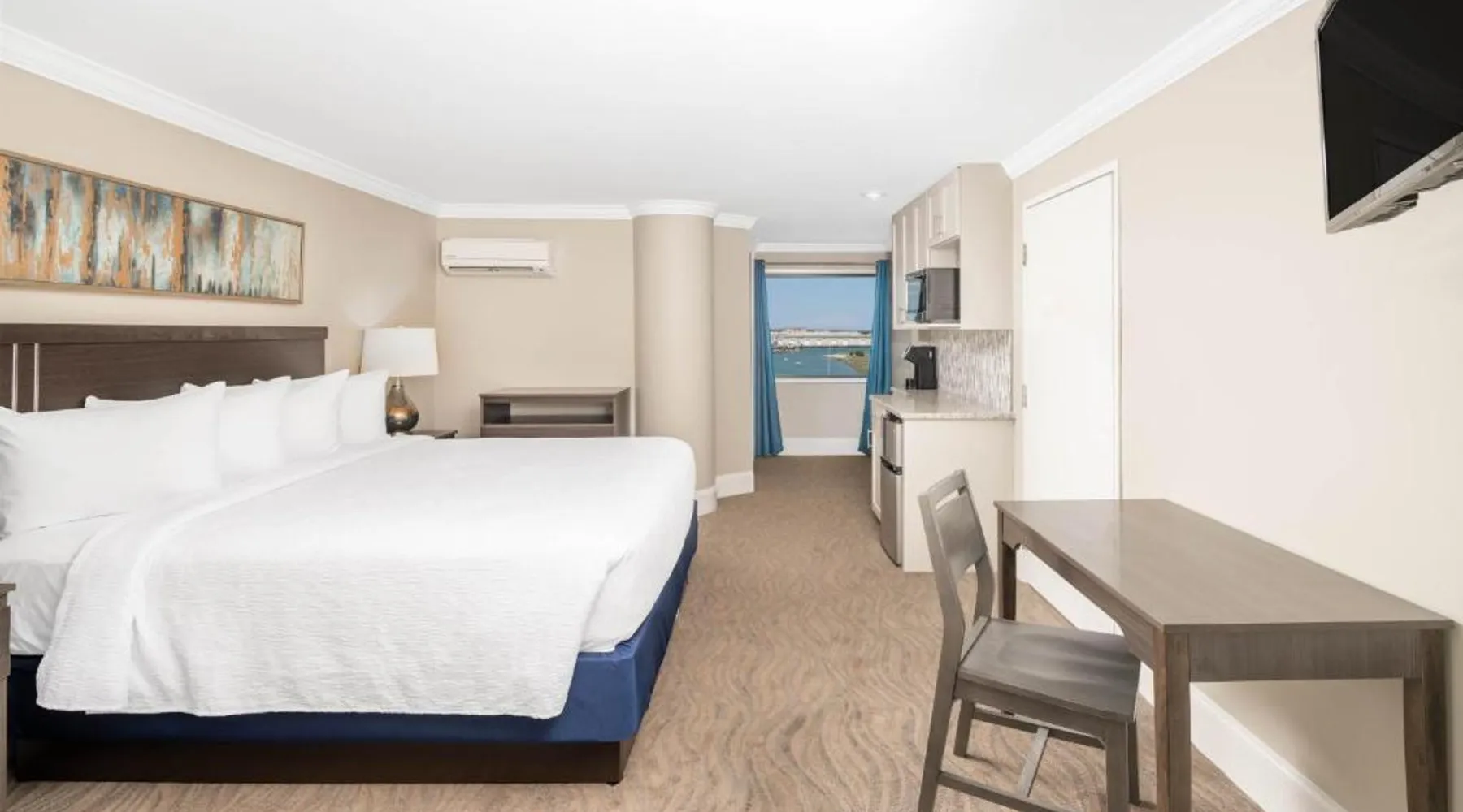 Comfortable Accommodations: Bask Hotel at Big Rock Landing in Morehead City offers comfortable rooms with air-conditioning, kitchenettes, and private bathrooms. Each room includes a balcony with city views, a sofa bed, and a seating area. Exceptional Facilities: Guests enjoy a sun terrace, free WiFi, and a lounge. The hotel features a fitness room, elevator, 24-hour front desk, minimarket, business area, outdoor seating, bicycle parking, and breakfast in the room. Convenient Location: Located 34 mi from Coastal Carolina Regional Airport, the hotel is near boating activities. Highly rated for its convenient location and scenic views, the property staff provide excellent service support. The air-conditioned suite has 1 bedroom and 1 bathroom with a bath or a shower and a hairdryer. The suite's kitchen, which features a refrigerator and a microwave, is available for cooking and storing food. Boasting a balcony with city views, this suite also features a tea and coffee maker and a flat-screen TV with cable channels. The unit has 1 bed.
