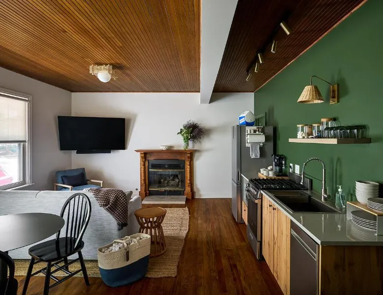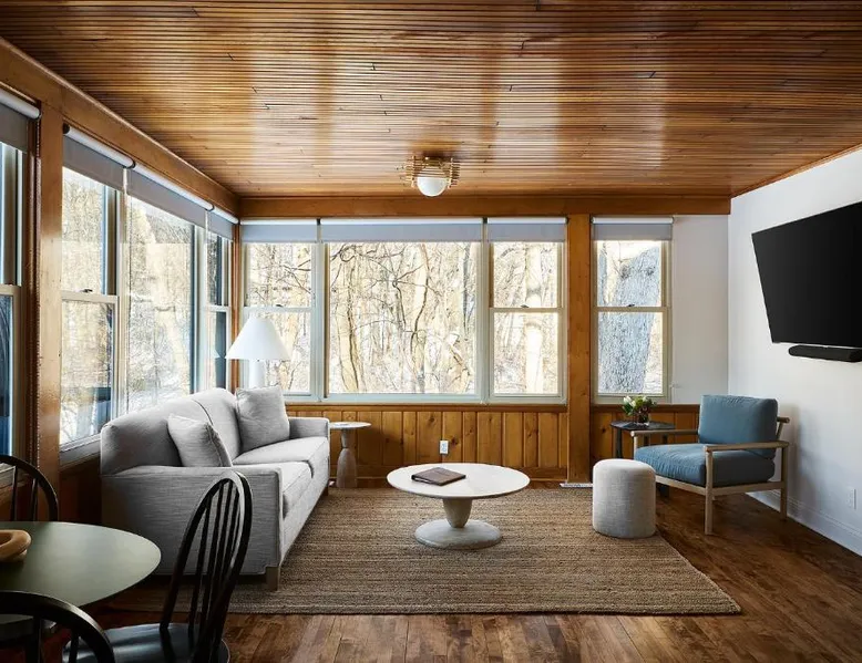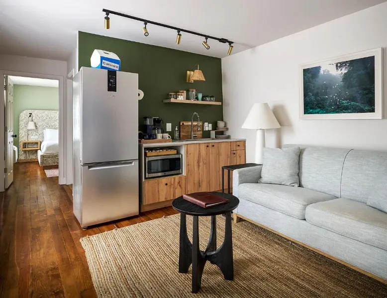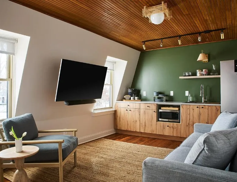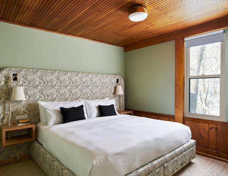 Elegant Accommodations: The Neighborhood Hotel Grand Beach in New Buffalo offers 5-star comfort with family rooms, balconies, and private bathrooms. Each room features air-conditioning, a washing machine, and a TV. Exceptional Facilities: Guests can relax on the terrace or take a dip in the seasonal outdoor swimming pool. Free WiFi is available throughout the property. Additional amenities include an outdoor fireplace, lounge, and games room. Convenient Location: Located 39 mi from South Bend Regional Airport, the hotel is near attractions such as Fairway Hall At Whittaker Woods (2.4 mi, enjoy activities like golf, visit local farms, or explore the surrounding area. Highly rated by guests for its excellent service and facilities. The spacious double room provides air conditioning, a washing machine, heating and a flat-screen TV.