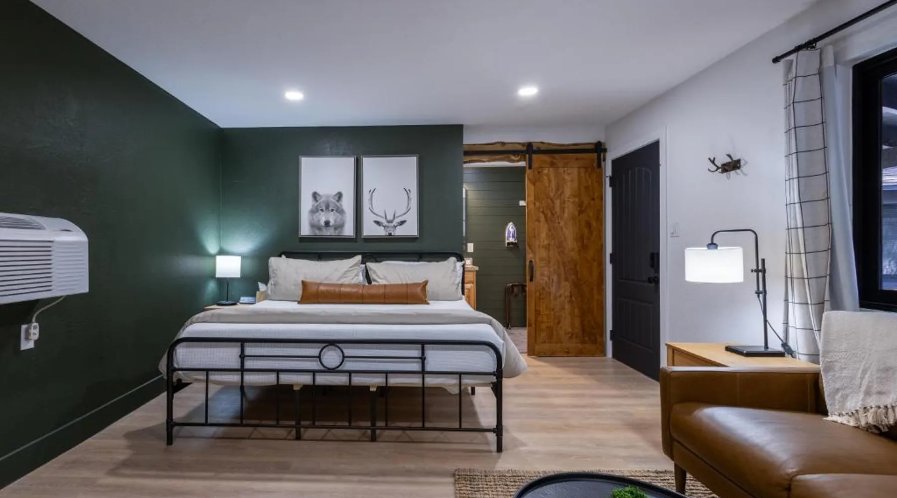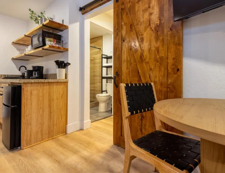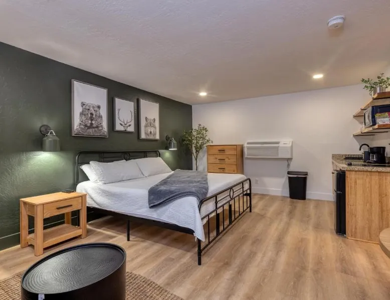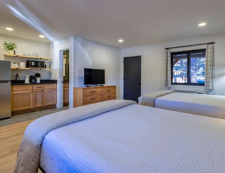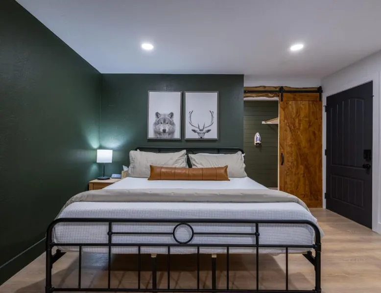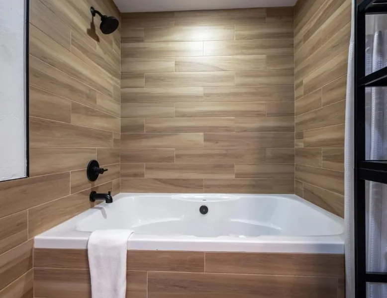 Comfortable Accommodations: TimberLodge Inn in Pinetop offers comfortable rooms with air-conditioning, private bathrooms, and free WiFi. Guests appreciate the room comfort and cleanliness. Outdoor Spaces: The inn features a garden and terrace, perfect for relaxation. Additional amenities include a casino, outdoor seating area, picnic area, and barbecue facilities. Convenient Services: Private and express check-in and check-out services ensure a smooth arrival and departure. Free on-site parking is available, along with full-day security. Activities and Location: Located 12 mi from Show Low Regional Airport, the inn offers skiing, hiking, and cycling. Guests can enjoy activities in the surrounding area. This room features a fireplace and a spa bath.