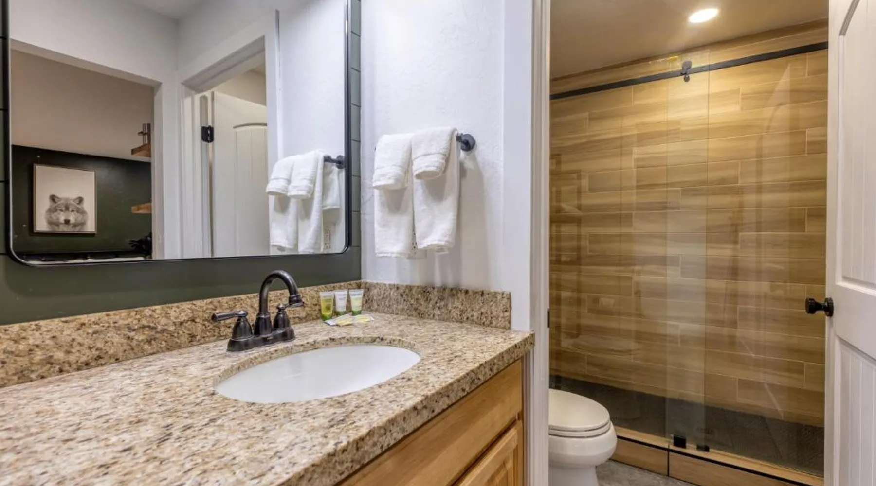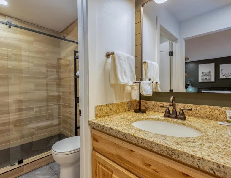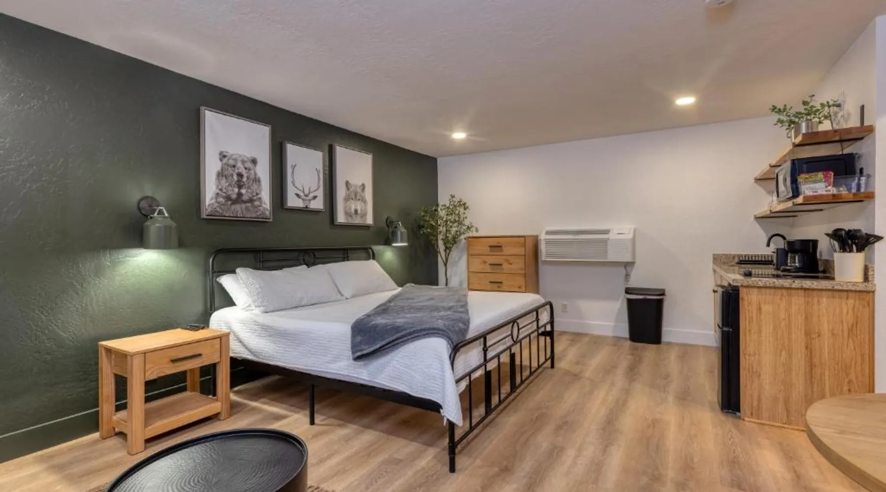 Comfortable Accommodations: TimberLodge Inn in Pinetop offers comfortable rooms with air-conditioning, private bathrooms, and free WiFi. Guests appreciate the room comfort and cleanliness. Outdoor Spaces: The inn features a garden and terrace, perfect for relaxation. Additional amenities include a casino, outdoor seating area, picnic area, and barbecue facilities. Convenient Services: Private and express check-in and check-out services ensure a smooth arrival and departure. Free on-site parking is available, along with full-day security. Activities and Location: Located 12 mi from Show Low Regional Airport, the inn offers skiing, hiking, and cycling. Guests can enjoy activities in the surrounding area. This room features a fireplace and a spa bath.