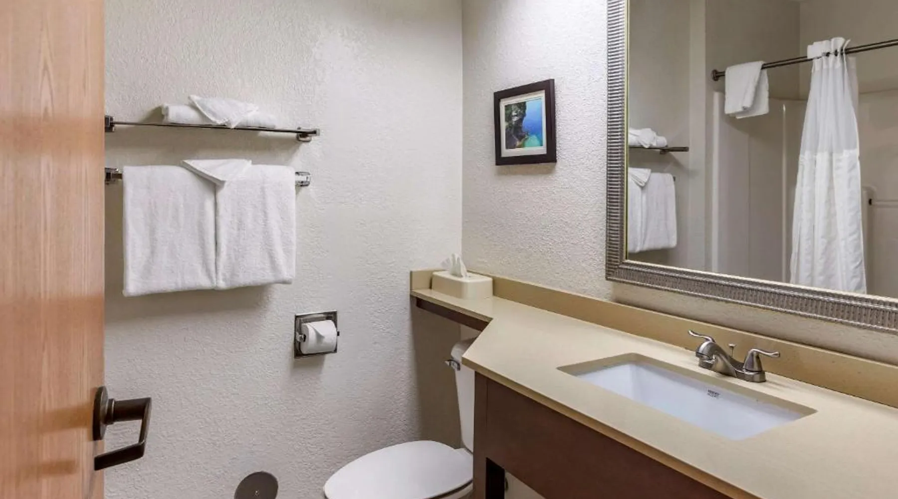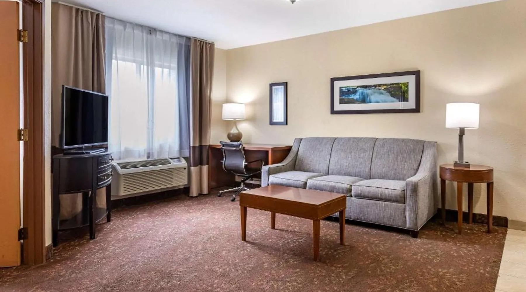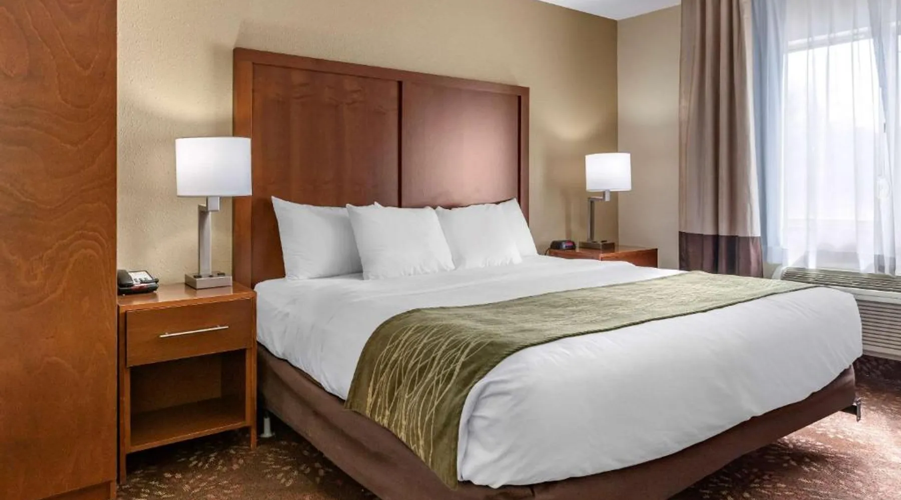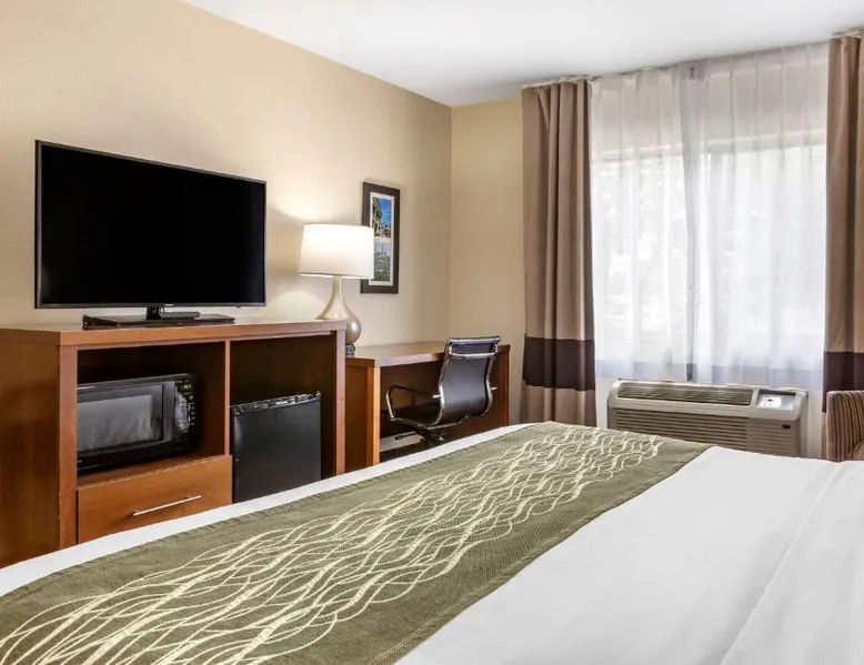 Comfortable Accommodations: Comfort Inn Okemos - East Lansing in Okemos offers family rooms with private bathrooms, air-conditioning, and free WiFi. Each room includes a work desk, TV, and complimentary toiletries. Convenient Facilities: Guests can enjoy a tennis court, free on-site private parking, and a 24-hour front desk. Additional amenities include a business area, bicycle parking, and express check-in and check-out services. Delicious Breakfast: A continental buffet breakfast is served daily, featuring warm dishes, fresh pastries, and fruits. The property also provides a tea and coffee maker, hairdryer, and microwave for added convenience. Prime Location: Located 15 mi from Capital Region International Airport, the inn is near Michigan State University (8.7 mi), Spartan Stadium (6.2 mi), and Wharton Center (9.3 mi). Guests appreciate the convenient location, room cleanliness, and attentive staff. The double room provides air conditioning, a tea and coffee maker, as well as a private bathroom featuring a walk-in shower and a hairdryer. The double room features a flat-screen TV with satellite channels, a wardrobe, a carpeted floor and heating. The unit offers 1 bed.
