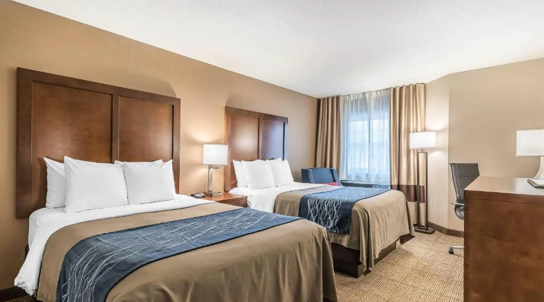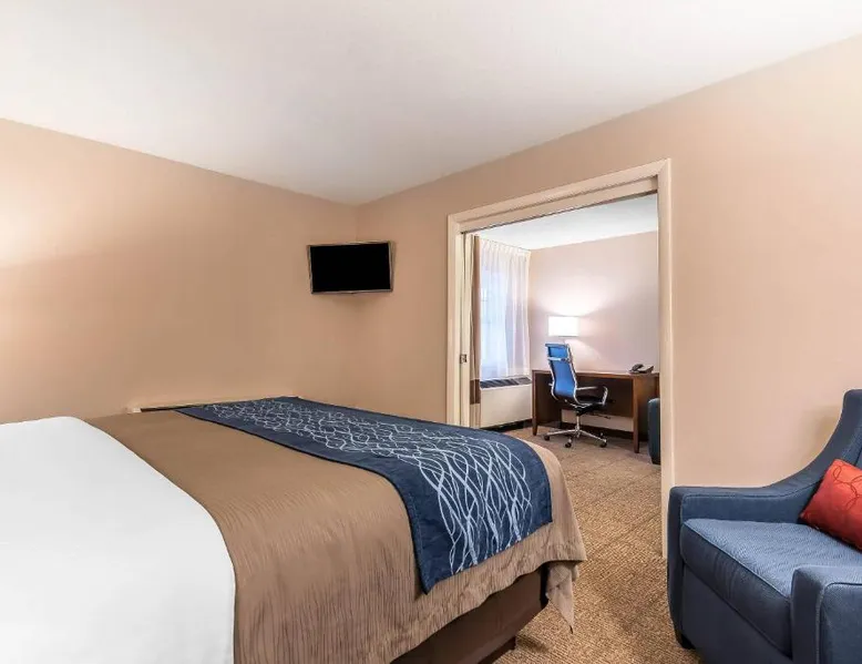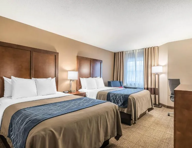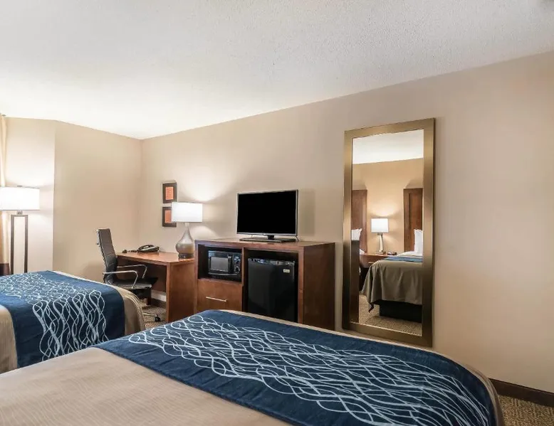 Located off Interstate 93 with easy access to Interstate 89, the Comfort Inn Concord South End hotel in Concord is the perfect location for accommodations during your travels through New England's beautiful White Mountains. The hotel is minutes from the New Hampshire State House capitol building, McAuliffe-Shepard Discovery Center and the Franklin Pierce Law Center. The hotel is just a short drive from, Pats Peak ski area, Lake Winnepesaukee and Mount Sunapee, Weirs Beach, Canobie Lake Park, Manchester-Boston Regional Airport and the Capitol Center for the Arts. Snow mobile trails are located nearby. Perfect for leisure and business travelers alike, our hotel is about one hour from Boston. A variety of downtown Concord shops, restaurants and cocktail lounges are nearby. Special features and amenities include, free wireless high-speed Internet access, 24-hour business center, as well as an indoor heated pool with hot tub and sauna. Your Morning Breakfast is full of hot and delicious options, making breakfast at the Comfort Inn Concord South End the perfect way to start your day. Enjoy our free hot breakfast featuring eggs, meat, yogurt, fresh fruit, cereal and more, including your choice of hot waffle flavors. This hotel provides business travelers with conveniences like voice mail and access to copy and fax services. Meeting space is available to accommodate up to 60 people. All standard guest rooms have microwaves, refrigerators, coffee makers, hair dryers, irons, ironing boards, cable television with HBO. Magnificent two-room hot tub suites with separate living areas, wet bars, oversize hot tubs and walk-in showers are available. In addition, nonsmoking rooms can be requested. Pets are welcome at the hotel with a small nightly fee. This air-conditioned double room includes a flat-screen TV with cable channels and a private bathroom. The unit offers 2 beds.