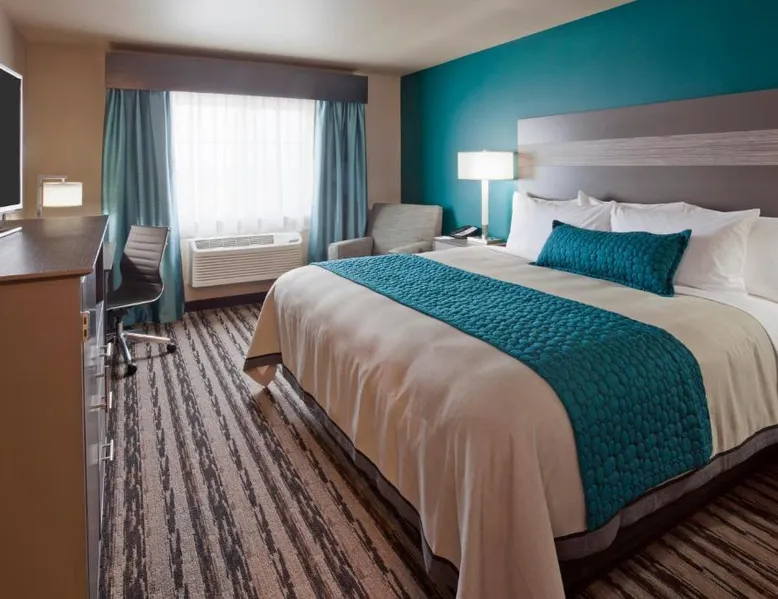 Comfortable Accommodations: GrandStay Hotel & Suites Valley City in Valley City offers family rooms with private bathrooms, kitchenettes, and modern amenities. Each room includes a wardrobe, TV, and work desk. Exceptional Facilities: Guests can enjoy a fitness center, sun terrace, indoor swimming pool, and free WiFi. Additional facilities include a lounge, outdoor fireplace, hot tub, and outdoor seating area. Delicious Breakfast: A continental buffet breakfast is served daily, featuring warm dishes, fresh pastries, cheese, fruits, and juice. Convenient Location: Located 34 mi from Jamestown Regional Airport, the hotel provides free on-site private parking and express check-in and check-out services. Guests appreciate the attentive staff and excellent service support. The double room's kitchen is available for cooking and storing food. The spacious double room features private bathroom equipped with a shower and a hairdryer. The unit offers 1 bed.