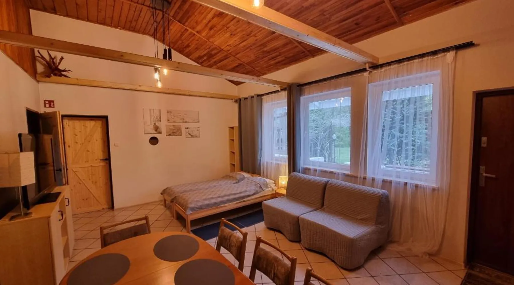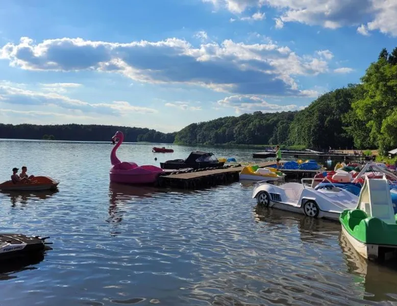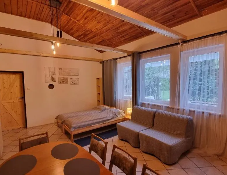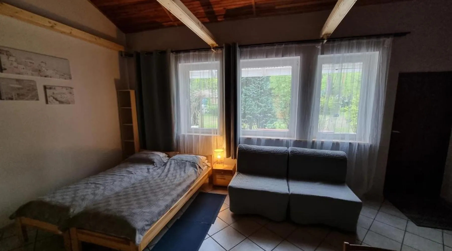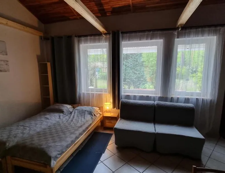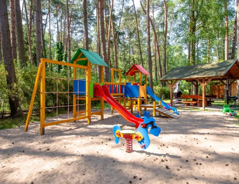 Comfortable Accommodations: Ośrodek Moje El Dorado in Sieraków offers holiday park accommodations with private bathrooms, fully equipped kitchens, and parquet floors. Each unit includes a sofa bed, TV, and work desk, ensuring a pleasant stay. Leisure Facilities: Guests can enjoy a garden, terrace, and outdoor seating area. The property features an outdoor play area, picnic spots, and barbecue facilities. Free WiFi is available throughout the park. Convenient Location: Located 43 mi from Poznań-Ławica Henryk Wieniawski Airport and 11 mi from Stadium Miedzychod, the park is near lakes and nearby shops. Activities include fishing, walking tours, bike tours, hiking, cycling, and snorkeling. Featuring a private entrance, this spacious apartment also consists of 3 separate bedrooms and 1 bathroom with a bath and a shower. The apartment's kitchen is available for cooking and storing food. This apartment features a wardrobe, an electric kettle, a flat-screen TV and a terrace. The unit offers 7 beds.